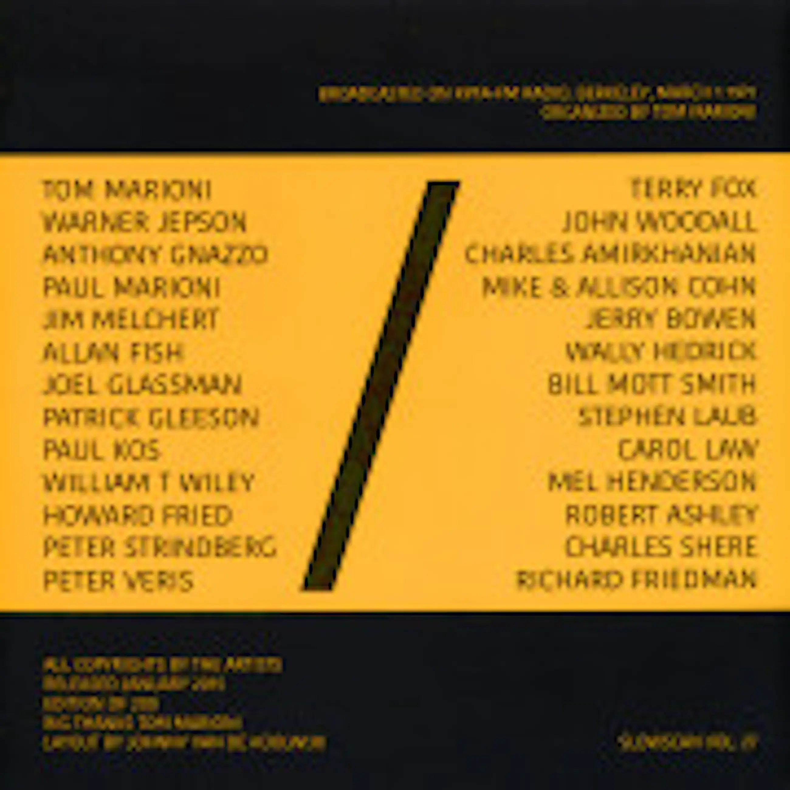 Vinyl Exhibition of one minute sound works from the museum of conceptuel art, San Franciso a.o Allan Fish, Mel Hendersen, Jerry Bowen, Paul Kos