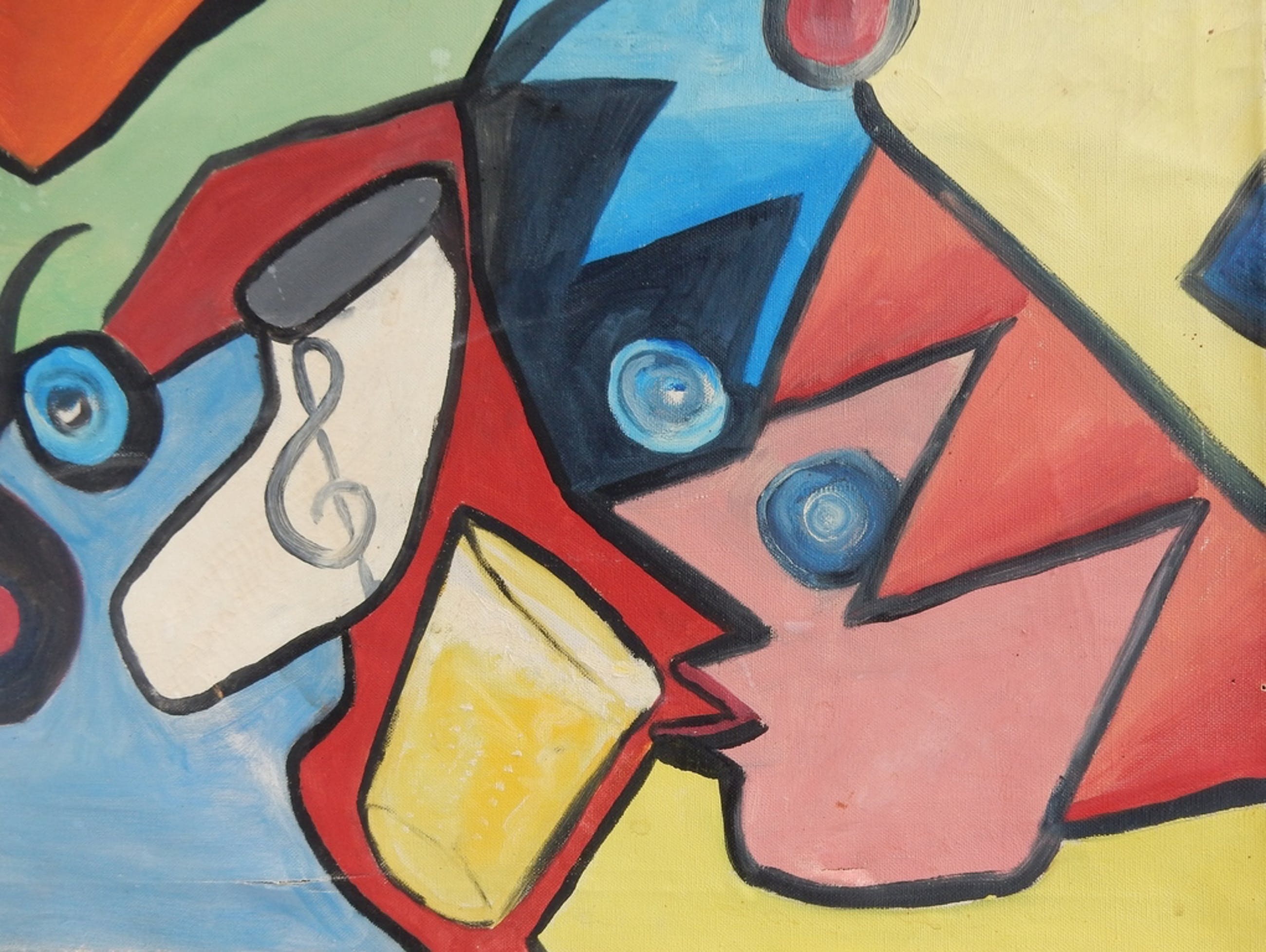 Het werk is in redelijke conditie, met sporen van ouderdom conform de foto's.