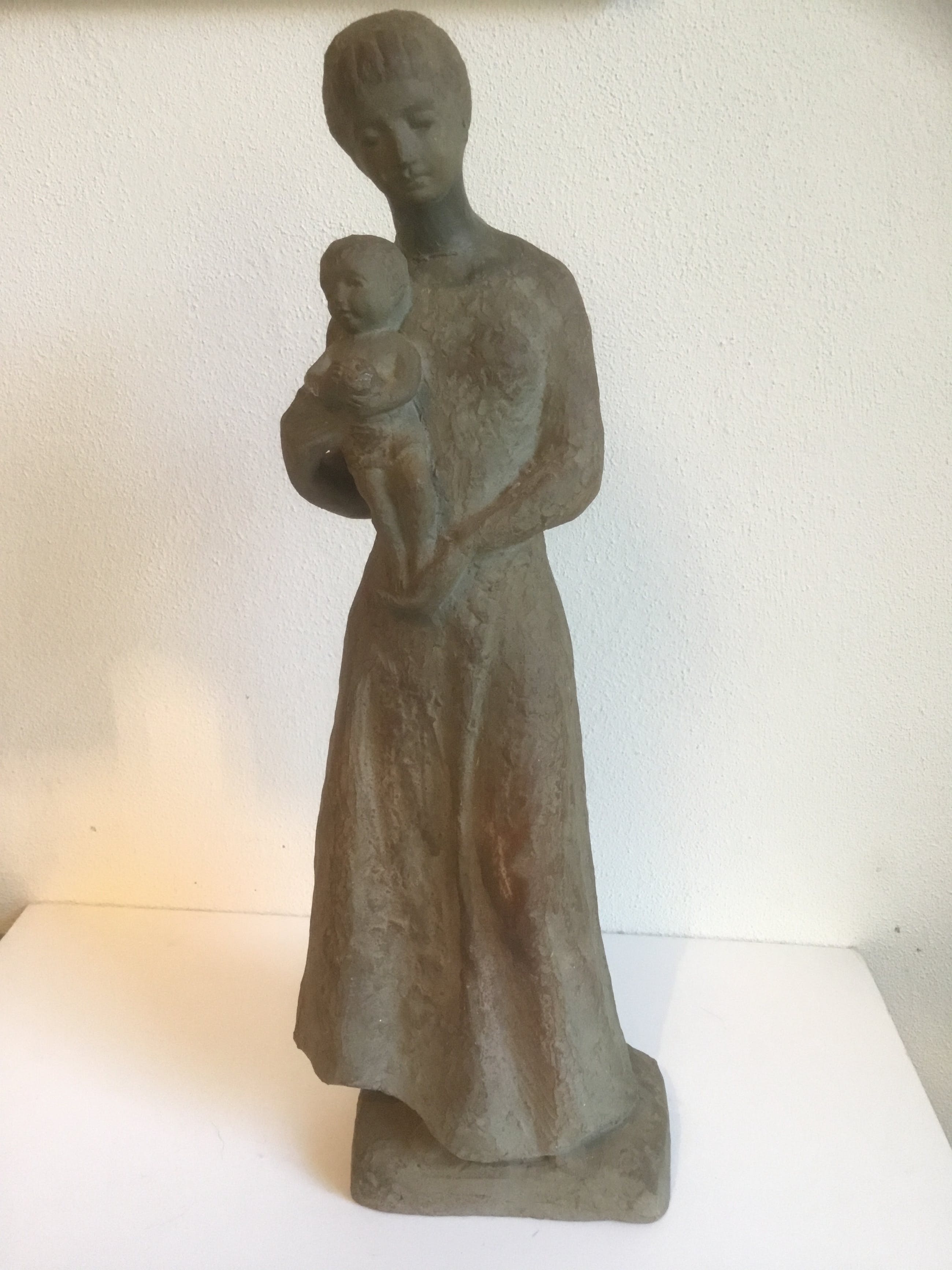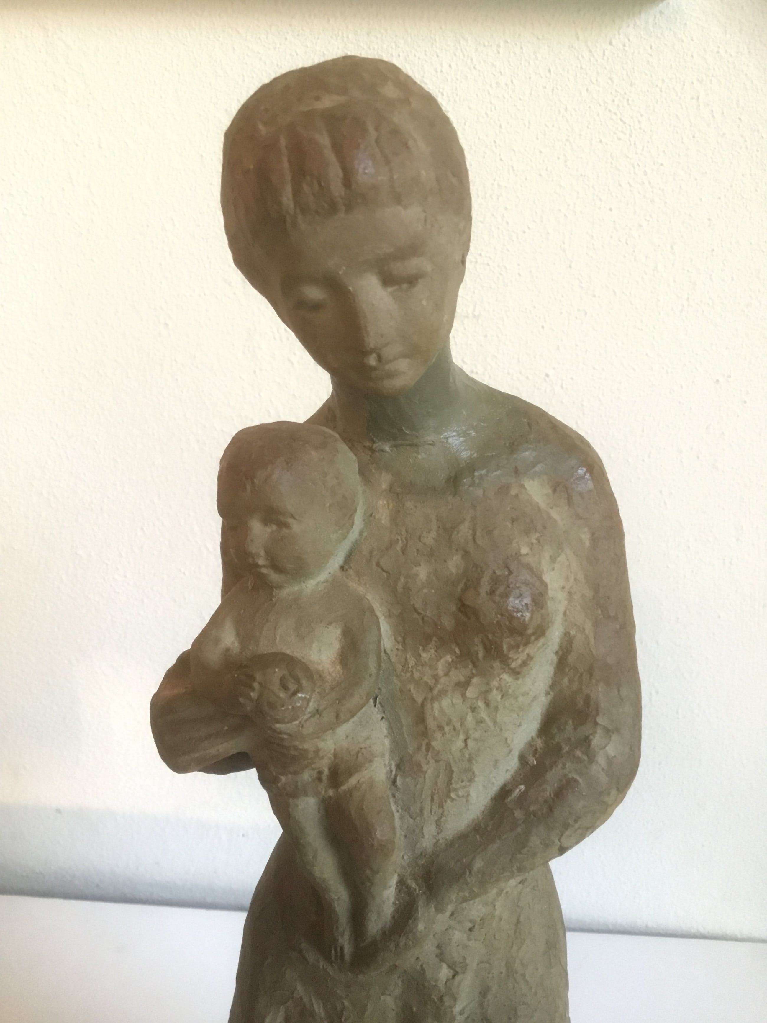 Mooi beeld van een moeder met kind. Het werk is niet gesigneerd maar is van een prachtige kwaliteit.