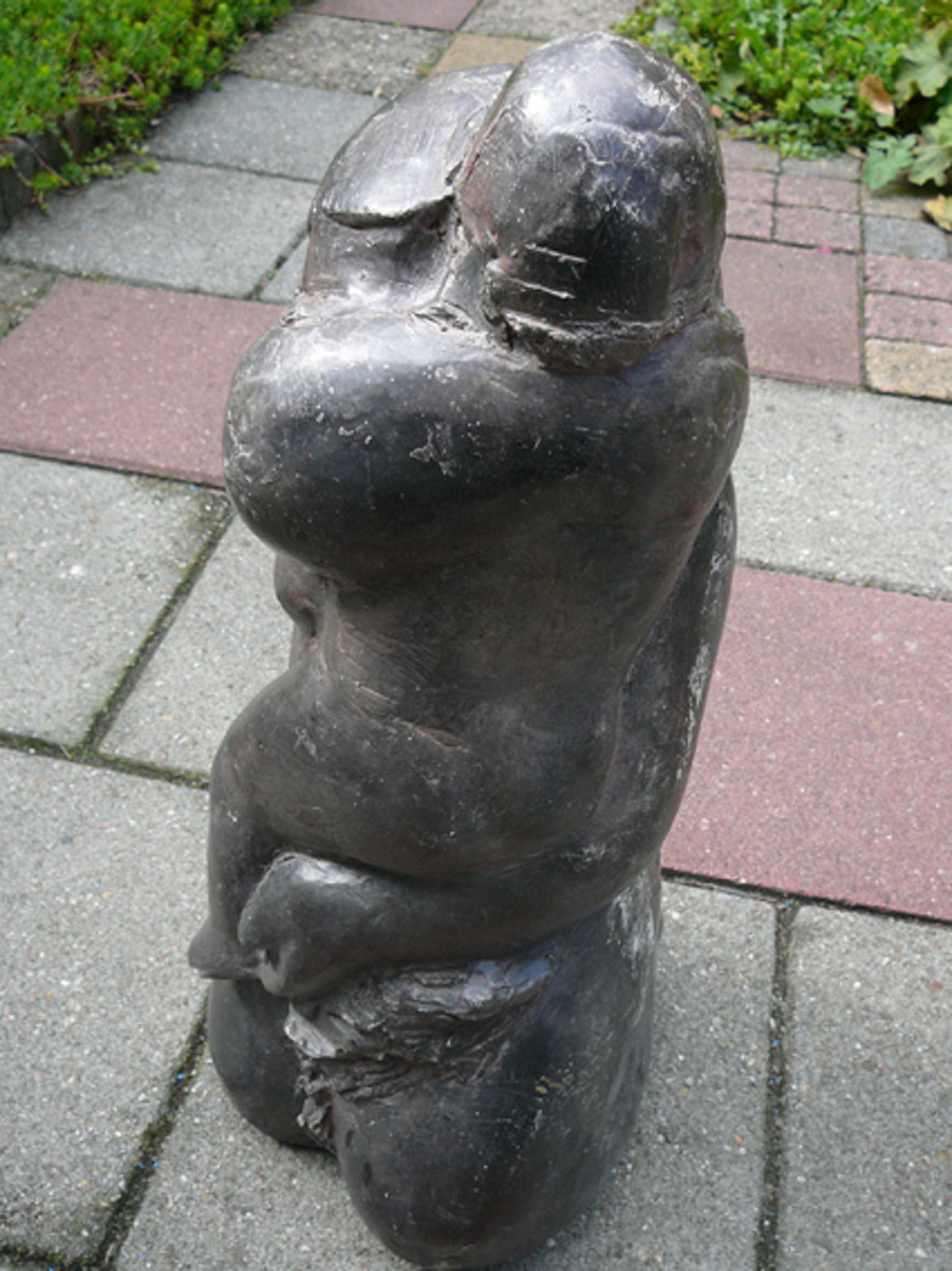 Monumentaal beeld met een voorstelling van moeder en kind. Gepolijst en grijzig-zwart gepatineerd. Het beeld is zeer zwaar en kan daarom alleen afgehaald worden in Utrecht of bezorgen in overleg. Herkomst: veilinghuis Peerdeman Utrecht.