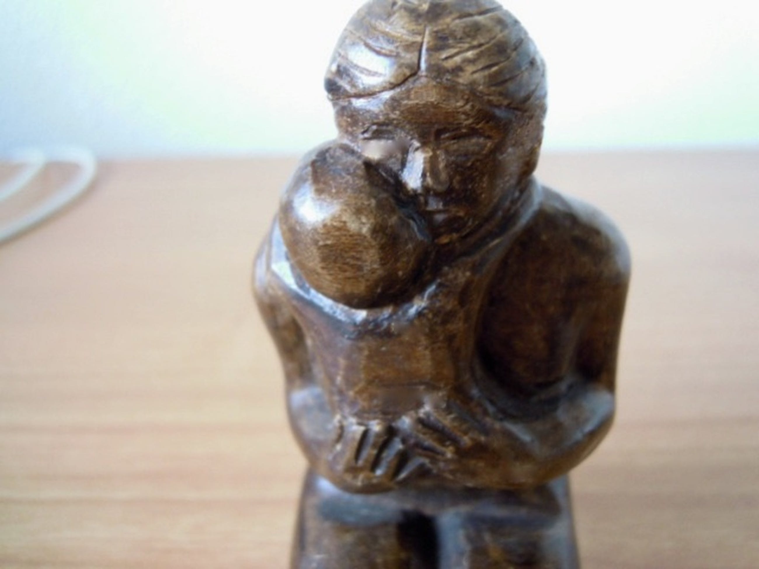 Moeder met kind hand gemaakt houten beeldje 10,5 cm hoog - kunstenaar onbekend.