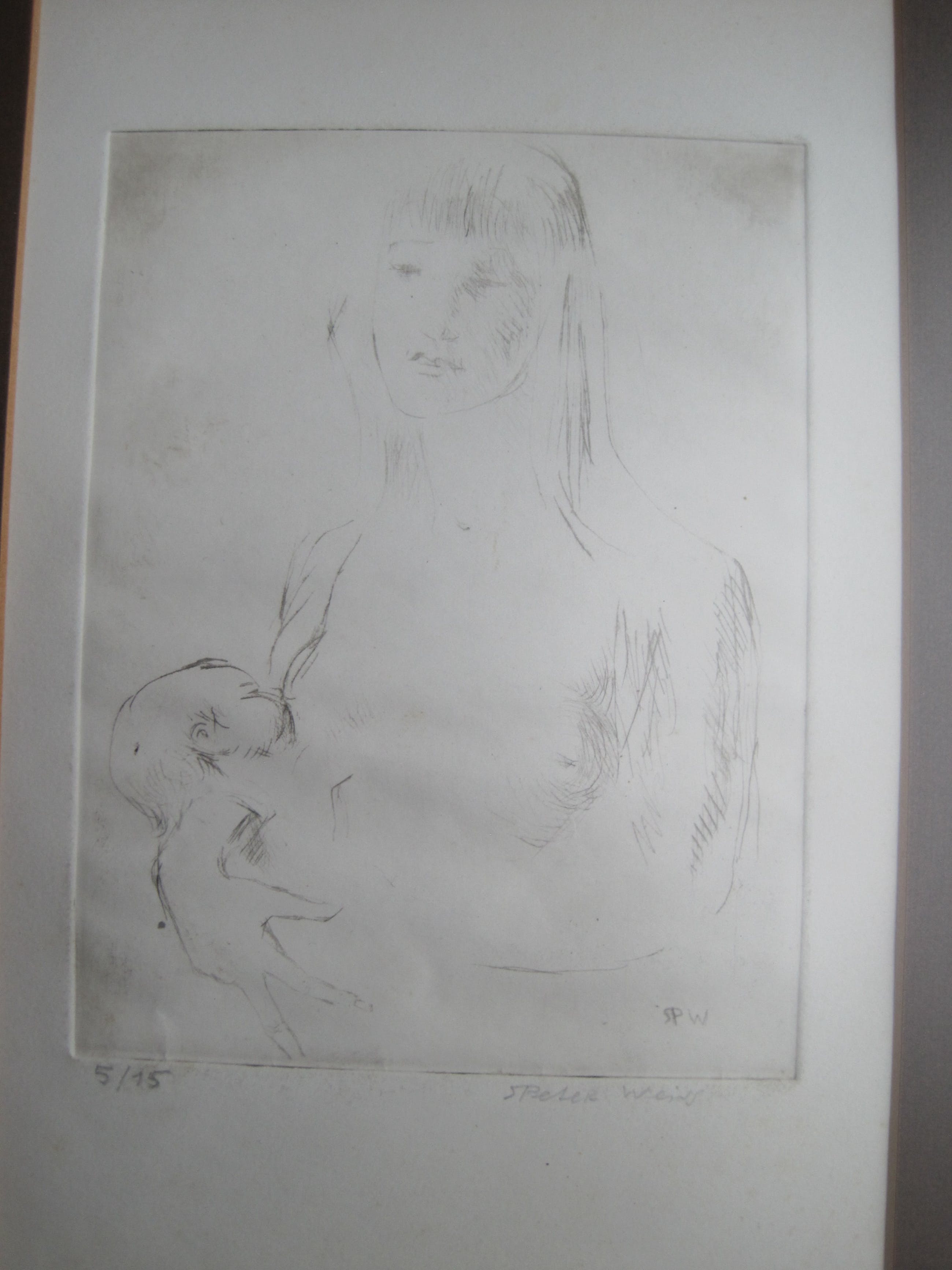 Mooie serene ets van een moeder met haar kind. Deze ets is gemaakt de SPeter Weiss. Gesigneerd in de plaat en met potlood in de marge.