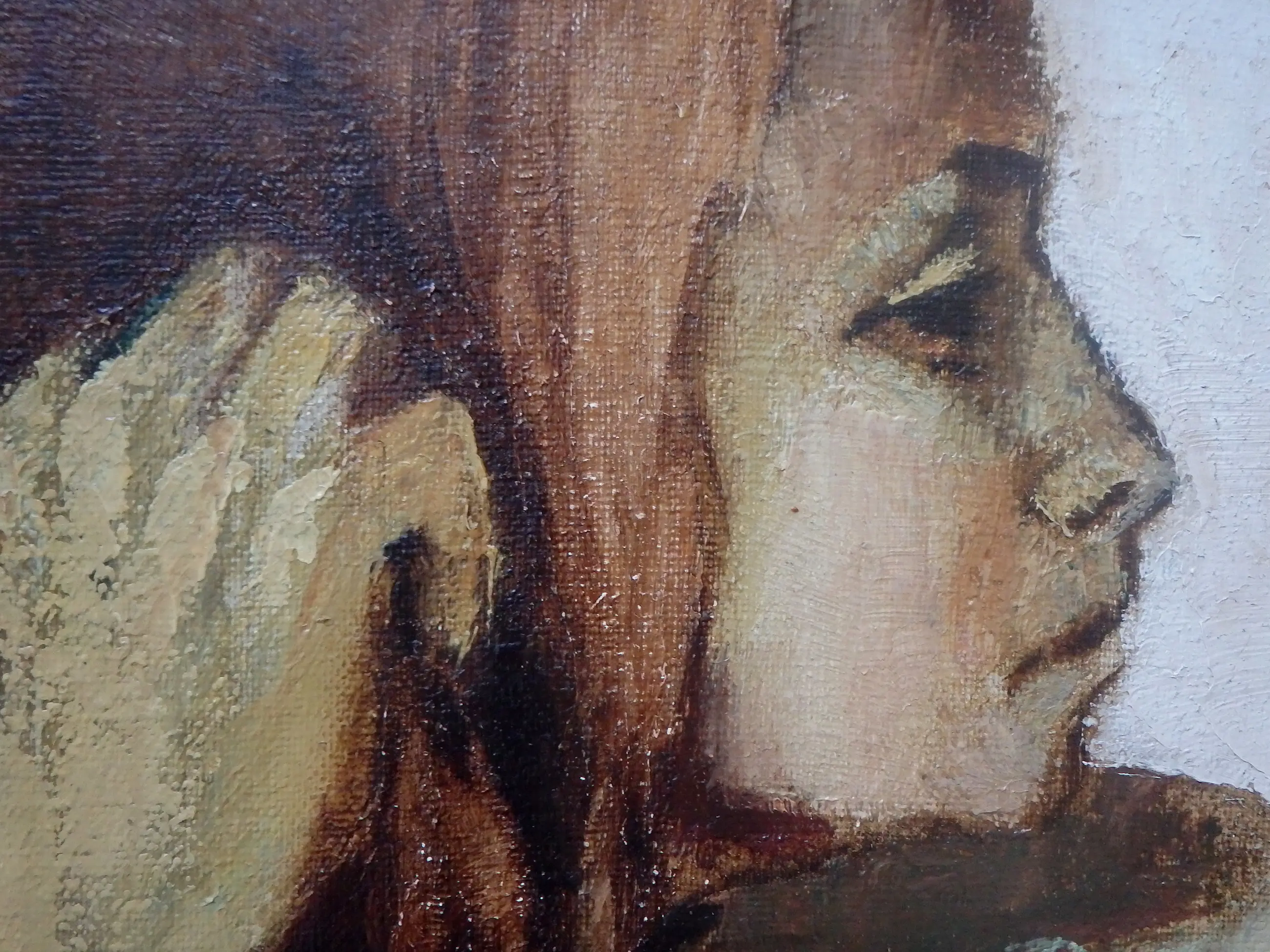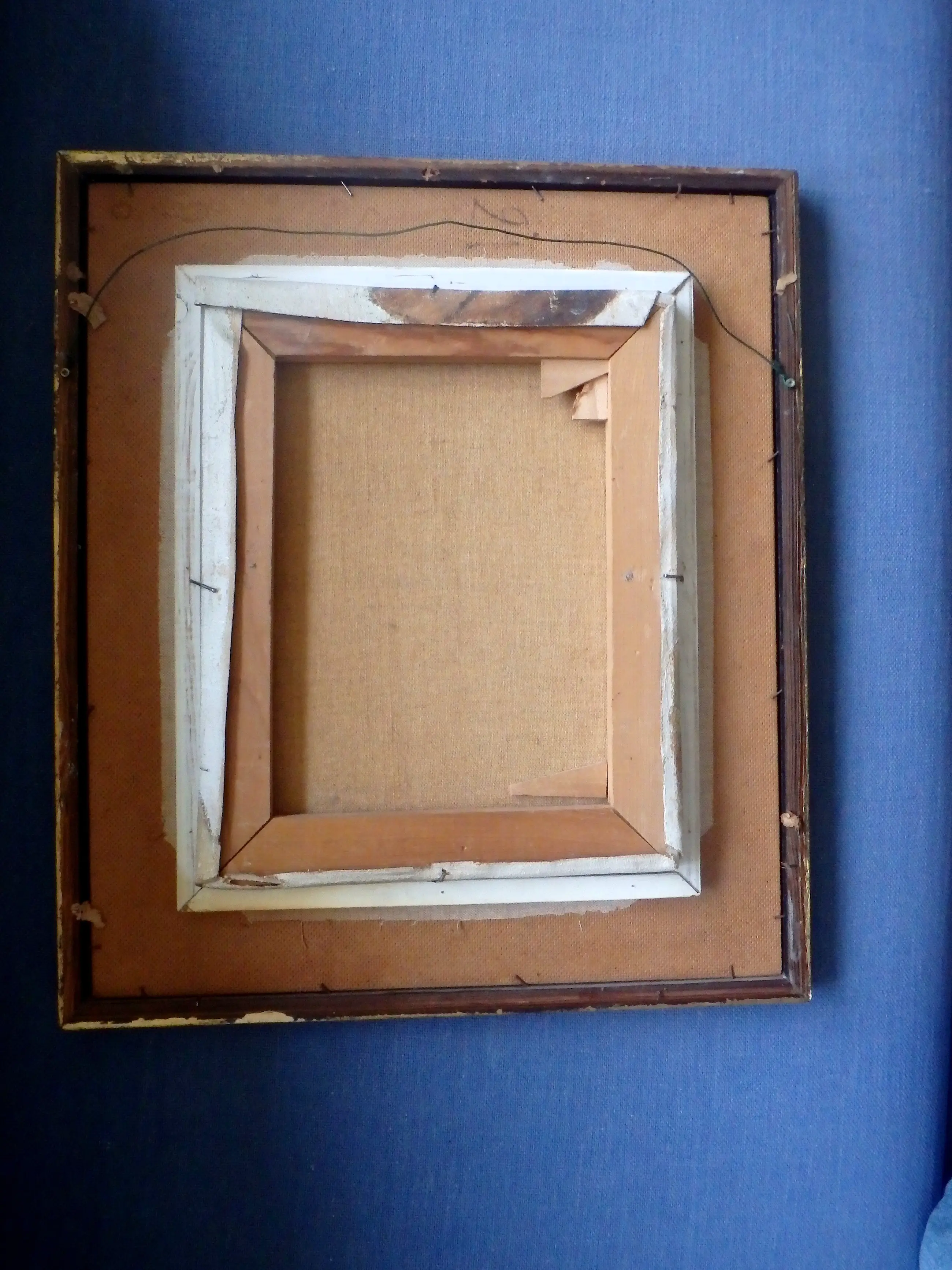 Olieverf op doek 30x25, linksonder gesigneerd Janssens ?, geschilderd ca.1960 in galerielijst, lijst enkele minimale minpuntjes.