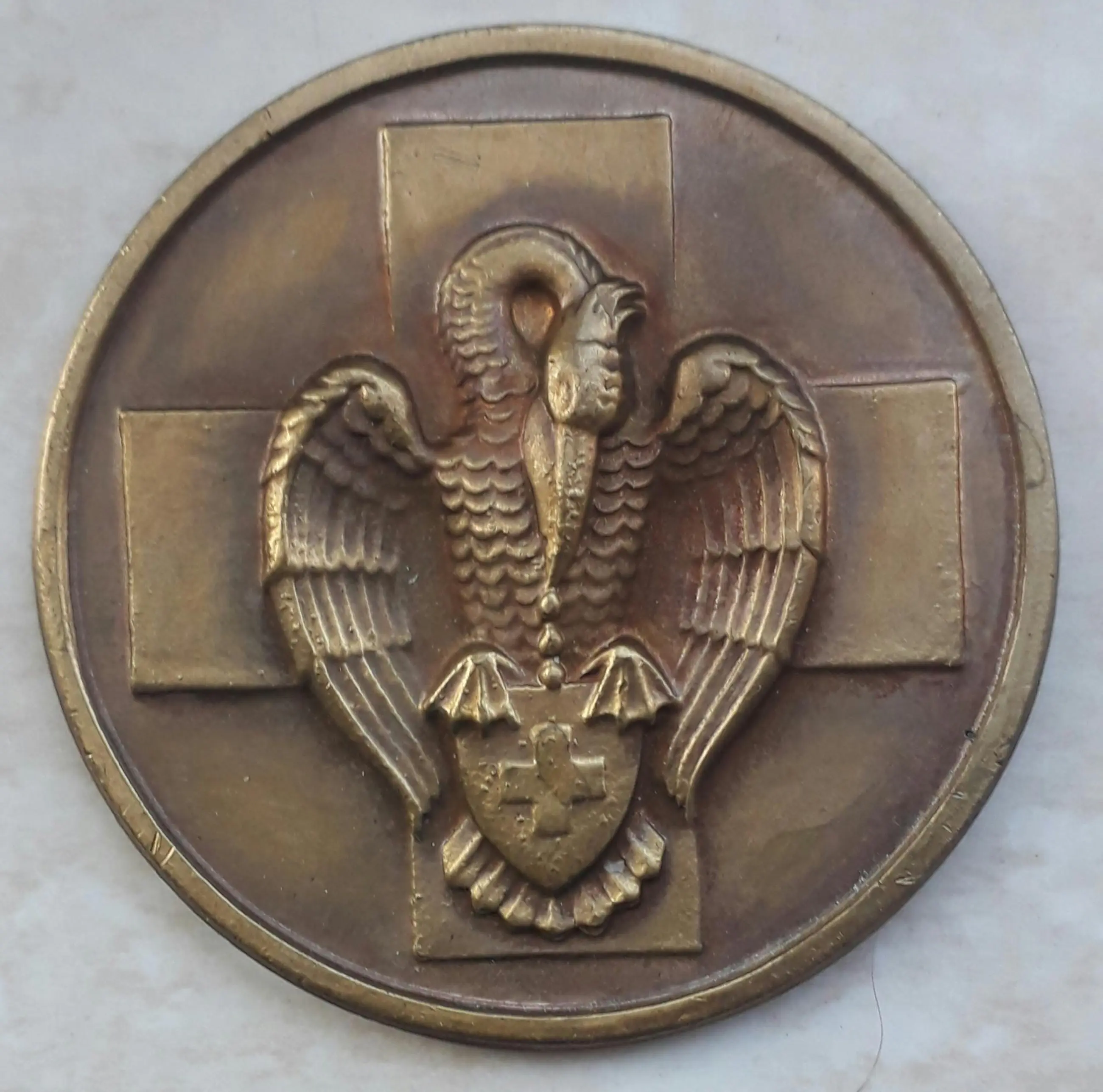 Een mooie PENNING met afbeeldingen in reliëf : CROIX ROUGE DE BELGIQUE ! Met het beroemde symbool van de PELIKAAN .