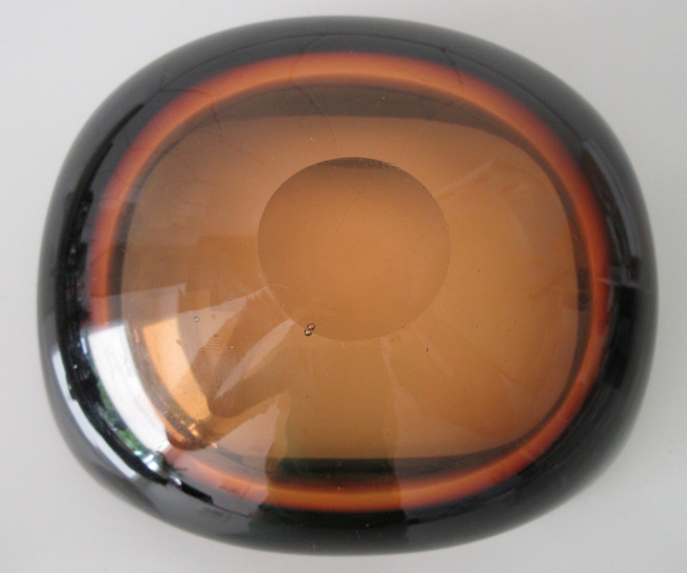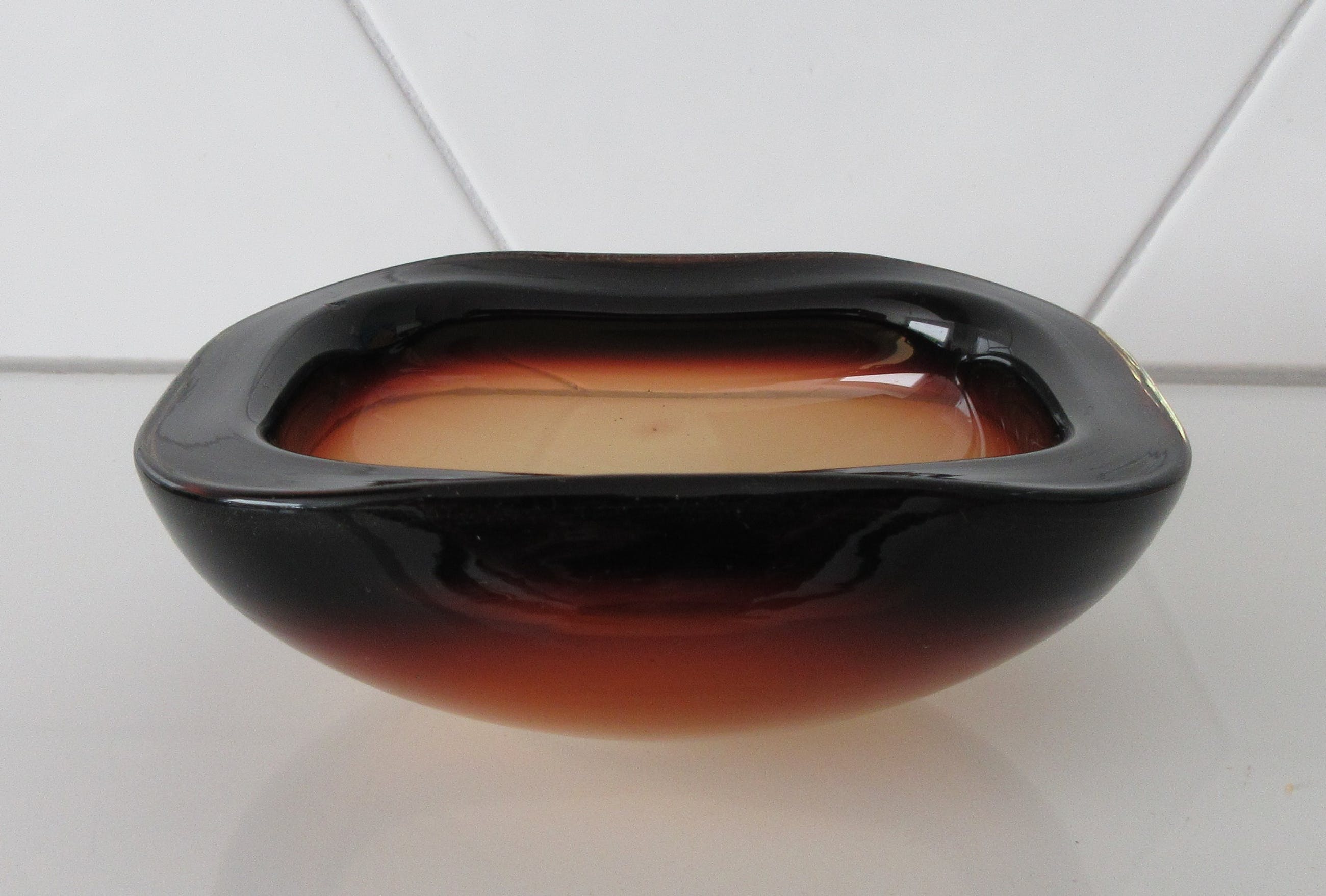 Mooi sixties Murano amber sommerso glazen vierkante schaal. In prima conditie met een zeer kleine beschadiging. Niet gesigneerd.