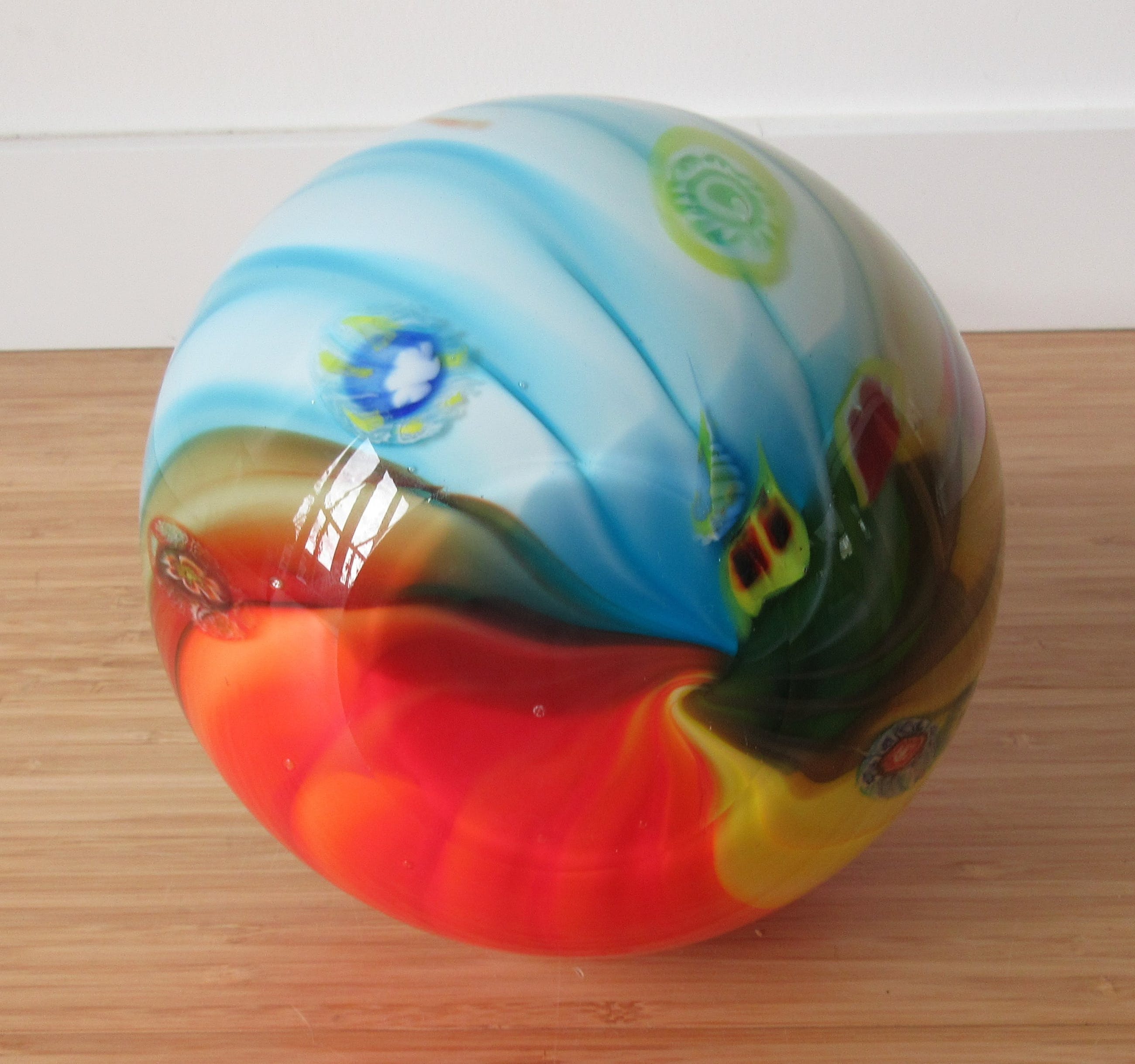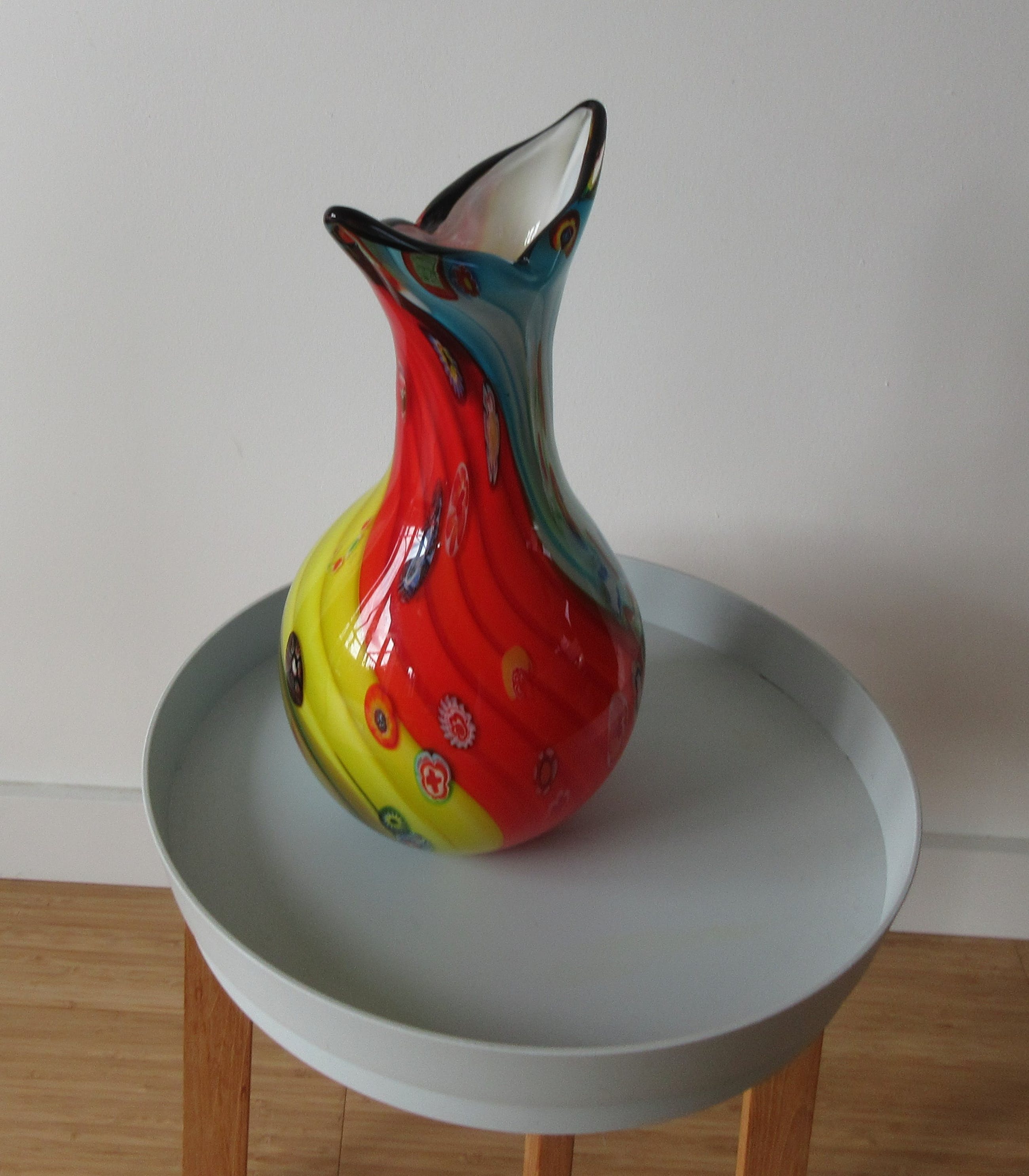 Murano (toegeschr.) Prachtige meerkleurige Murrine studio glazen vaas. Zeer waarschijnlijk gemaakt door een van de glasmeesters uit Murano in Italie, alleen niet gesigneerd of gemerkt dus alleen toe te schrijven. De onderzijde is vlak gepolijst. In perfecte conditie.