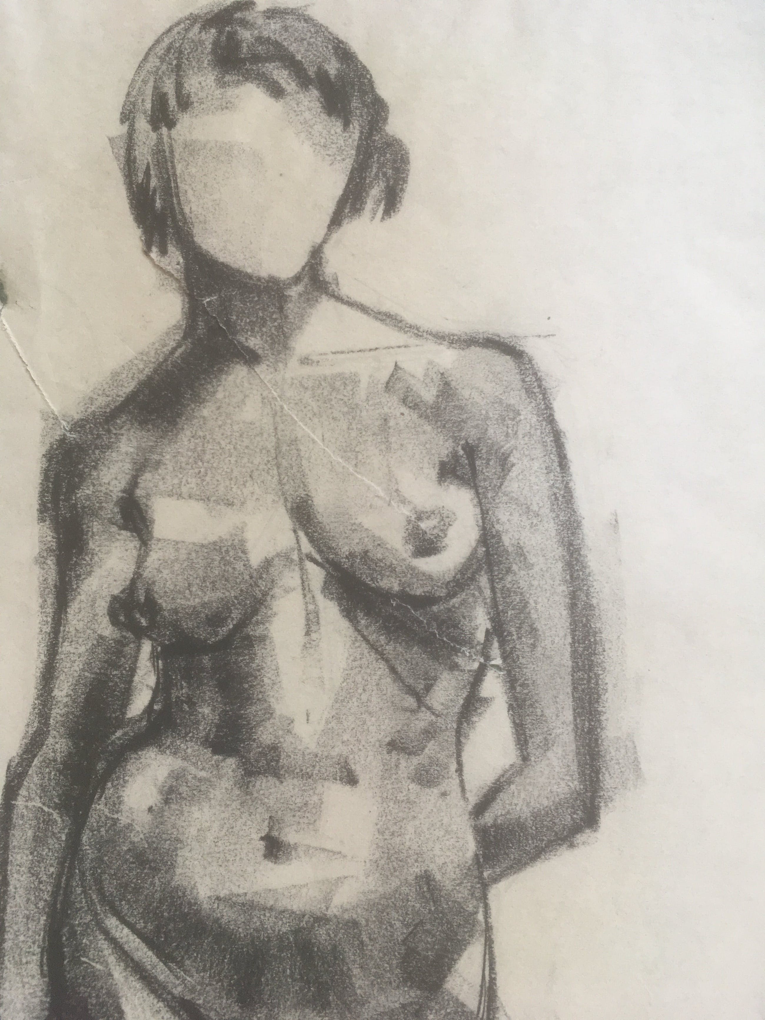 Onbekend - Naakt Houtskool op papier - Verkocht