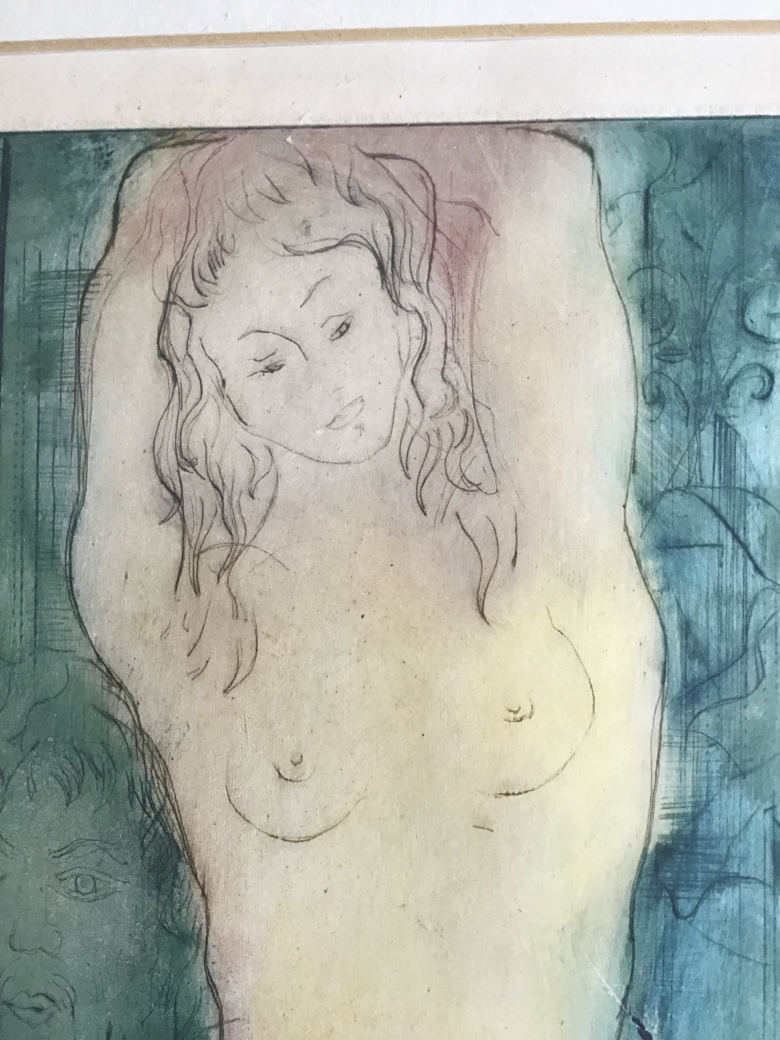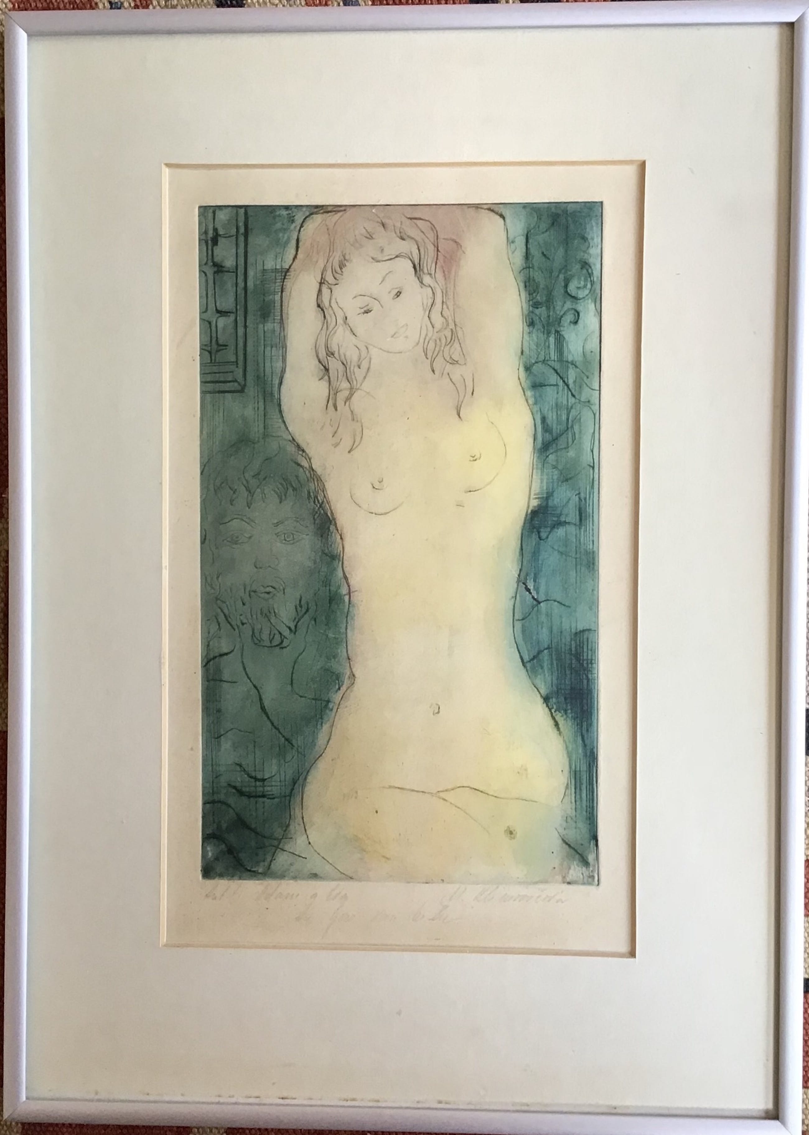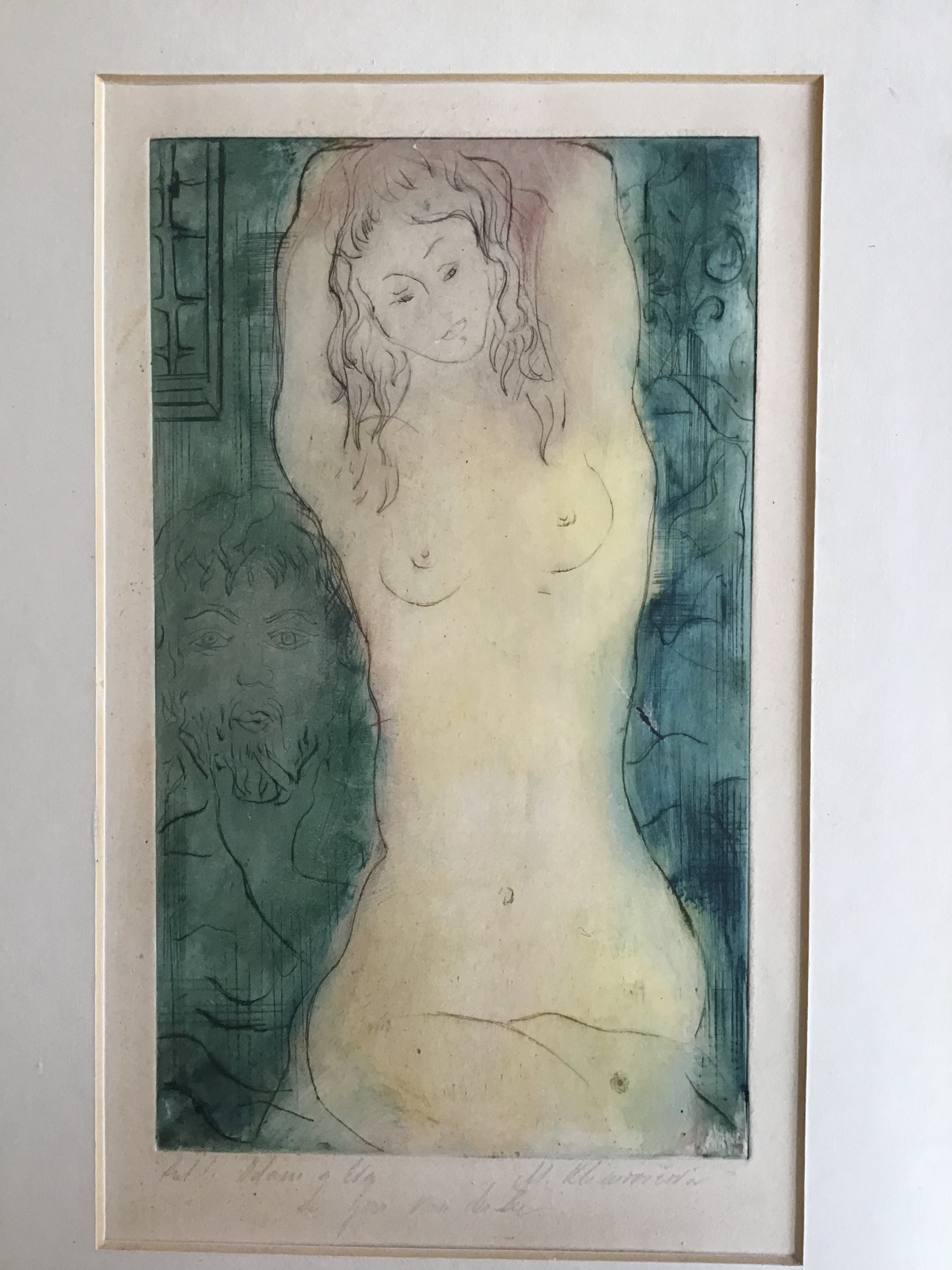 Mooi etsje van naakt meisjeTsjechisch kunstenaar waarvan naam onleesbaarGesigneerdAfmetingen 53x31.5cmMat alulijst met passe-partoutConditie goedWordt aangetekend verzonden