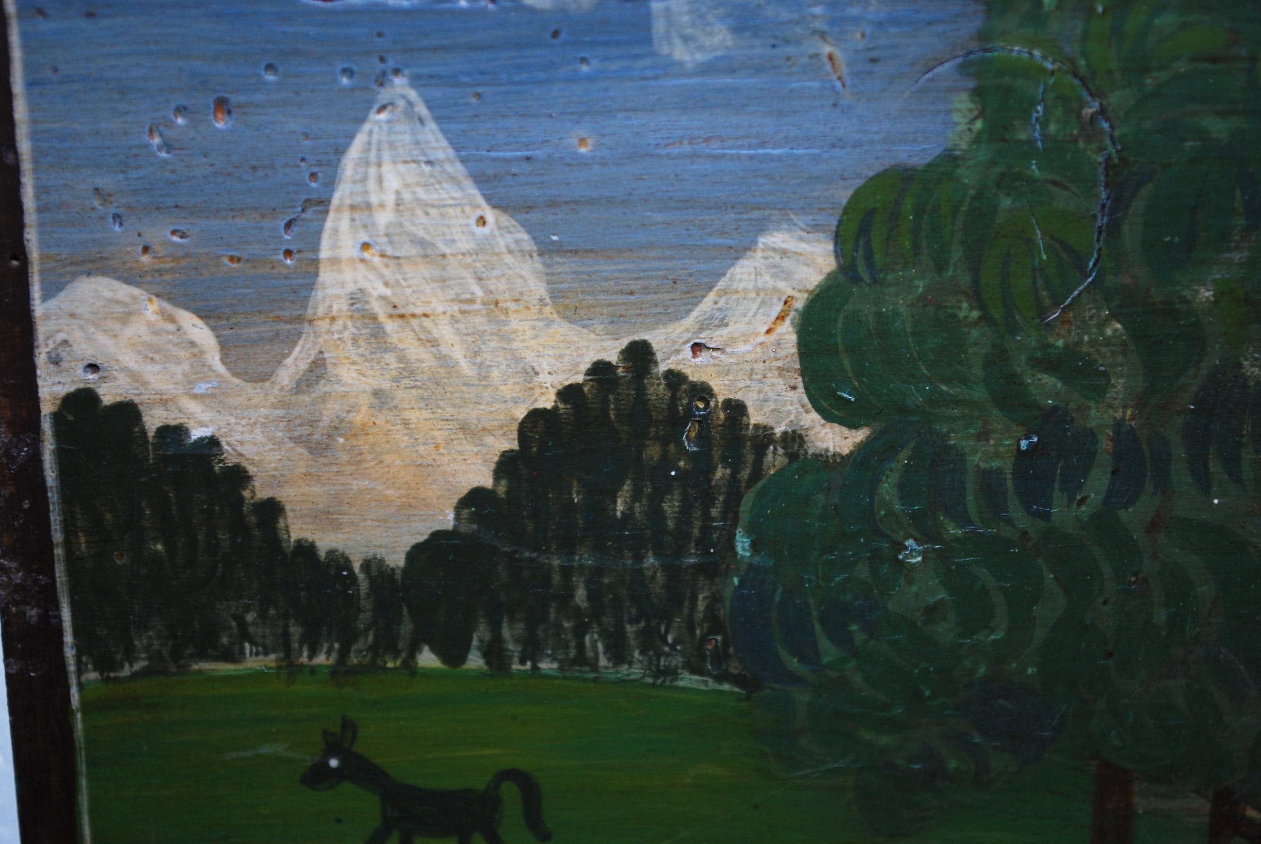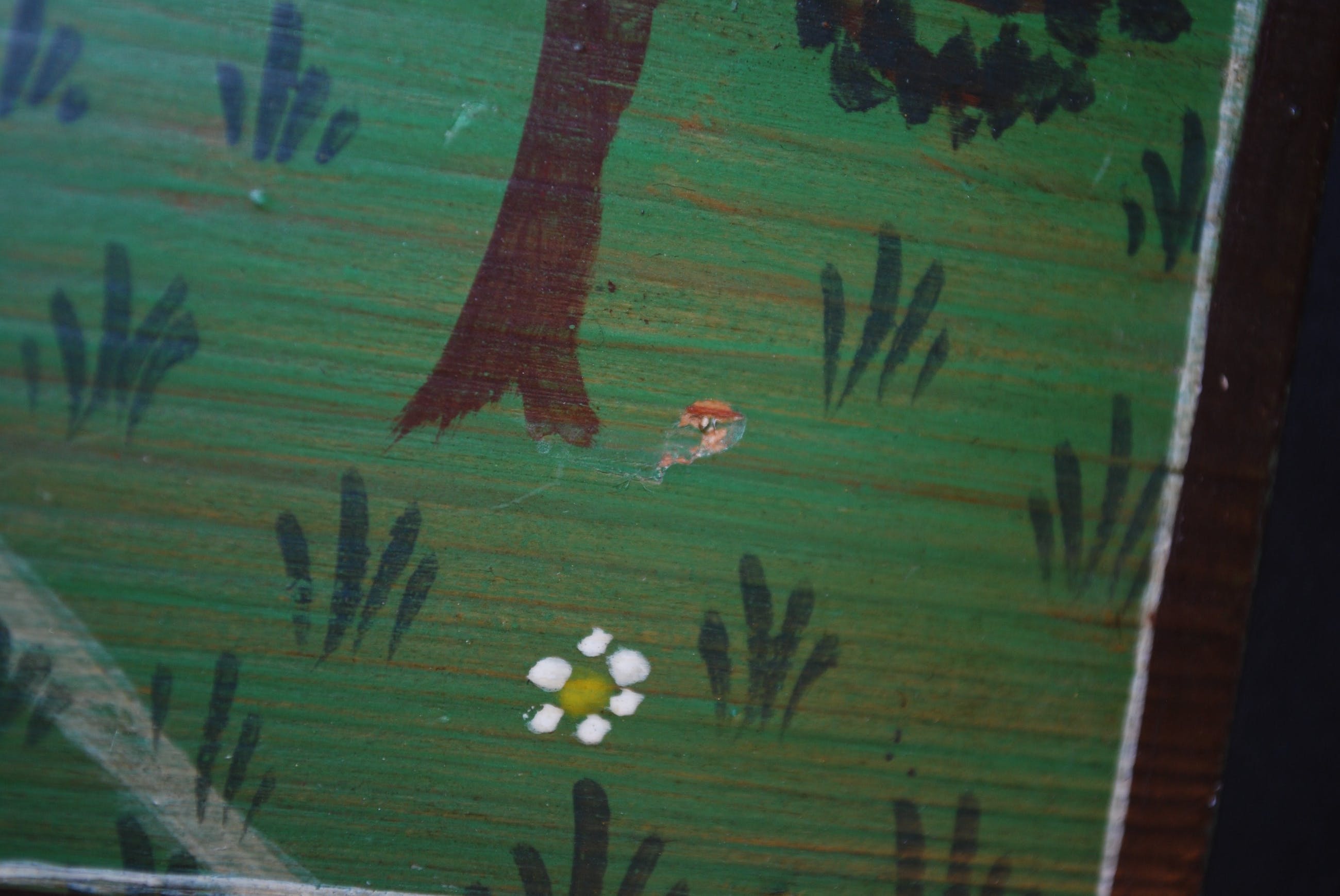 Olieverf op een houten plank van 1 cm dikte. Gesigneerd en gedateerd aan de achterzijde.