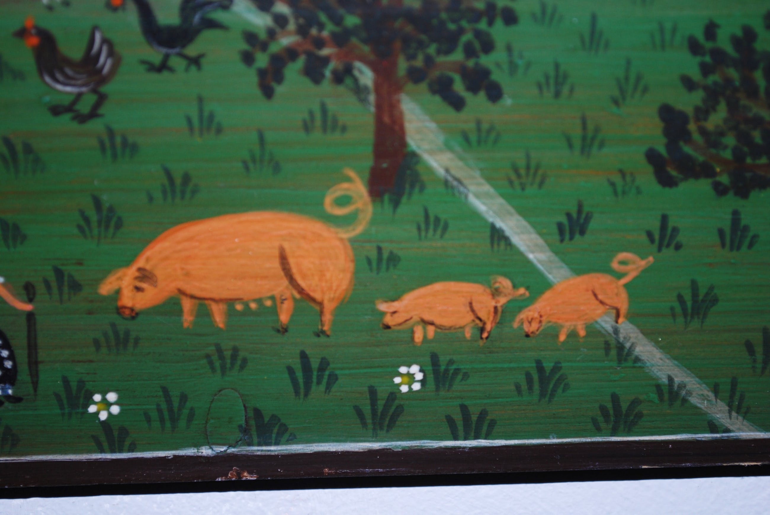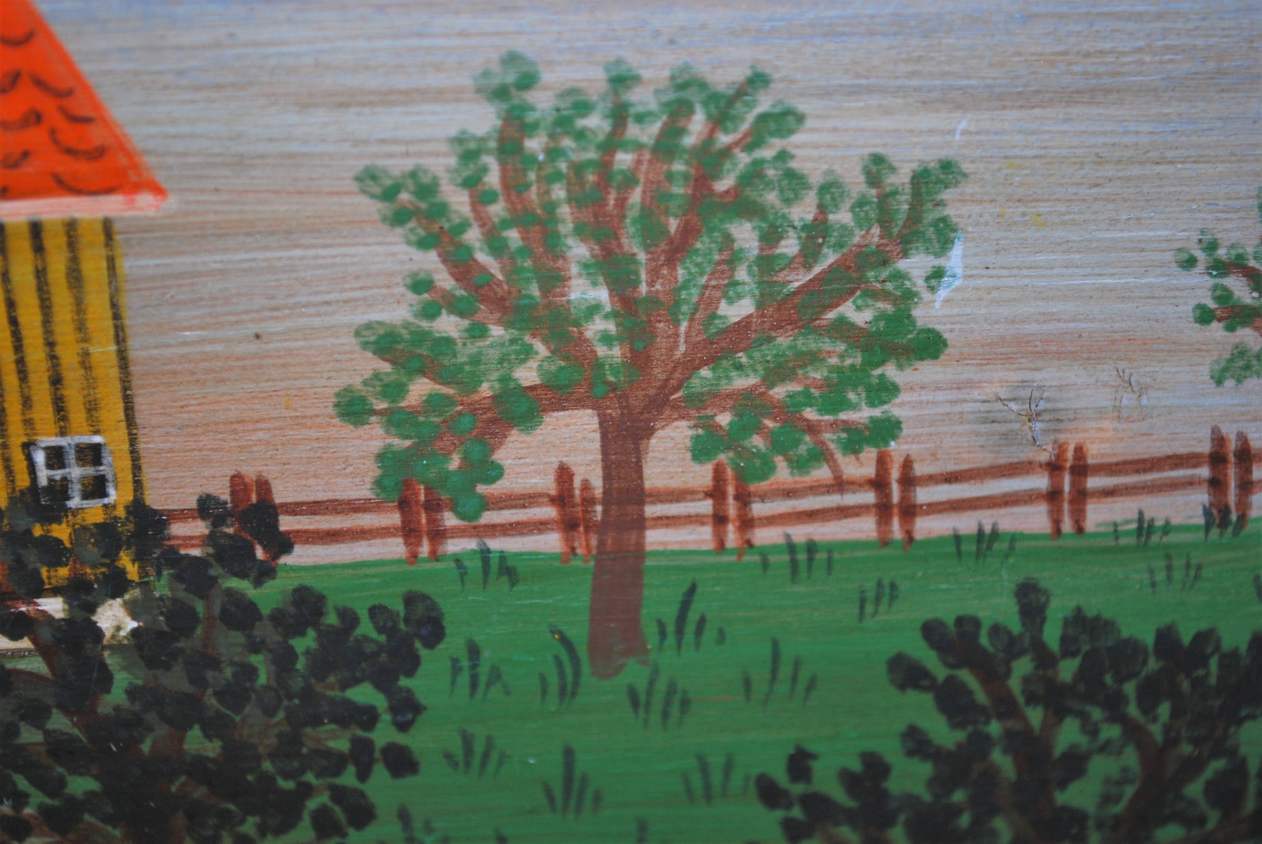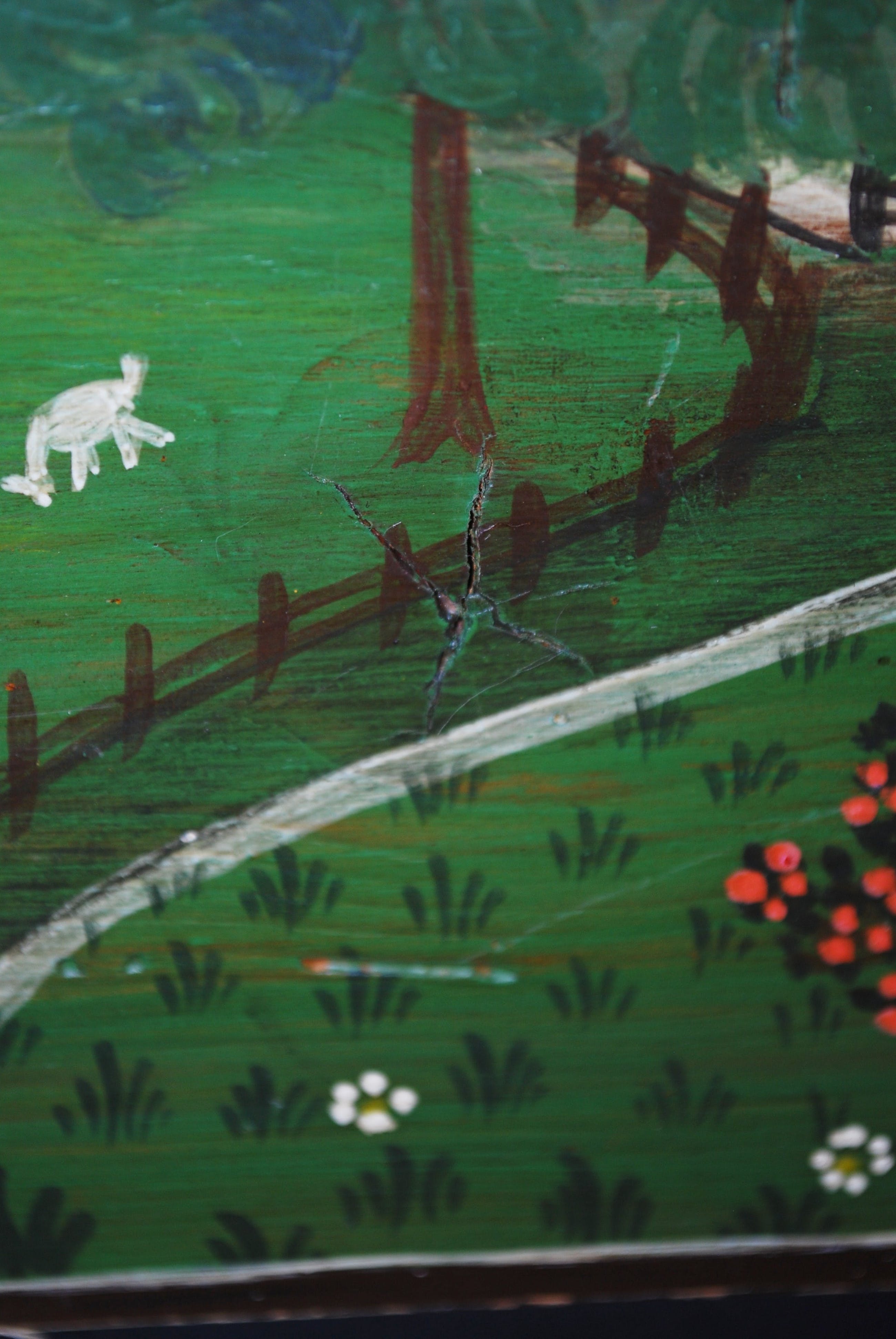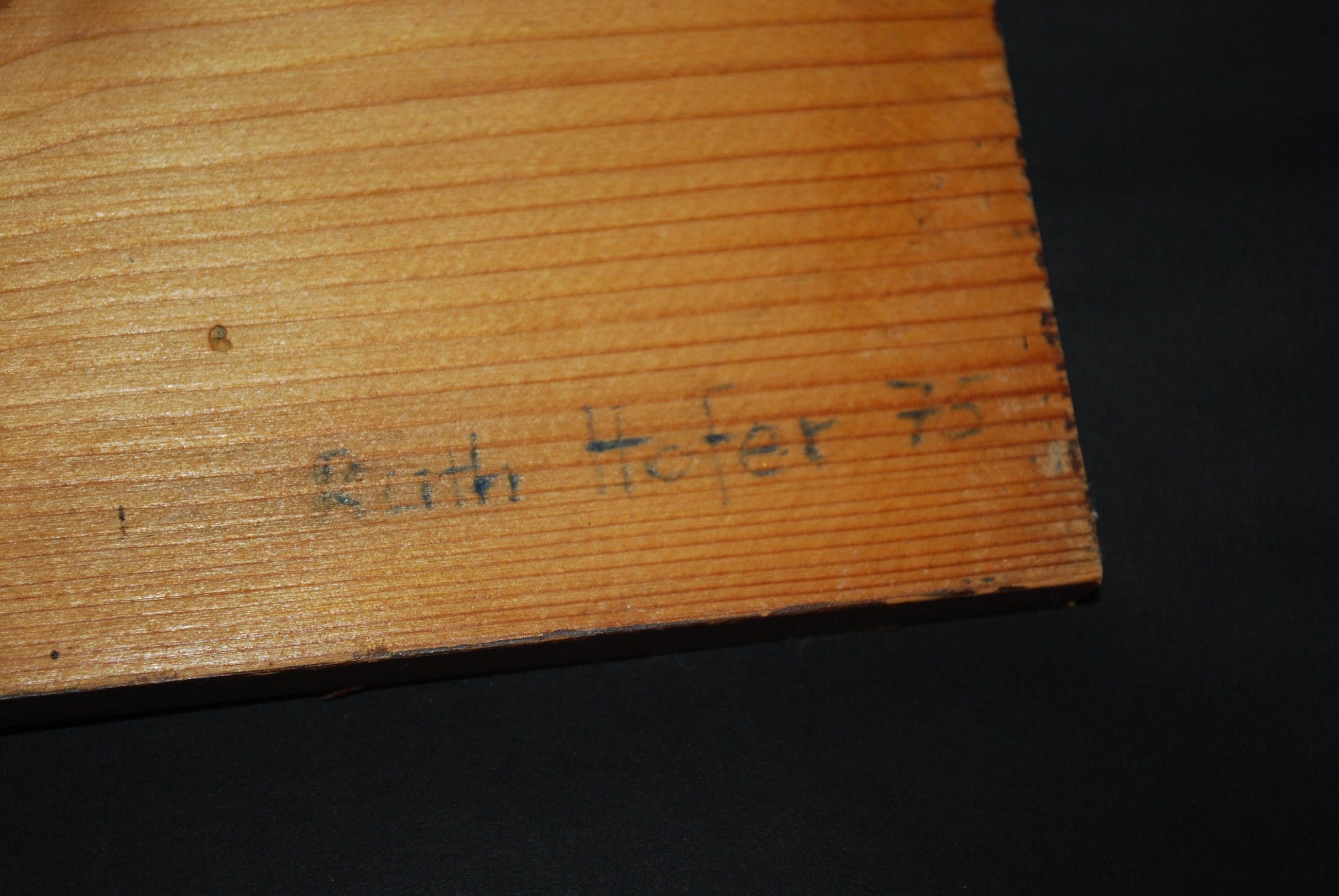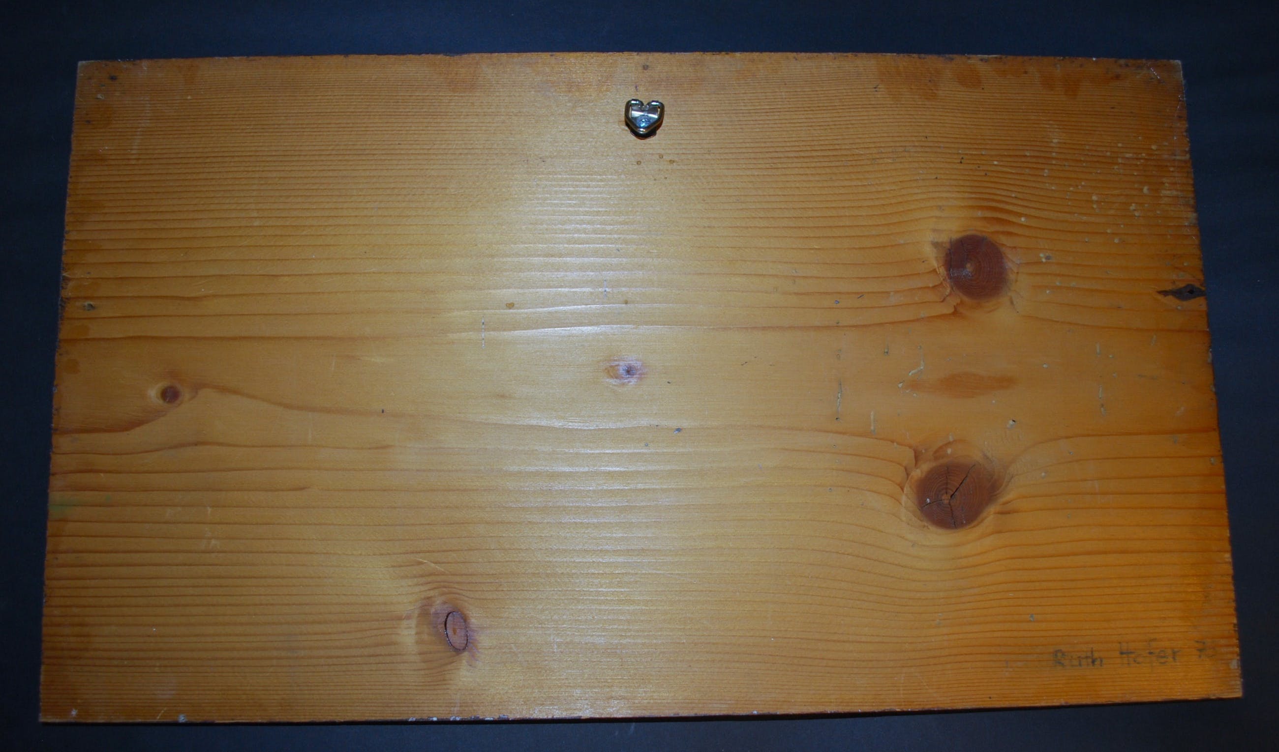 In goede gebruikte staat. Buts rechtsonder. De nerven van het hout zorgen voor wat onregelmatigheden. Het werk is iets donkerder dan op de foto's te zien is.