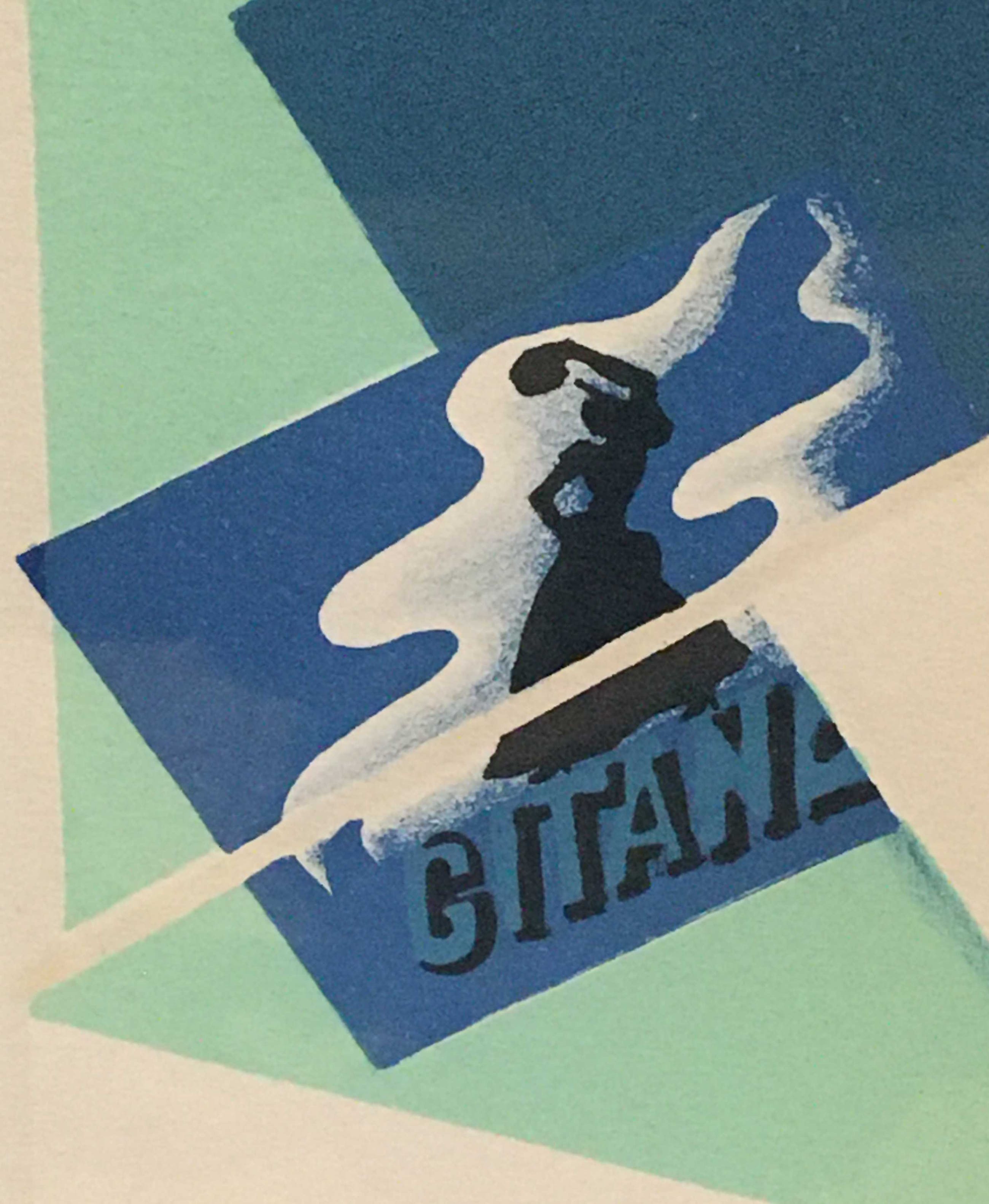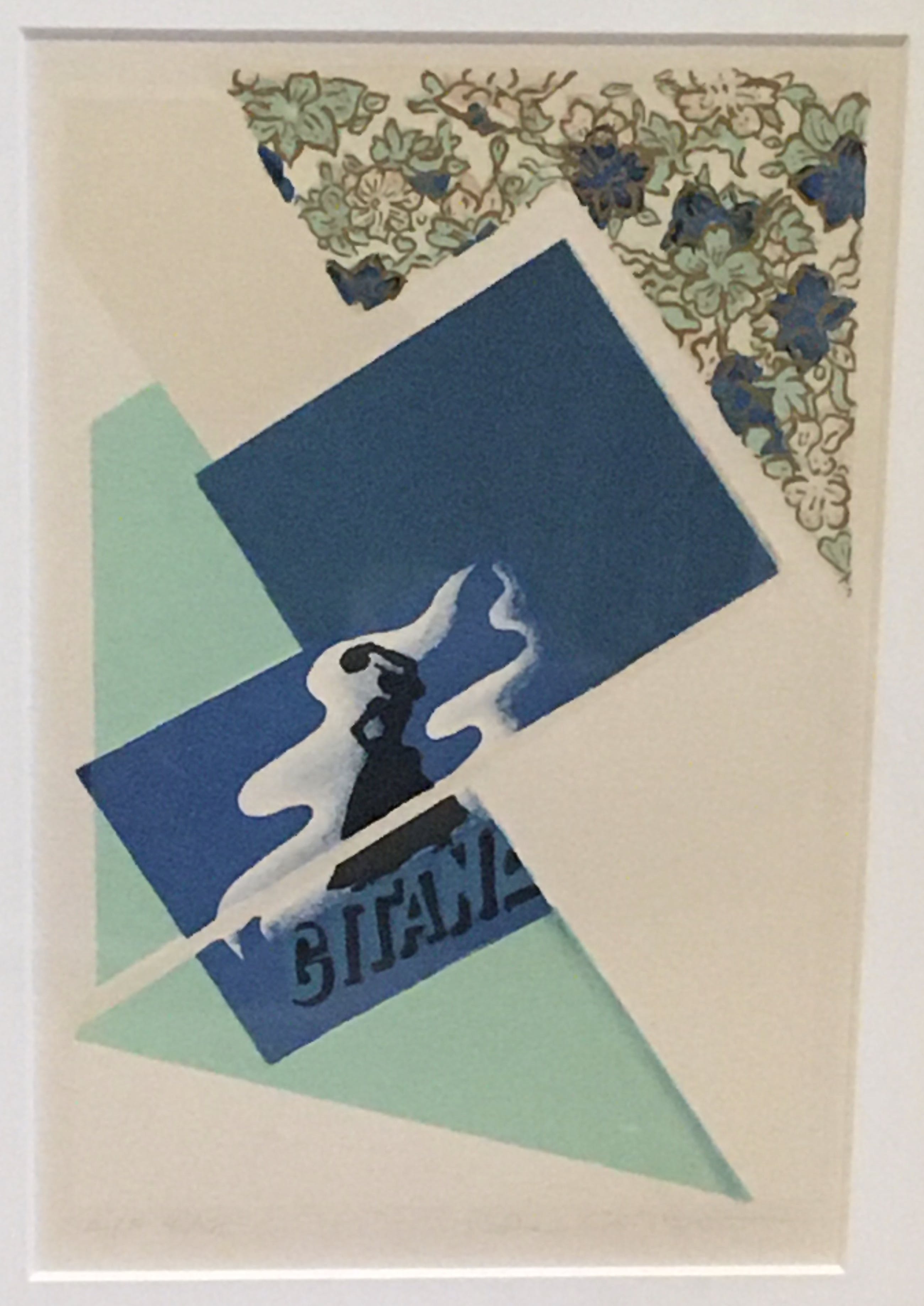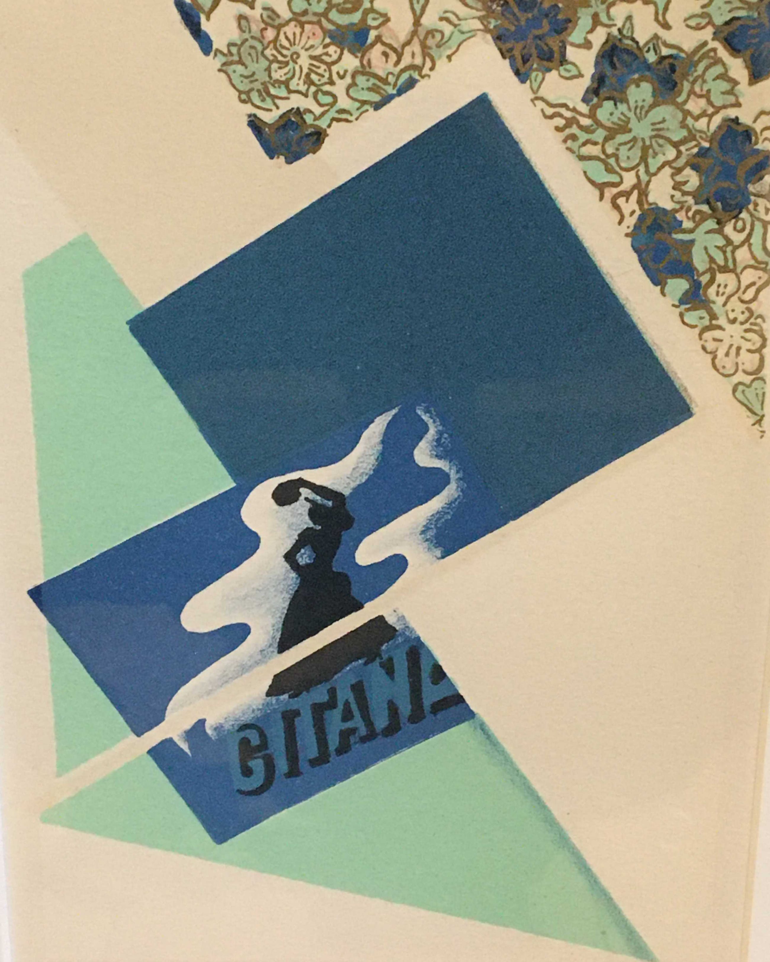 In zeer beperkte oplage vervaardigde zeefdruk met daarop o.a. een afbeelding van  de dame van de 'Gitanes' sigaretten die de tamboerijn bespeelt.