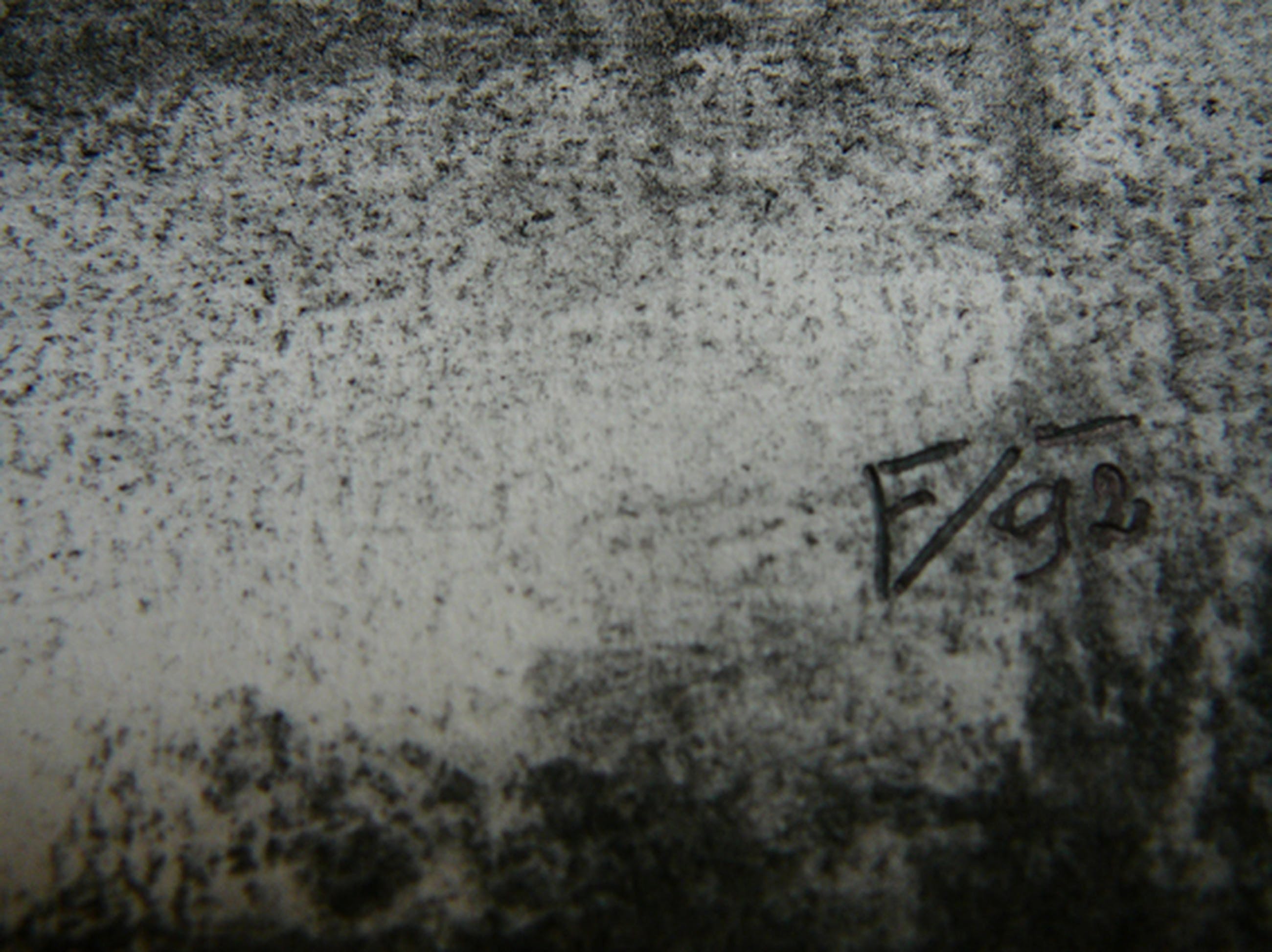 Titel: Nevel over Polderlandschap Techniek: houtskooltekening Beeldformaat: 53 x 42,5 cm Lijst: 60 x 51 cm Signatuur: F/92 Conditie: perfect, achter ontspiegeld glas