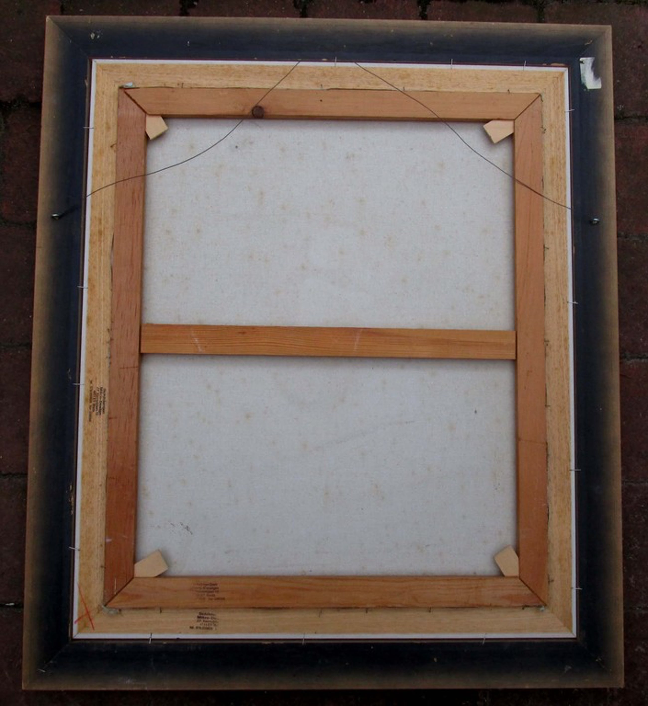 Conditie: doek uitstekend, lijst aan onderzijde enkele lichte beschadigingen
