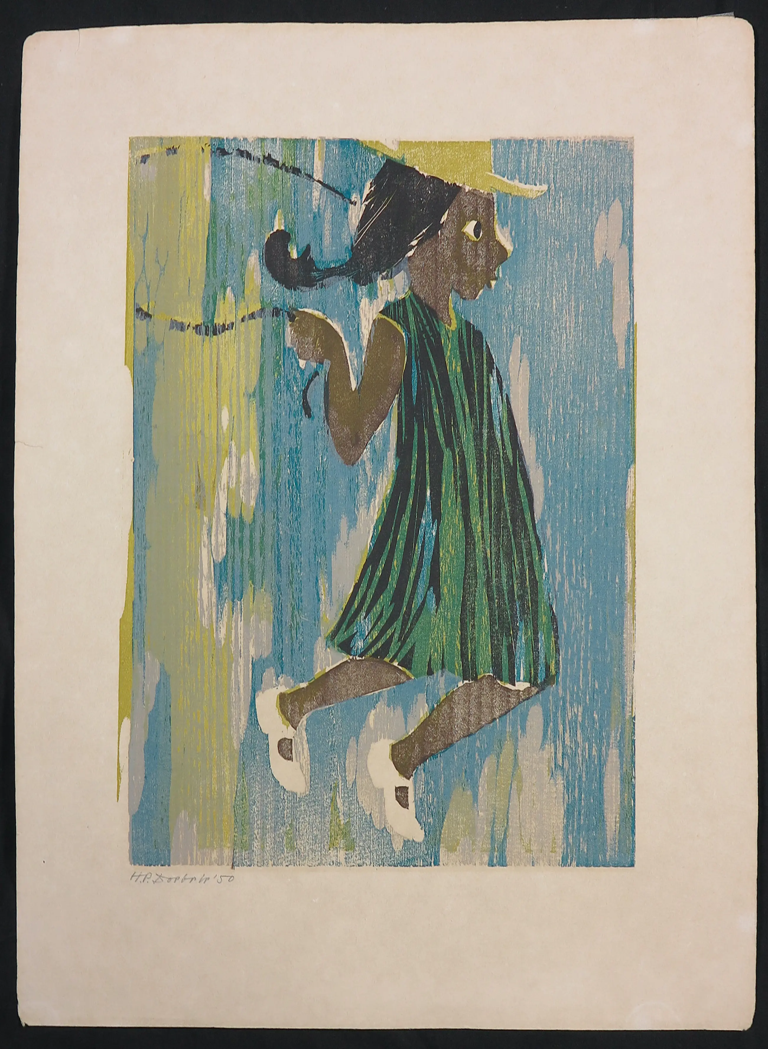 Een kleurrijke linosnede, afmetingen afbeelding 36 x 26,5 cm,