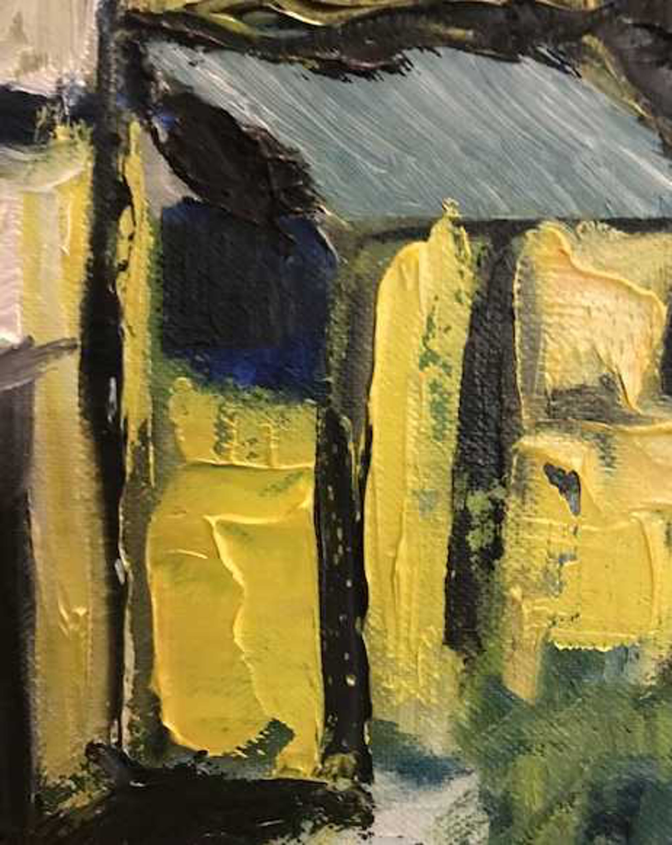 Prachtig schilderij, met sprekende kleuren. Weergave van een huis aan rivier in een zuiderse omgeving (Provence/Toscaans). Er is gewerkt met paletmes, dikke lagen olieverf.