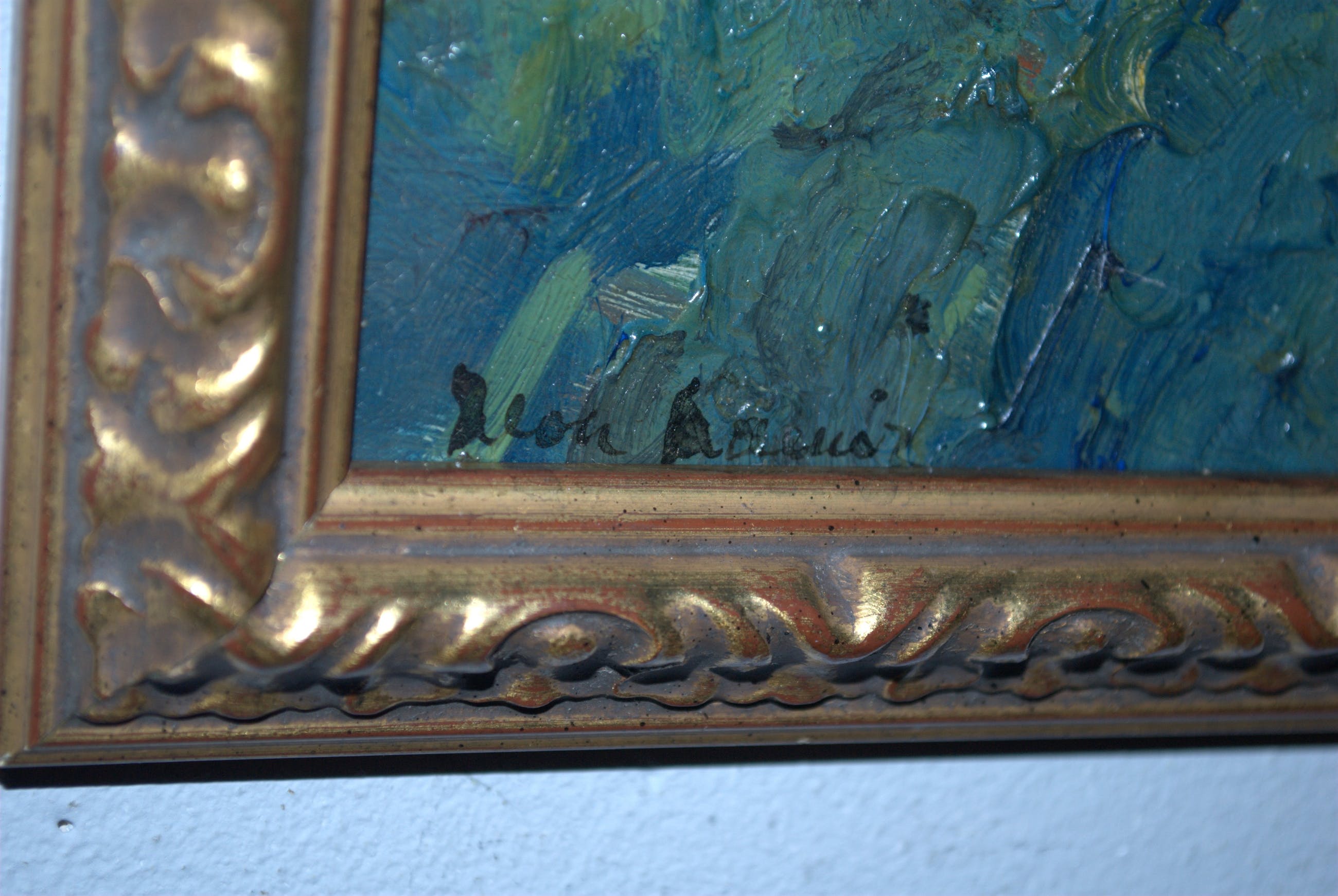 Onbekend - olieverf 1e helft 20eE, mogelijk Frans - uitzicht op water en bergen - Verkocht