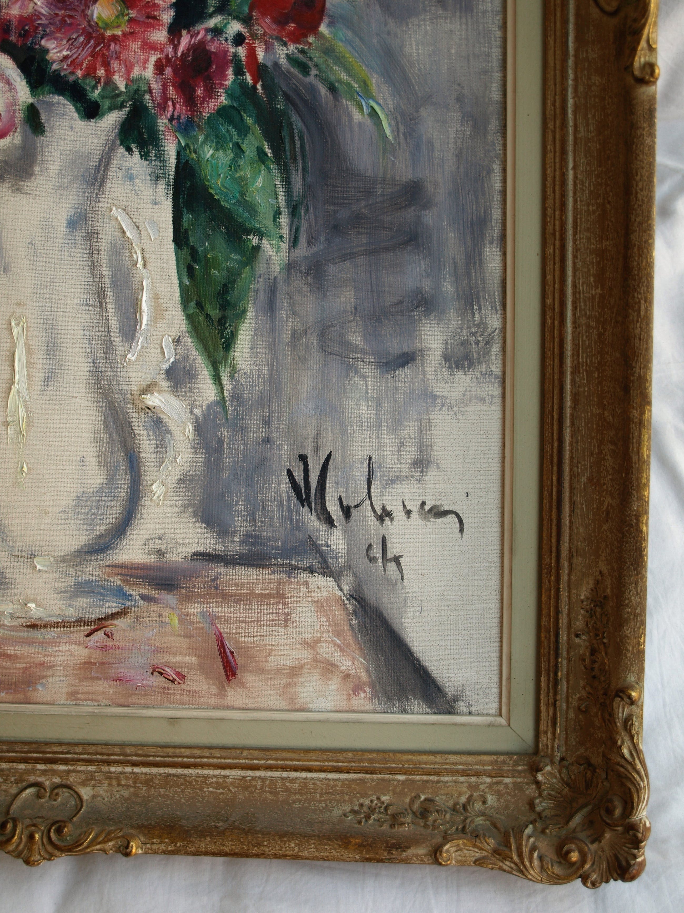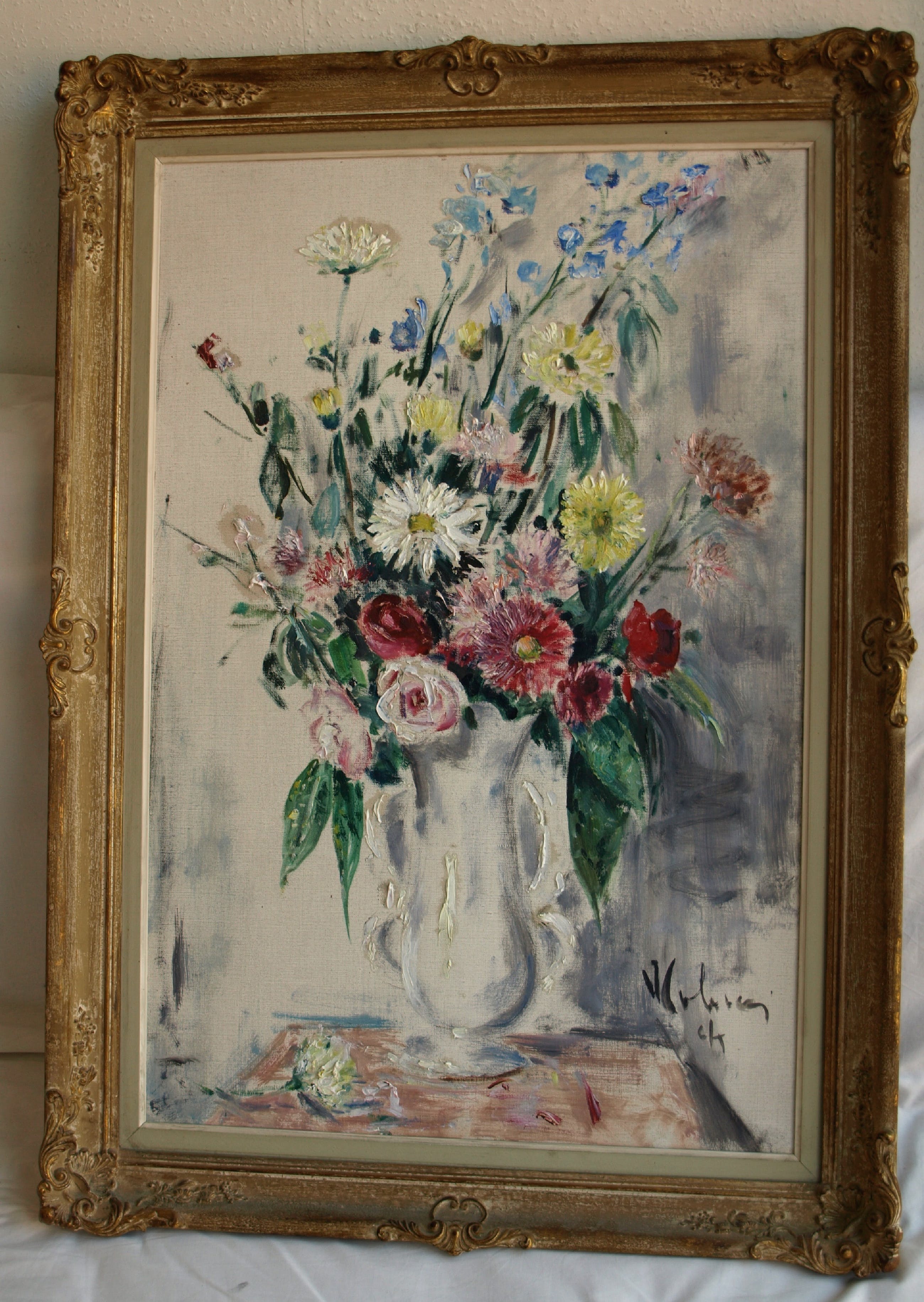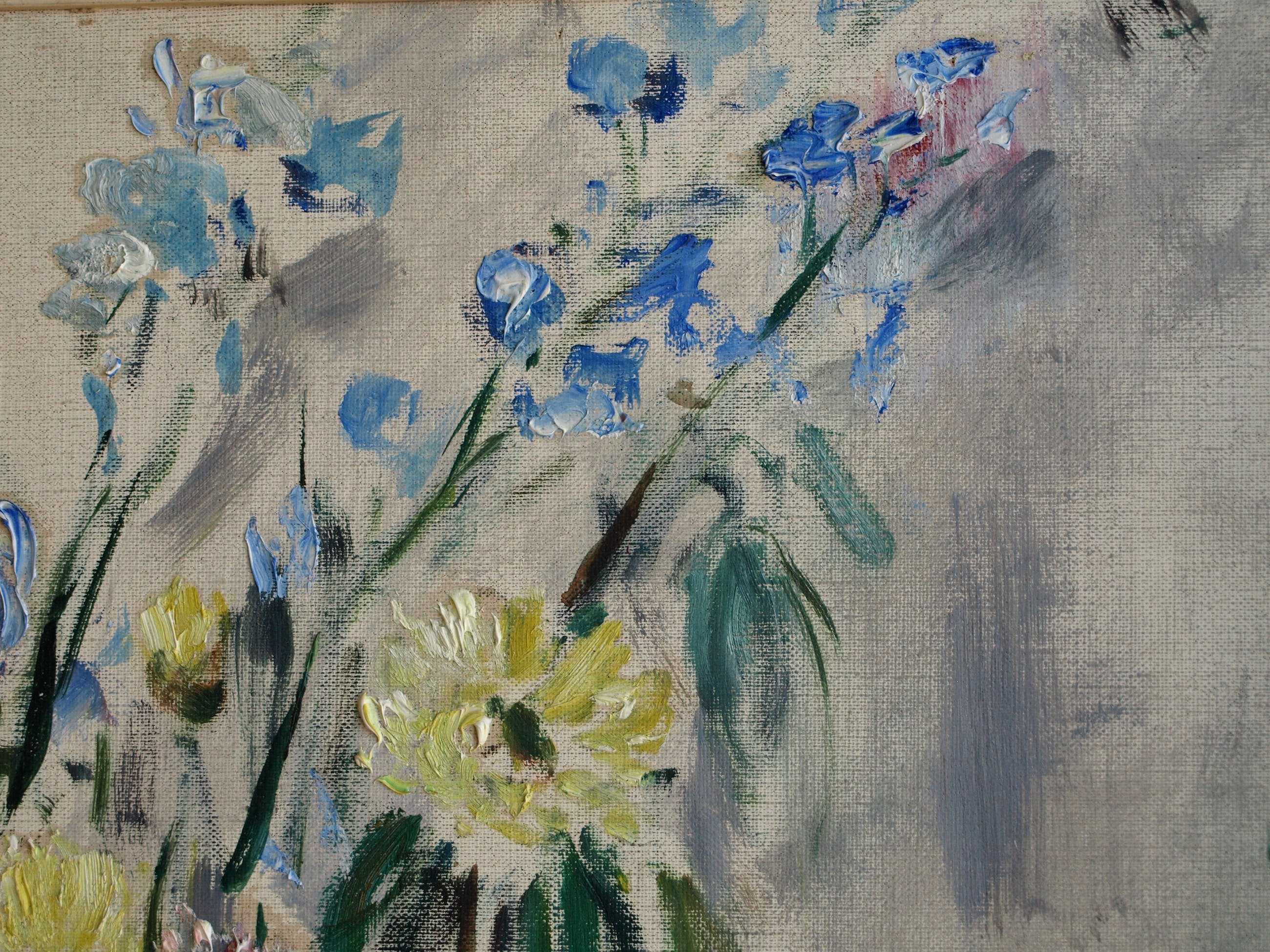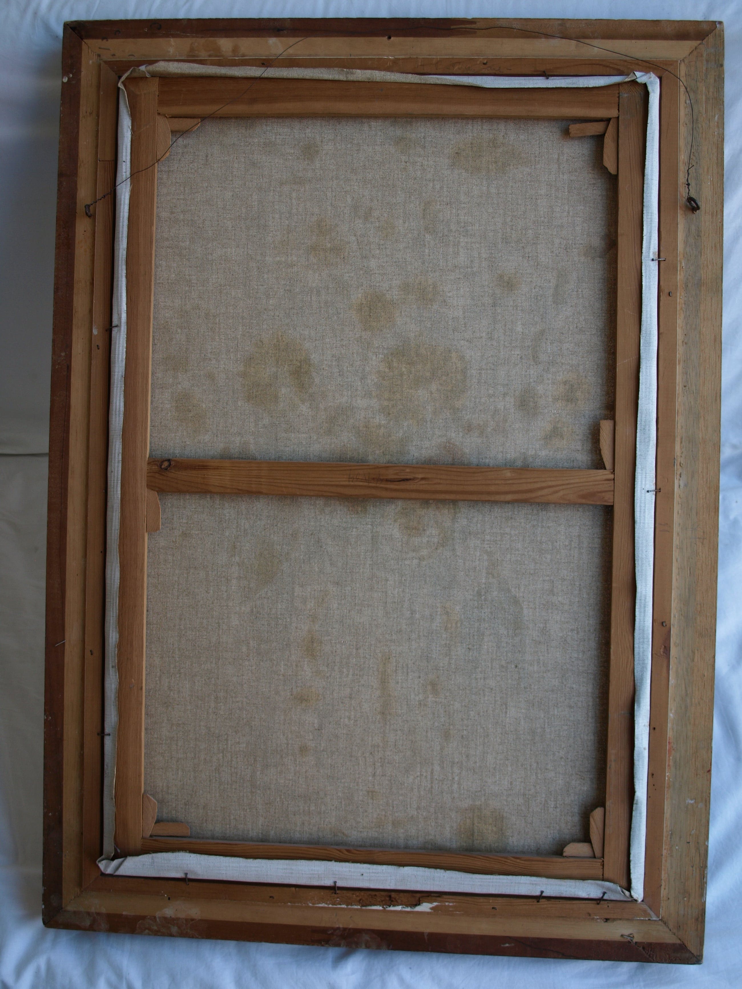 -Olieverf op doek, opgespannen op een houten spieraam en ingelijst in de originele houten lijst met sierrand.