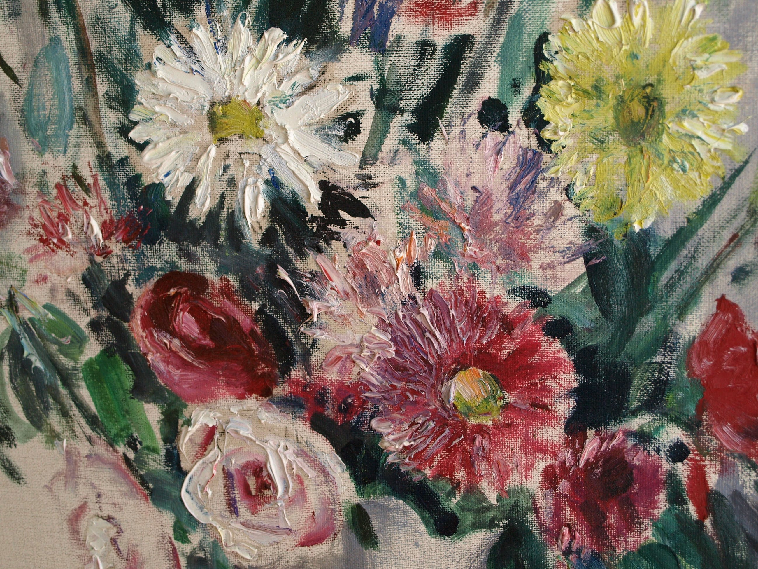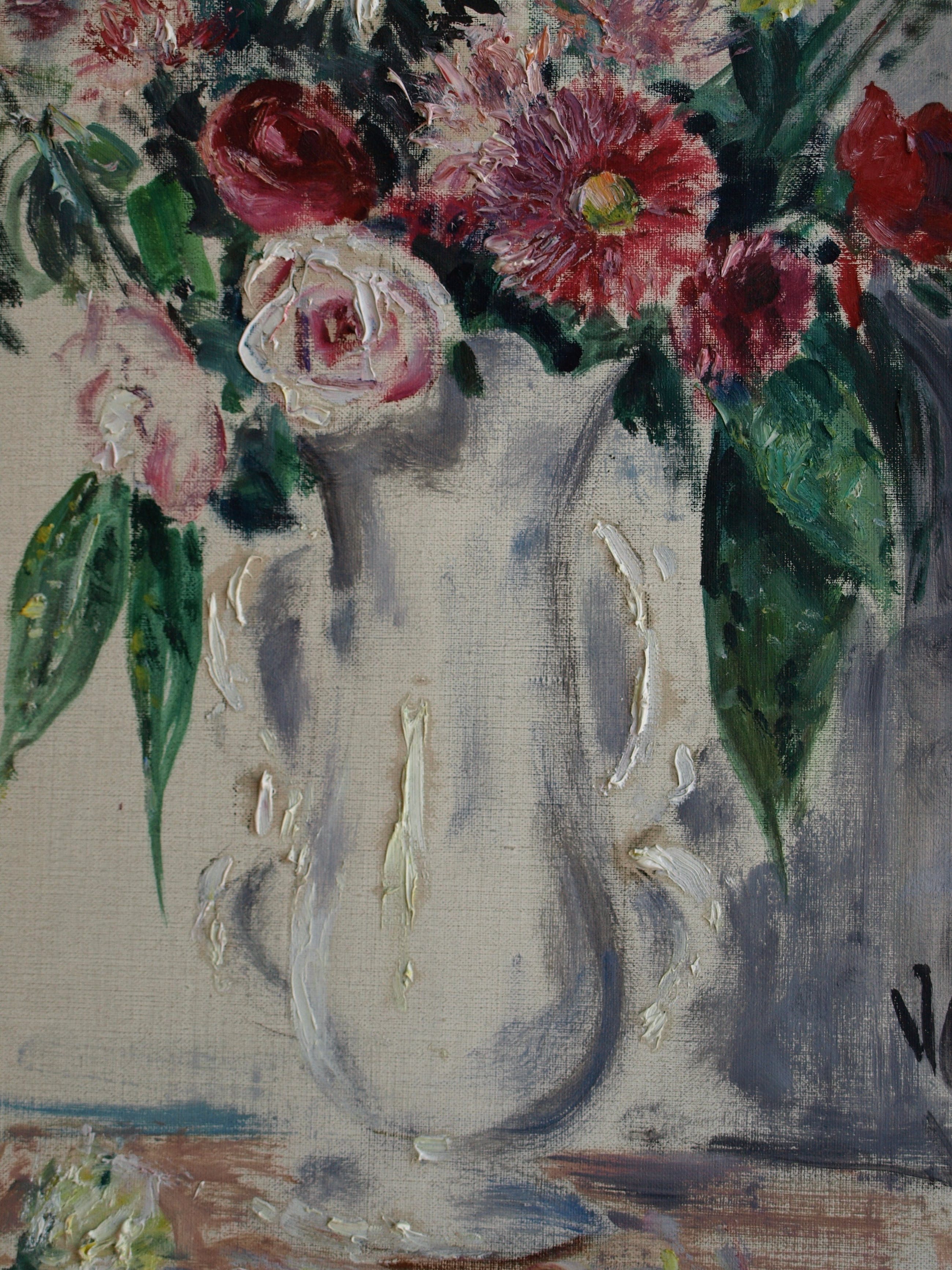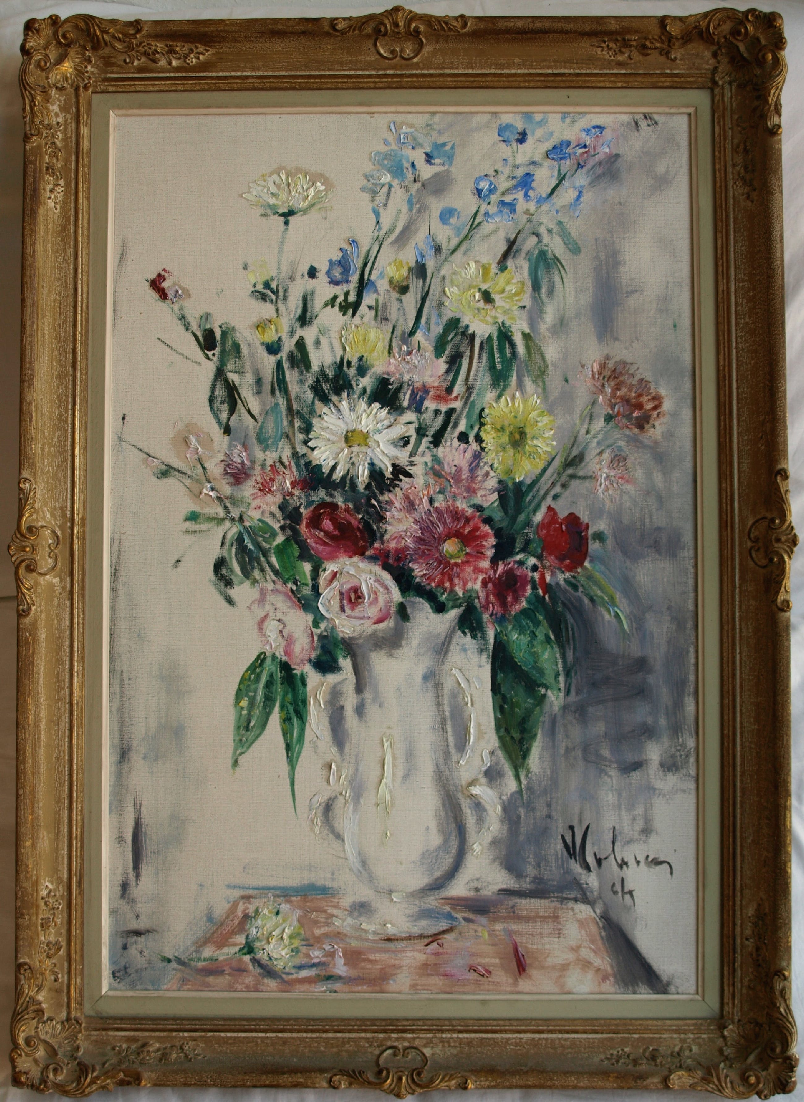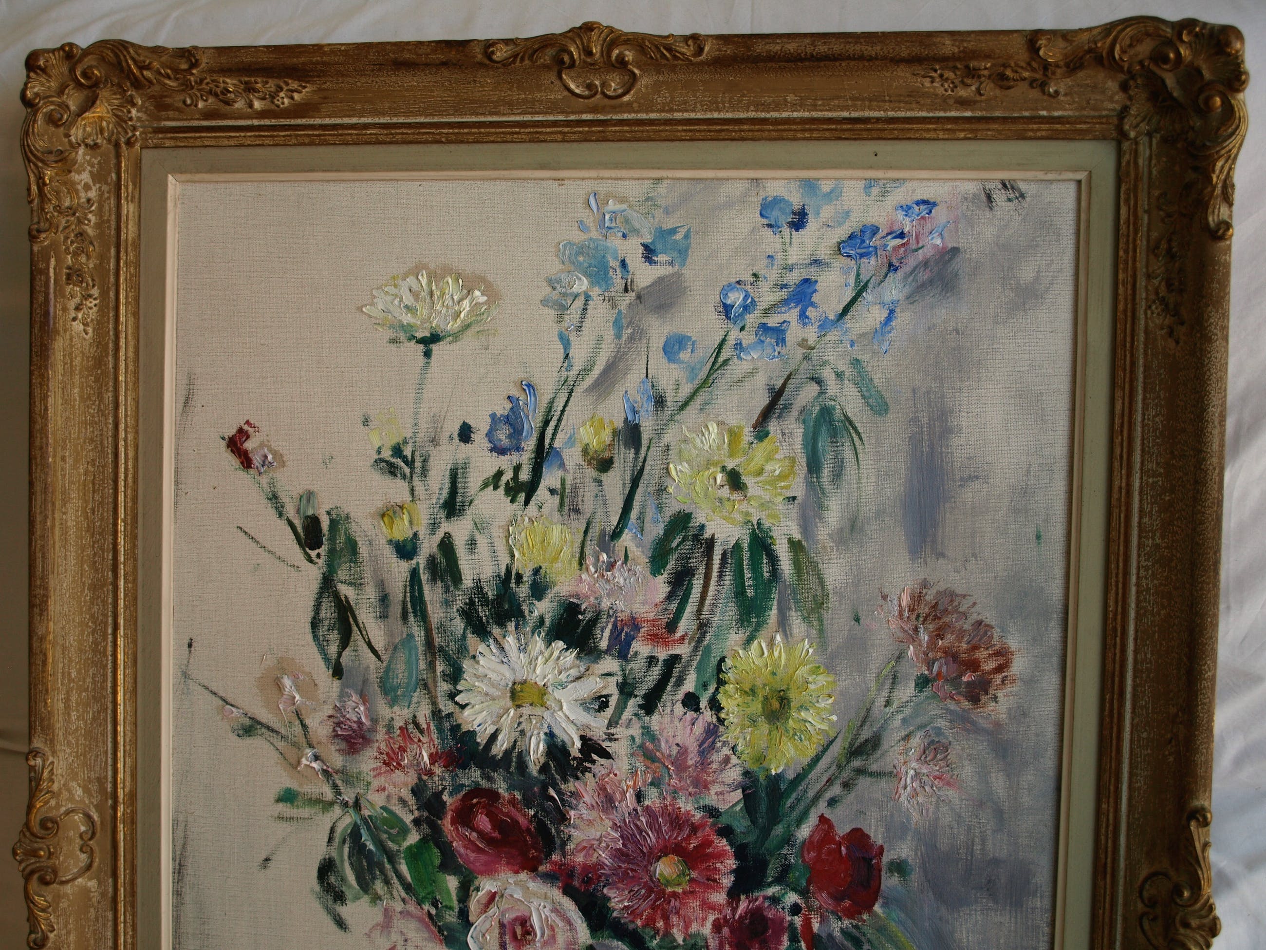 -Olieverf op doek, opgespannen op een houten spieraam en ingelijst in de originele houten lijst met sierrand.