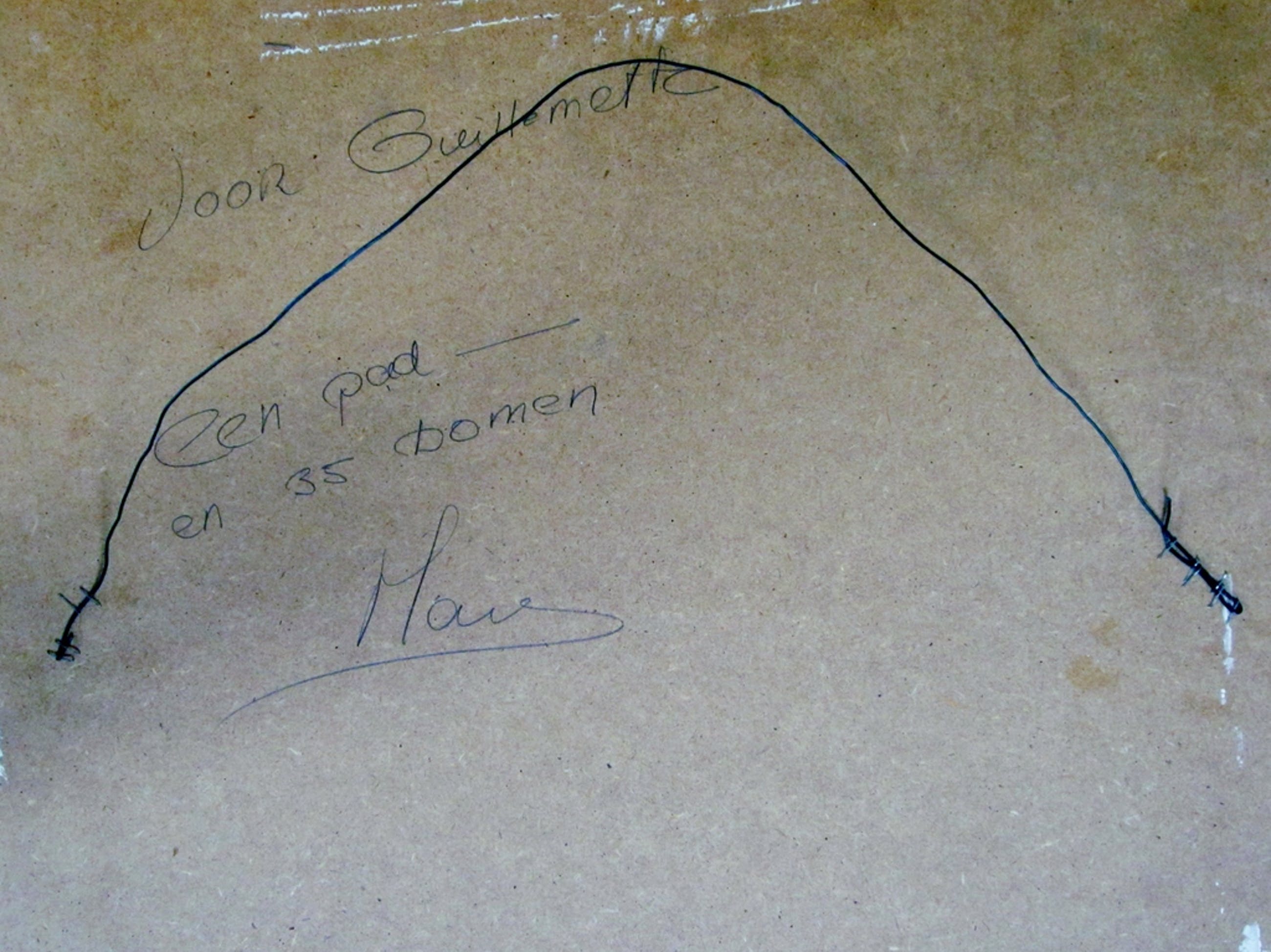 Aan de achterzijde gemerkt met opdracht en getiteld 'Een pad en 35 bomen'