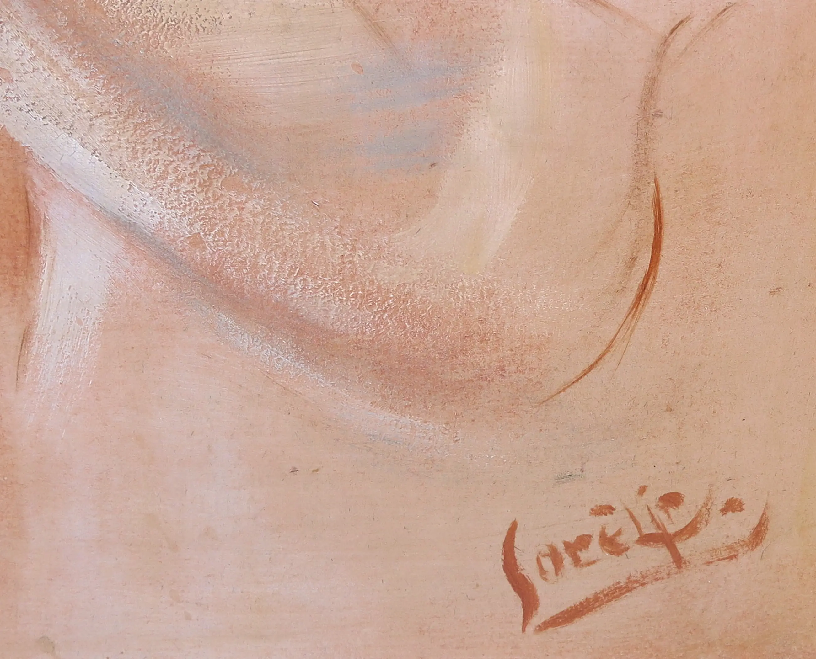 Redelijke conditie. Het board is aan de achterzijde bol getrokken. Enkele vlekjes en beschadigingen in het beeld, waaronder een deuk/buts in de hoek linksonder. Wat oppervlaktevuil. Tevens craquelé. | |