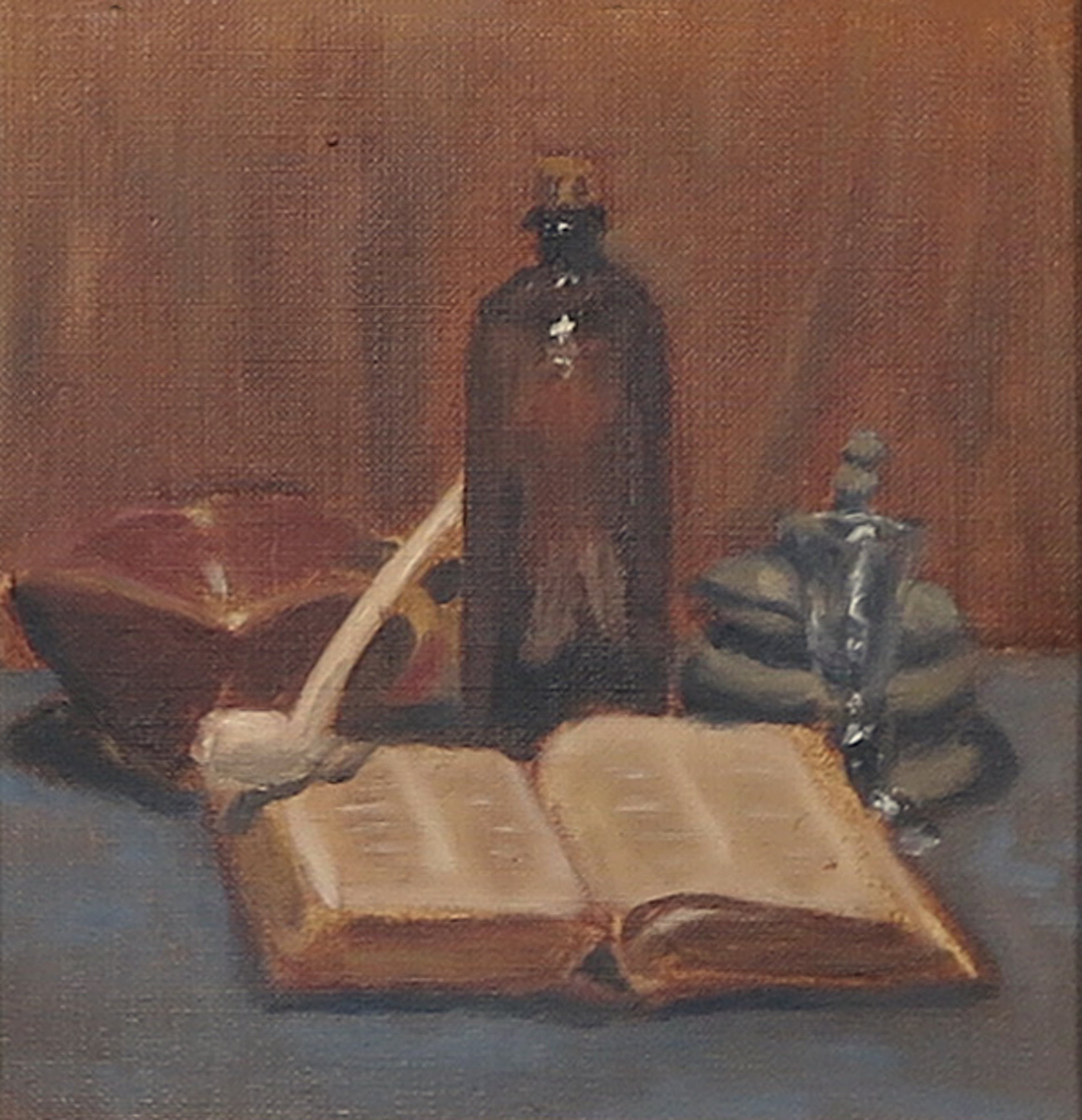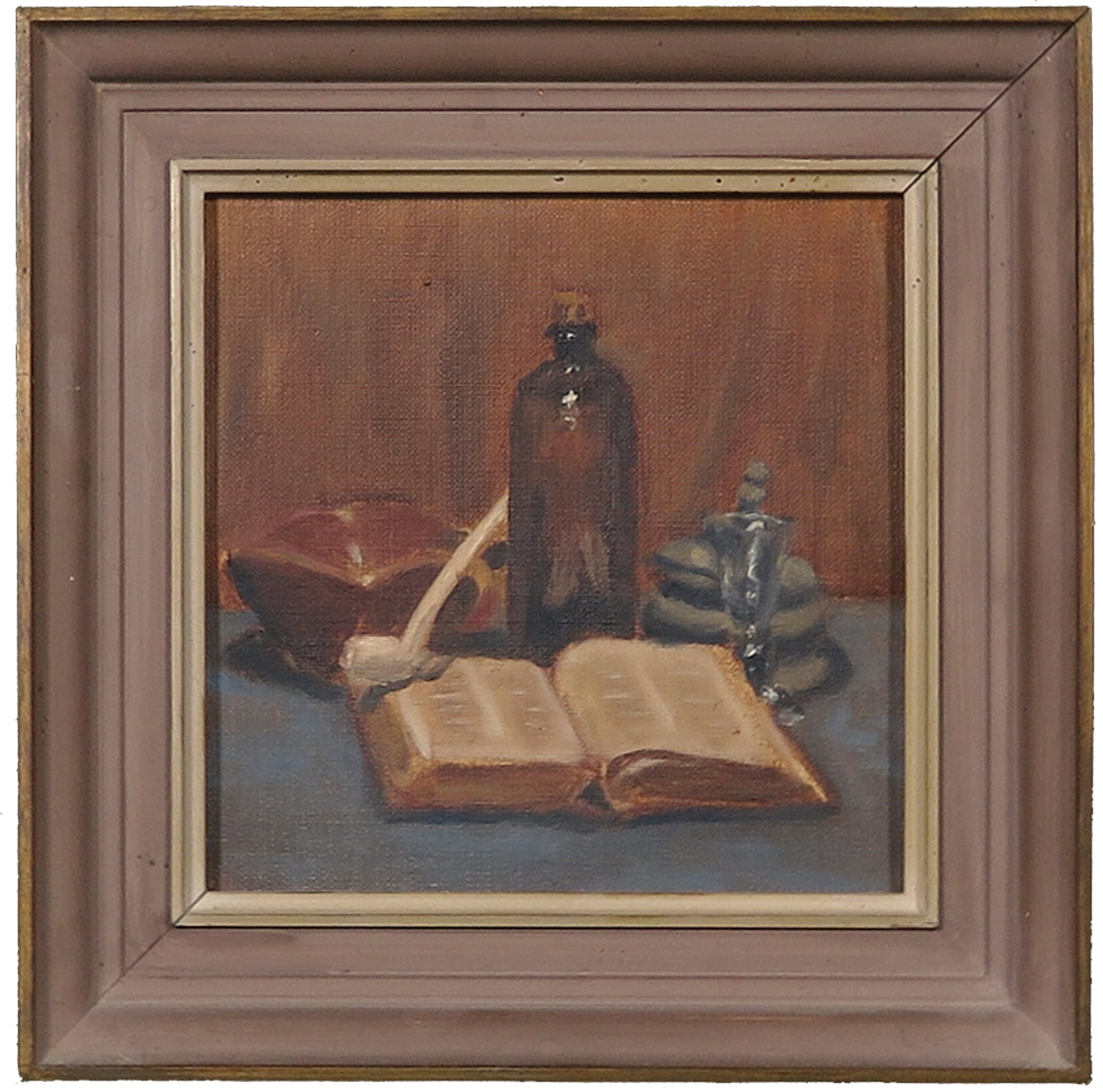 Onbekend - Olieverf op board, Stilleven met boek - Ingelijst - Verkocht