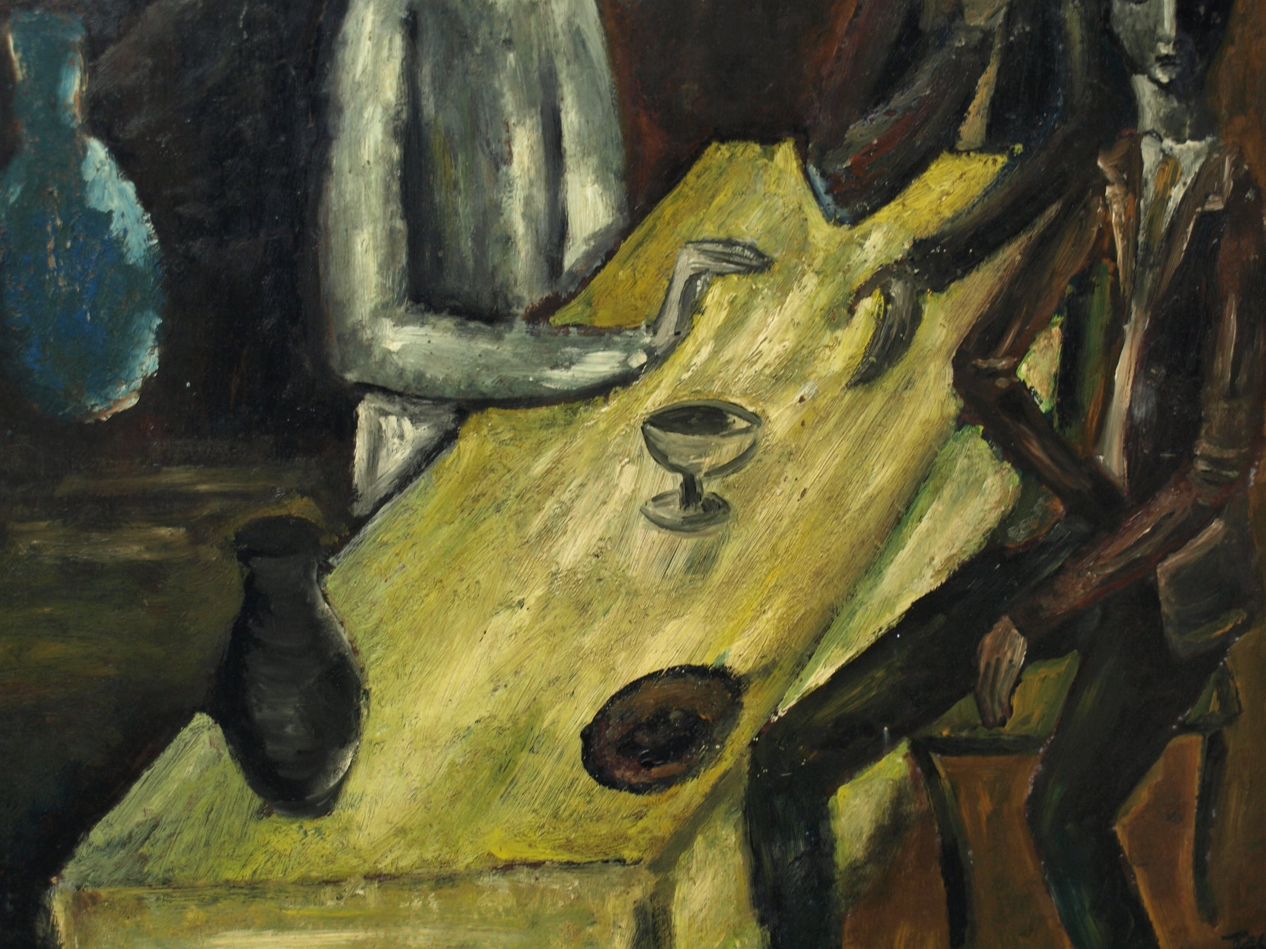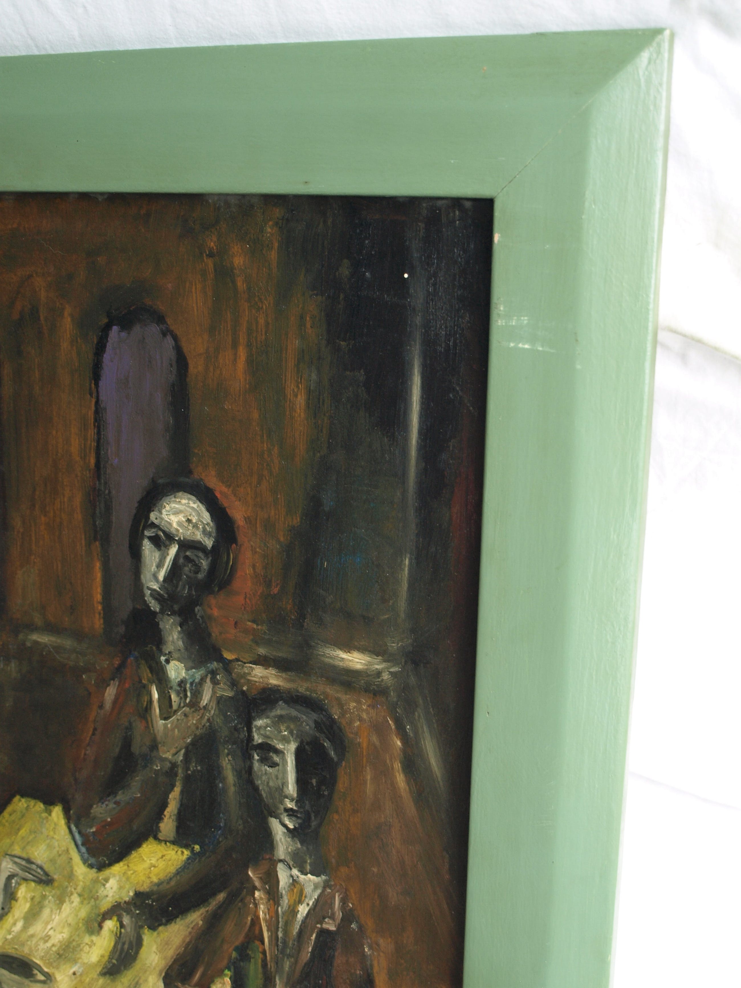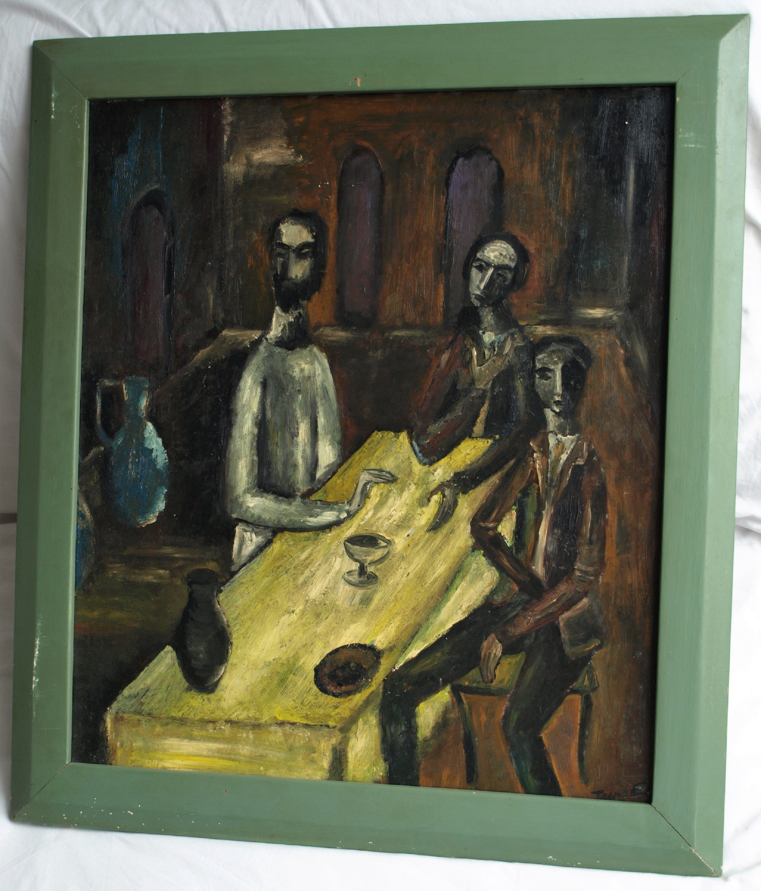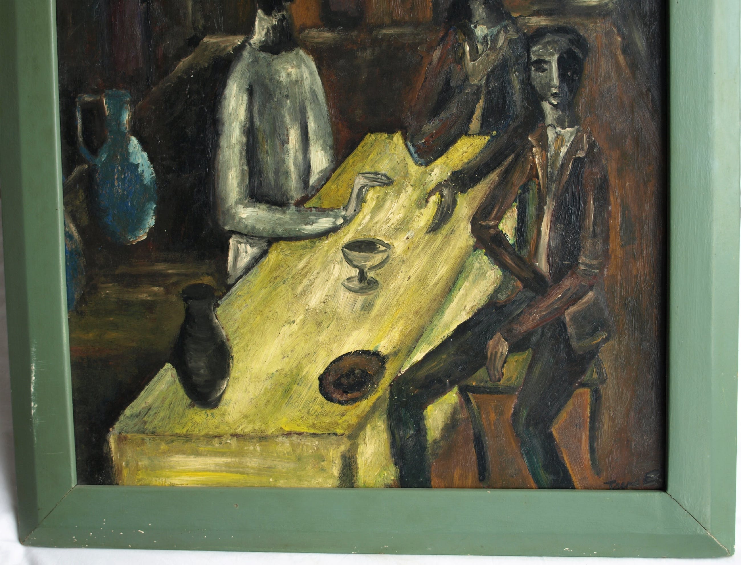 Niet of onleesbaar gesigneerd - Olieverf op board , “Aan de tafel” – gesigneerd & ingelijst kopen? Bied vanaf 10!