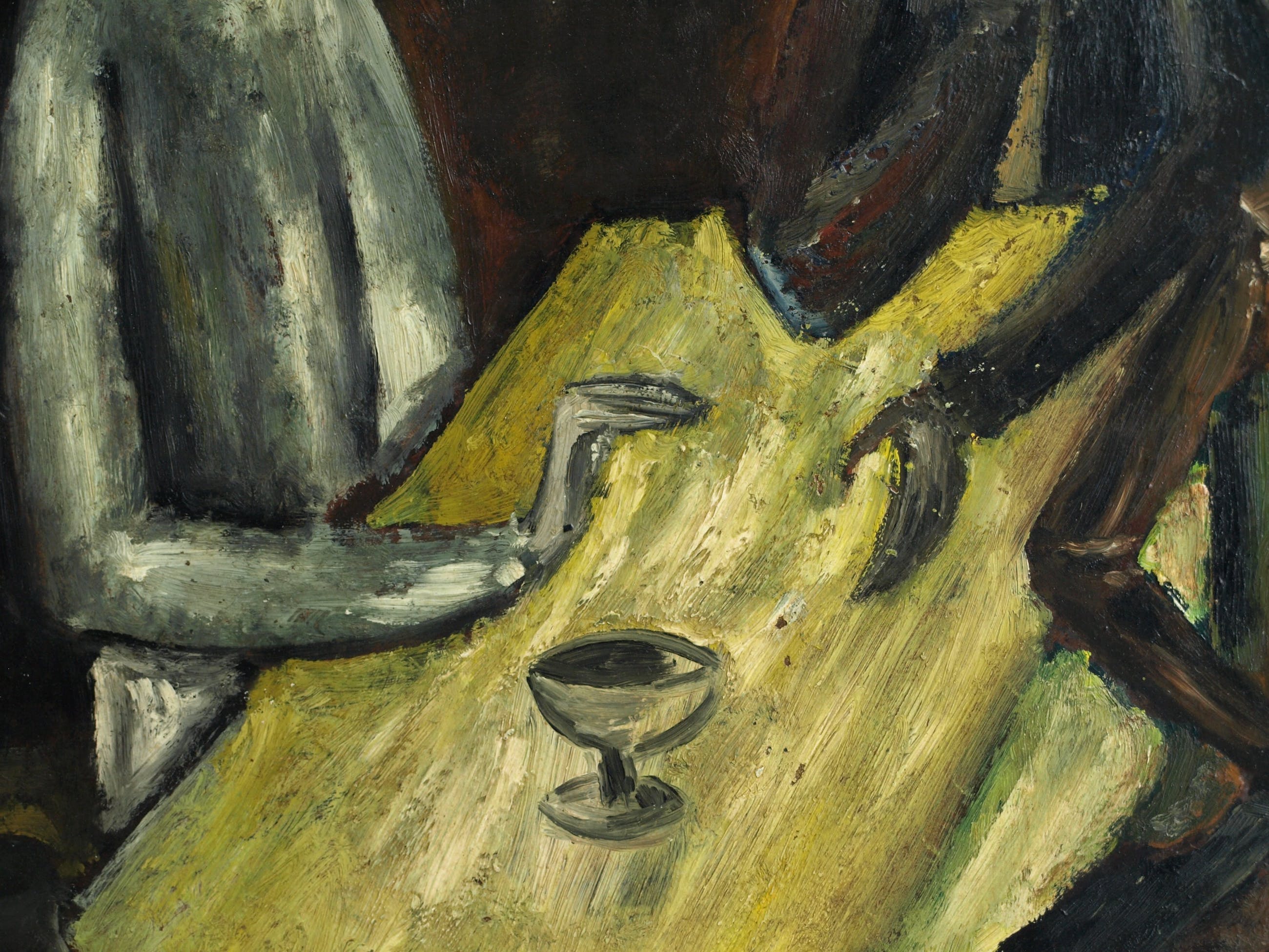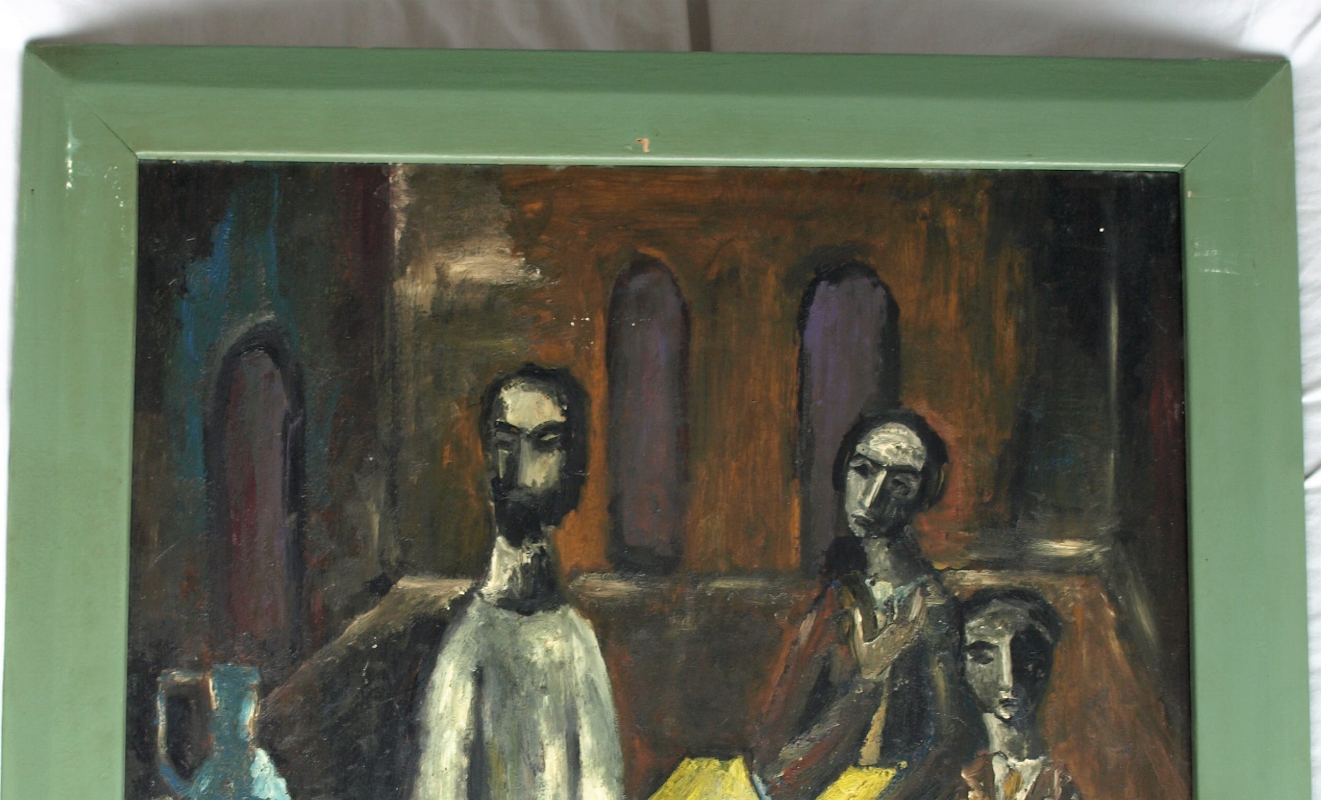 • Een groot ingelijst olieverfschilderij van een ons onbekende (mogelijk Franse of Belgische?) kunstenaar.