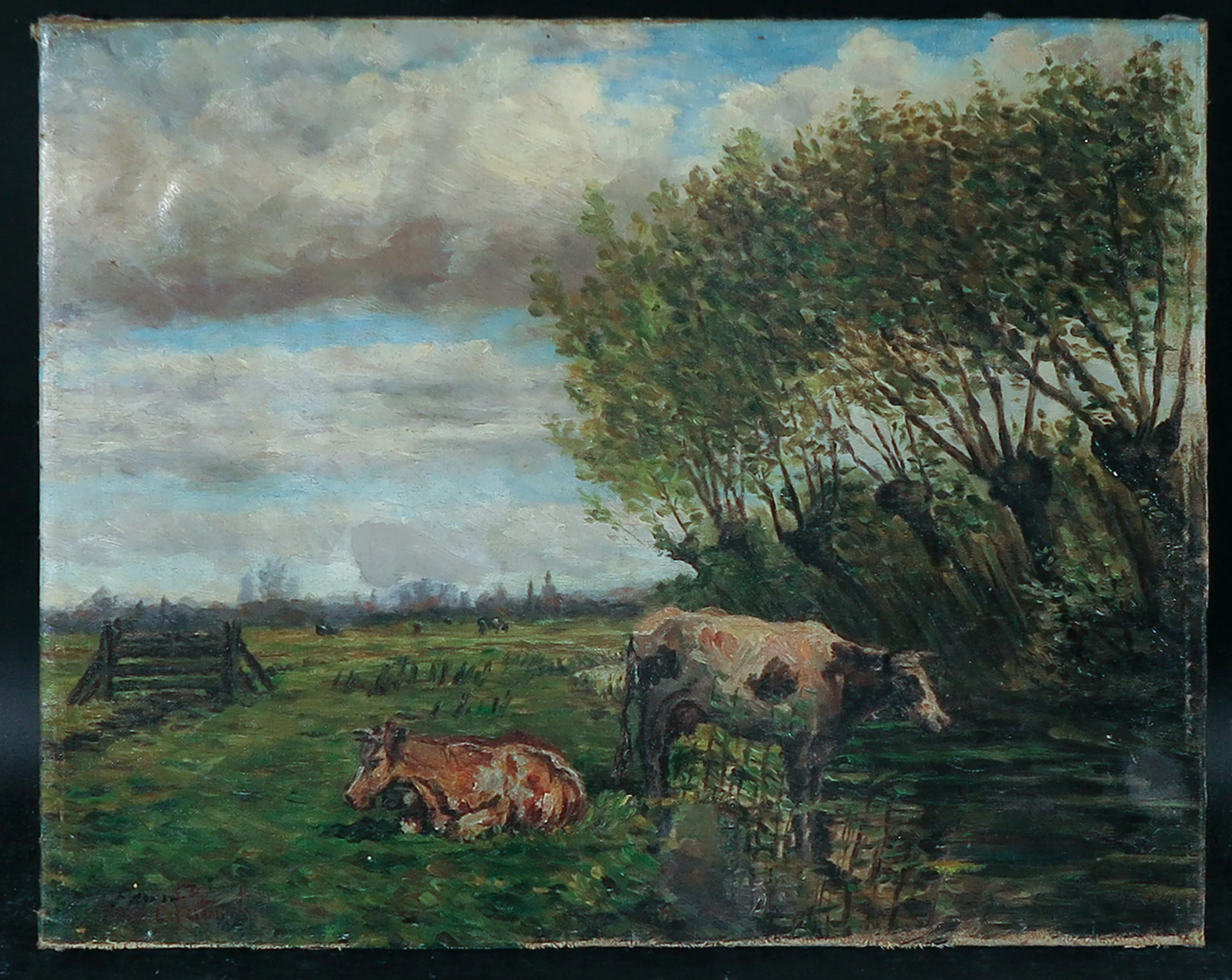 Onbekend - Olieverf op doek, Landschap met koeien - Verkocht