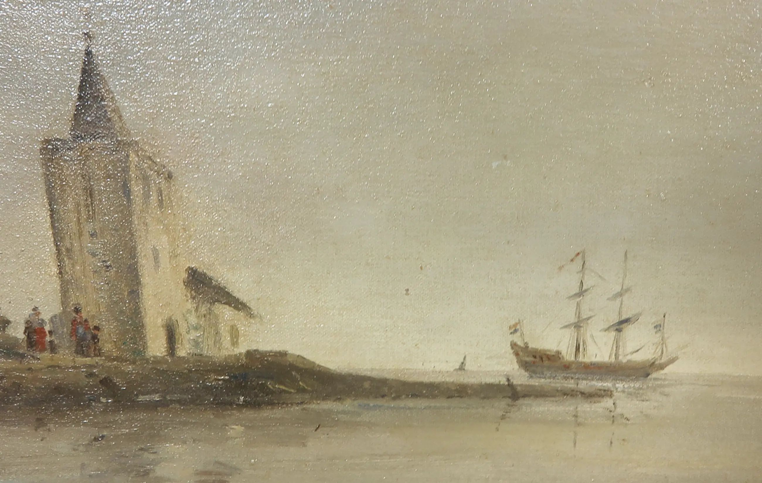 Het werk heeft wat lichte onregelmatigheden in het doek en heeft daarnaast wat minimale slijtagesporen aan de randen en hoeken. Zie hiervoor de detailfoto's. | |