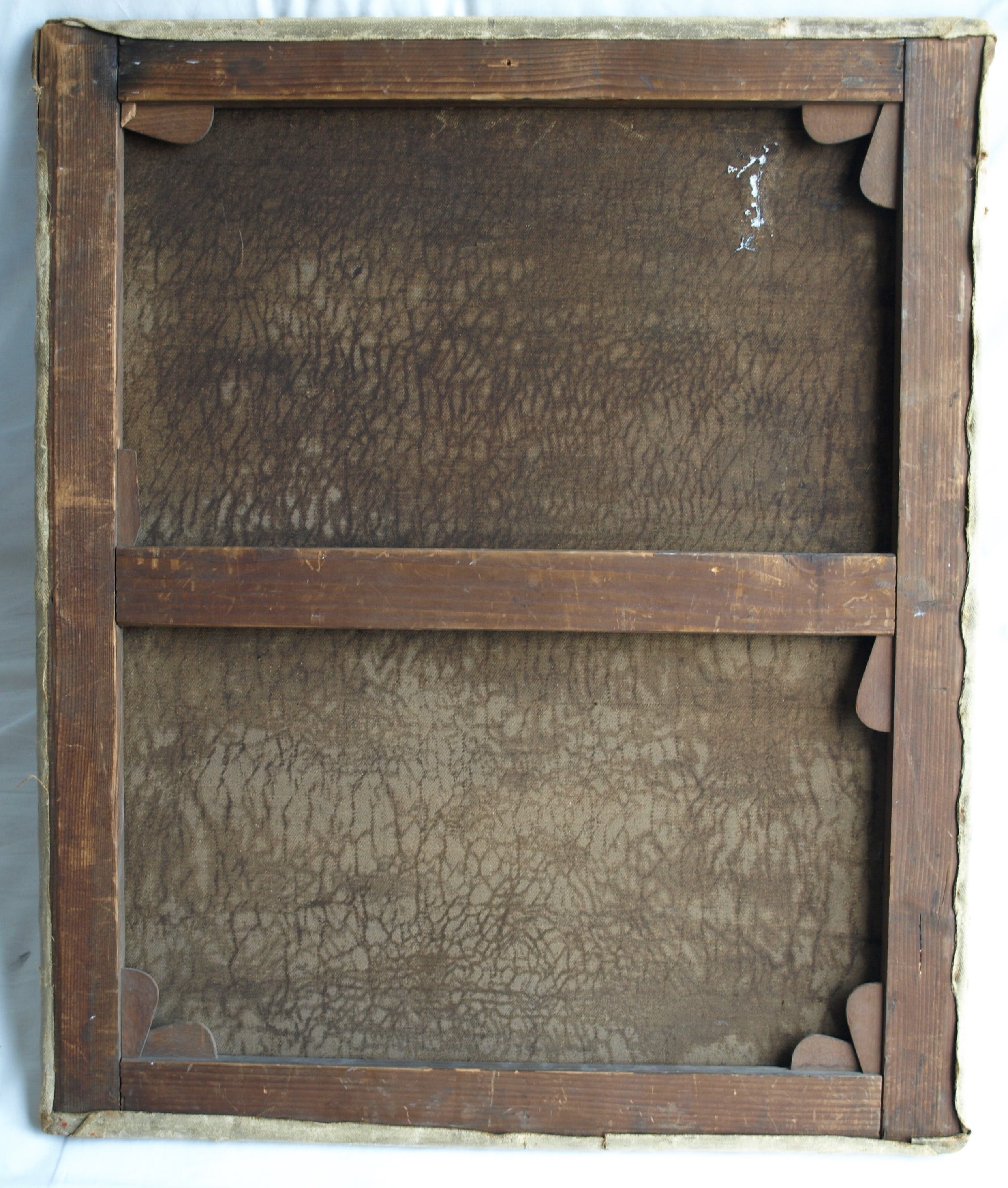 -Conditie: In goede staat met ouderdomssporen: slijtplekjes, m.n. aan de randen, craquelé en het werk zou schoongemaakt kunnen worden. Het doek heeft in het midden (op de hoogte van de kin van de vrouw) een horizontale ‘doordruk’ van de middenlat van het spieraam.