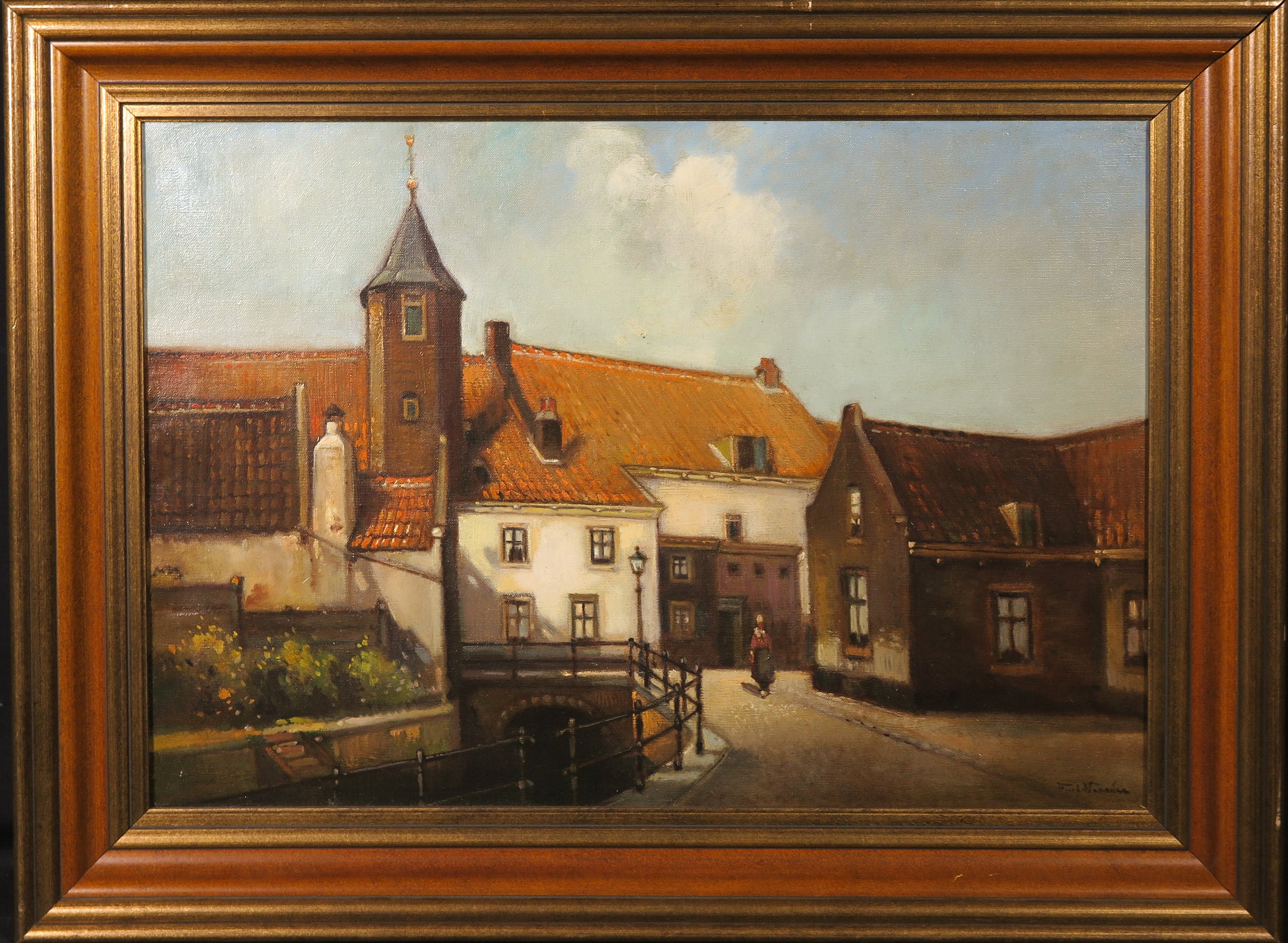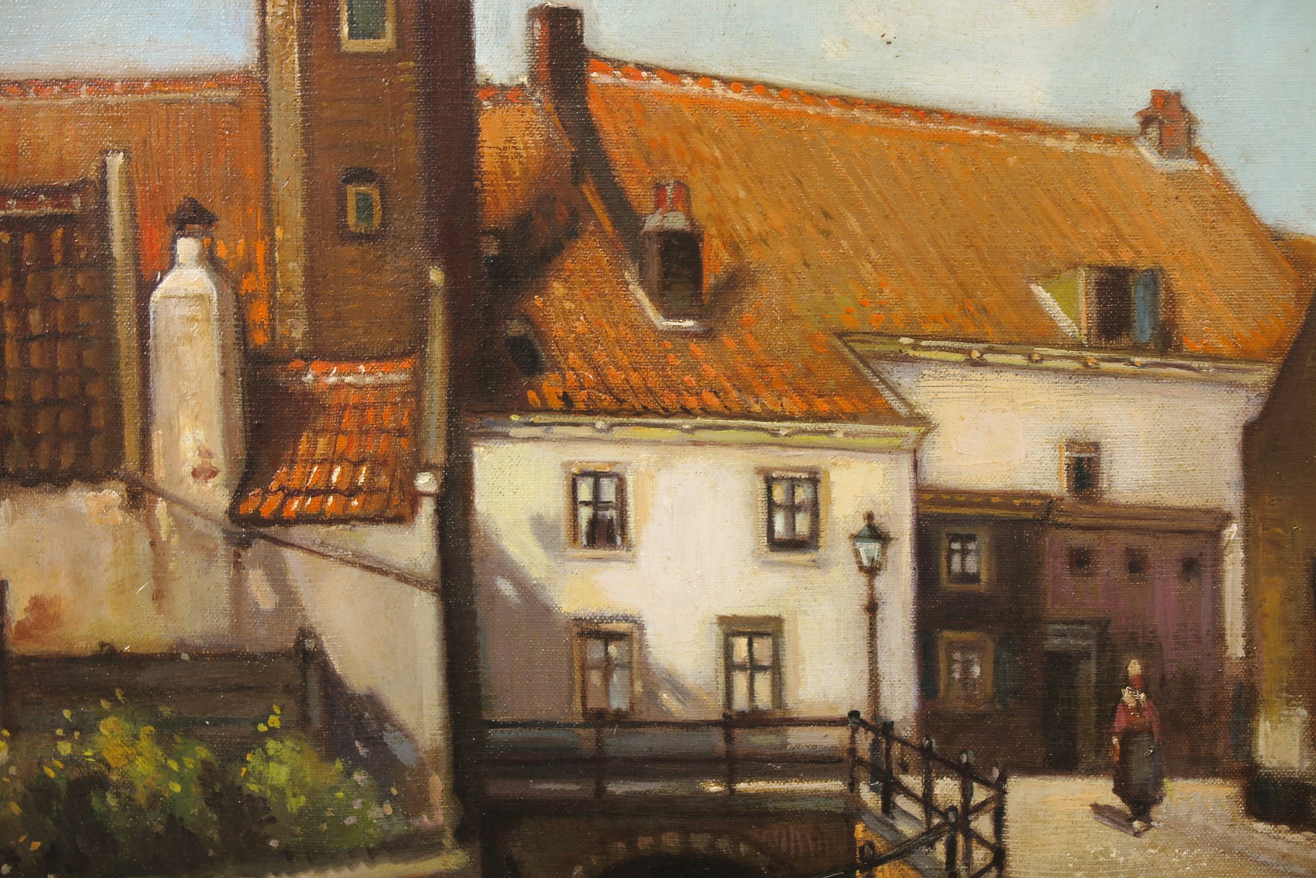 Gezicht op Muurhuizen in Amersfoort, gesigneerd door een voor ons onbekende schilder.