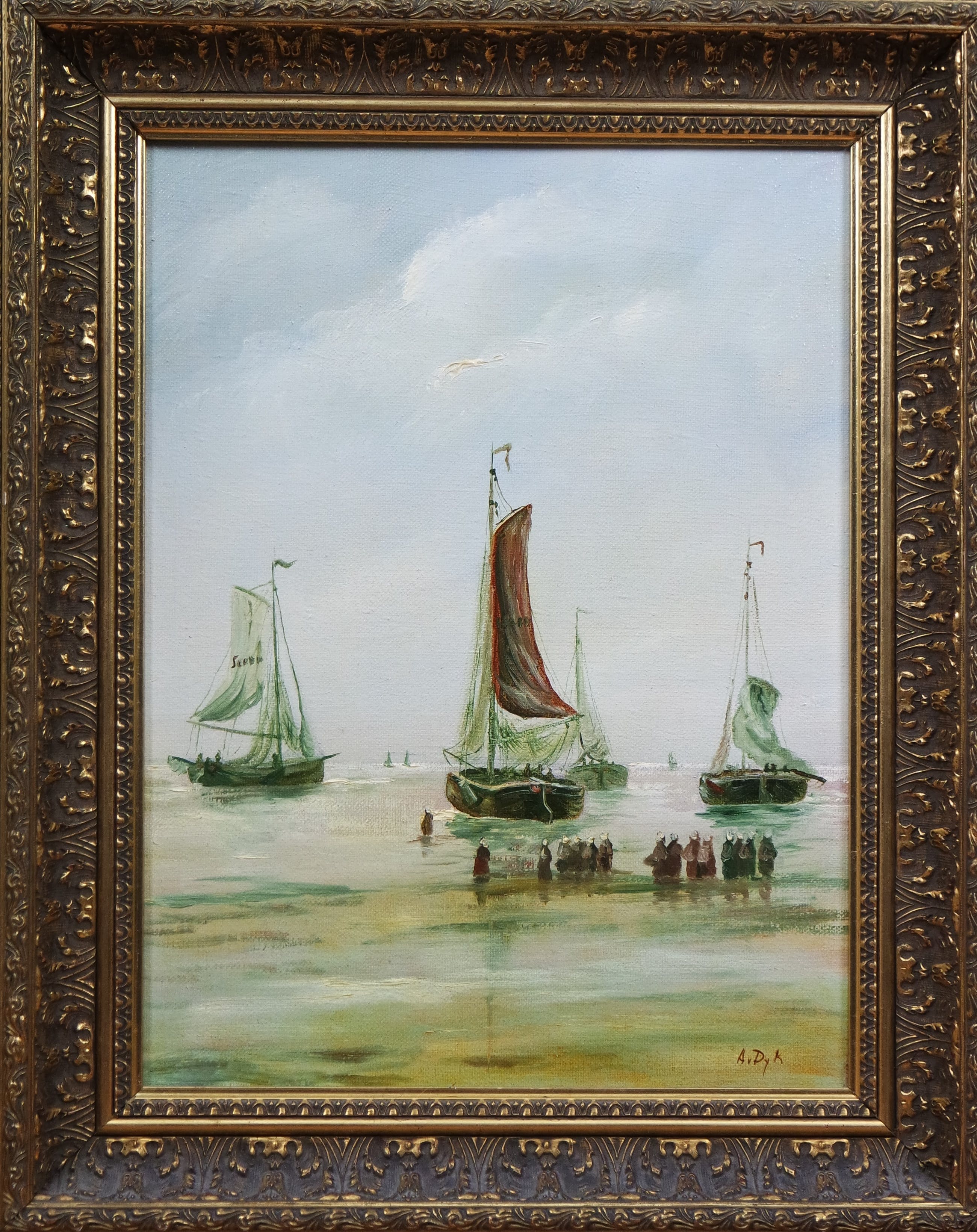 Een mooi zeegezicht ( olieverf op doek) van een Hollandse School kunstenaar (20e eeuw). Met een mooie goudkleurige lijst. Het kunstwerk is in een goede conditie. Het werk kan opgehaald of verzonden worden.