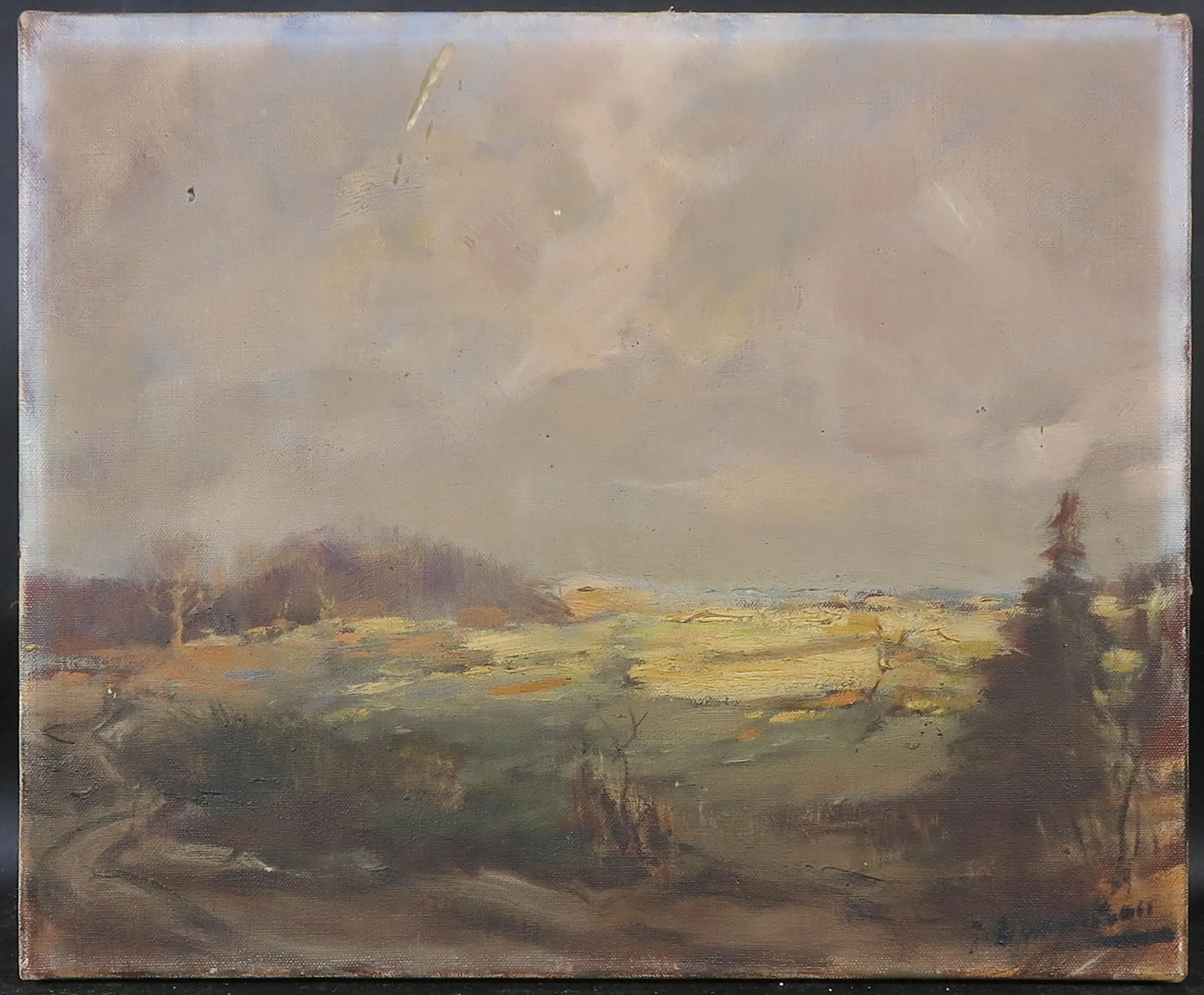 | De afbeelding is in goede staat. Het doek bevat echter enkele vlekken en zichtbare slijtagesporen. Tevens is het oppervlak zeer vuil. Zie de detailfoto's voor een indruk van de huidige staat van het werk. | |||||||||||