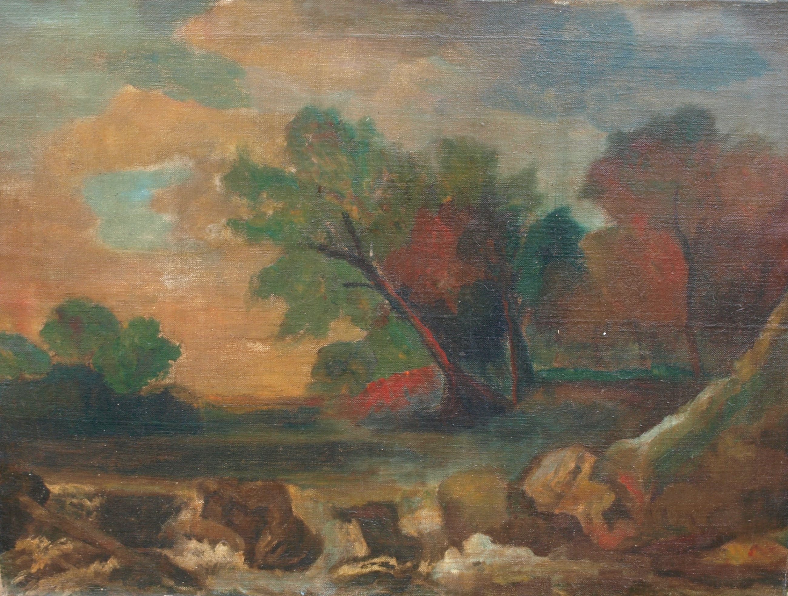 Onbekend - Olieverf op doek , Bergense School? , “Landschap“ - Verkocht