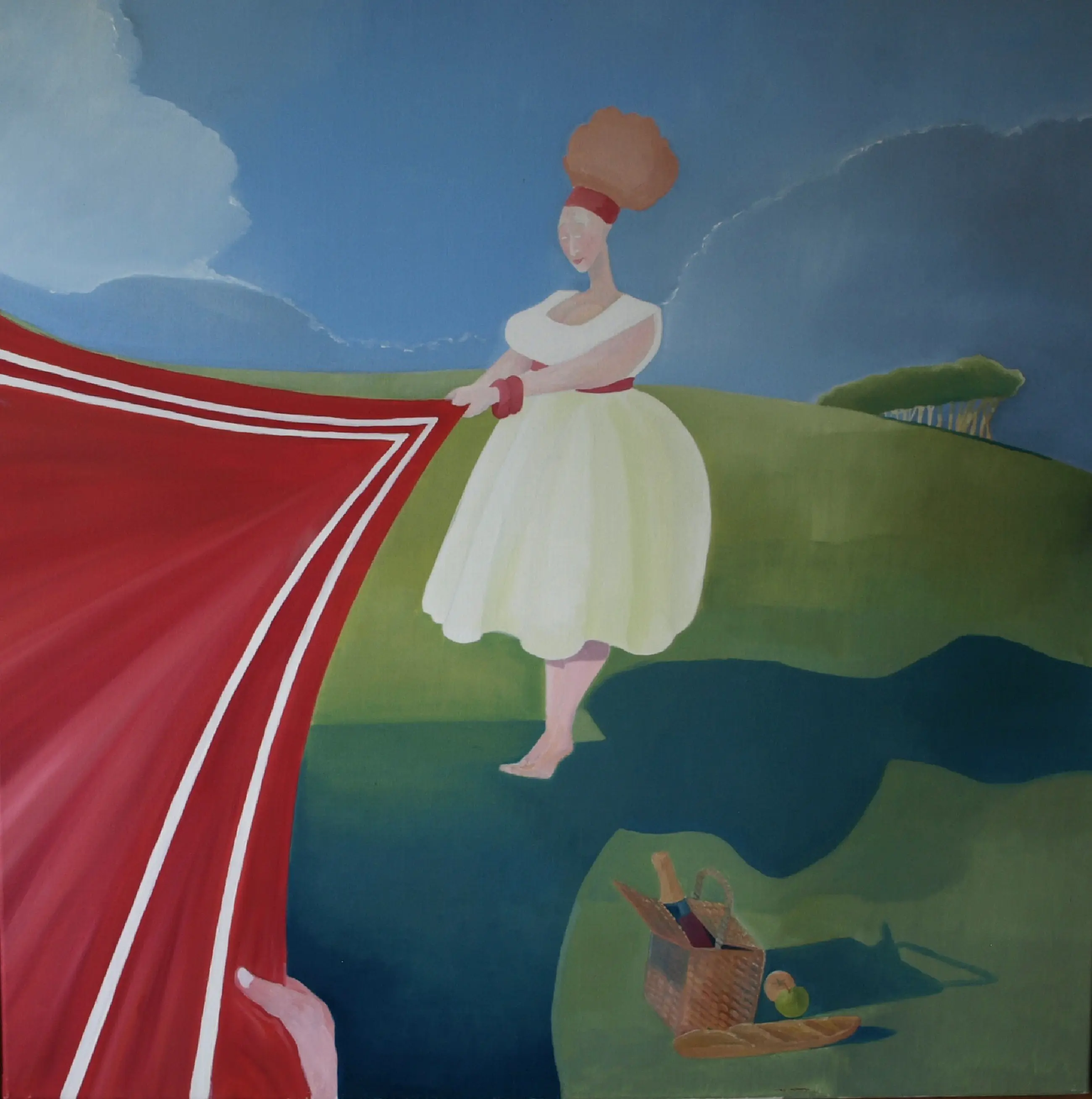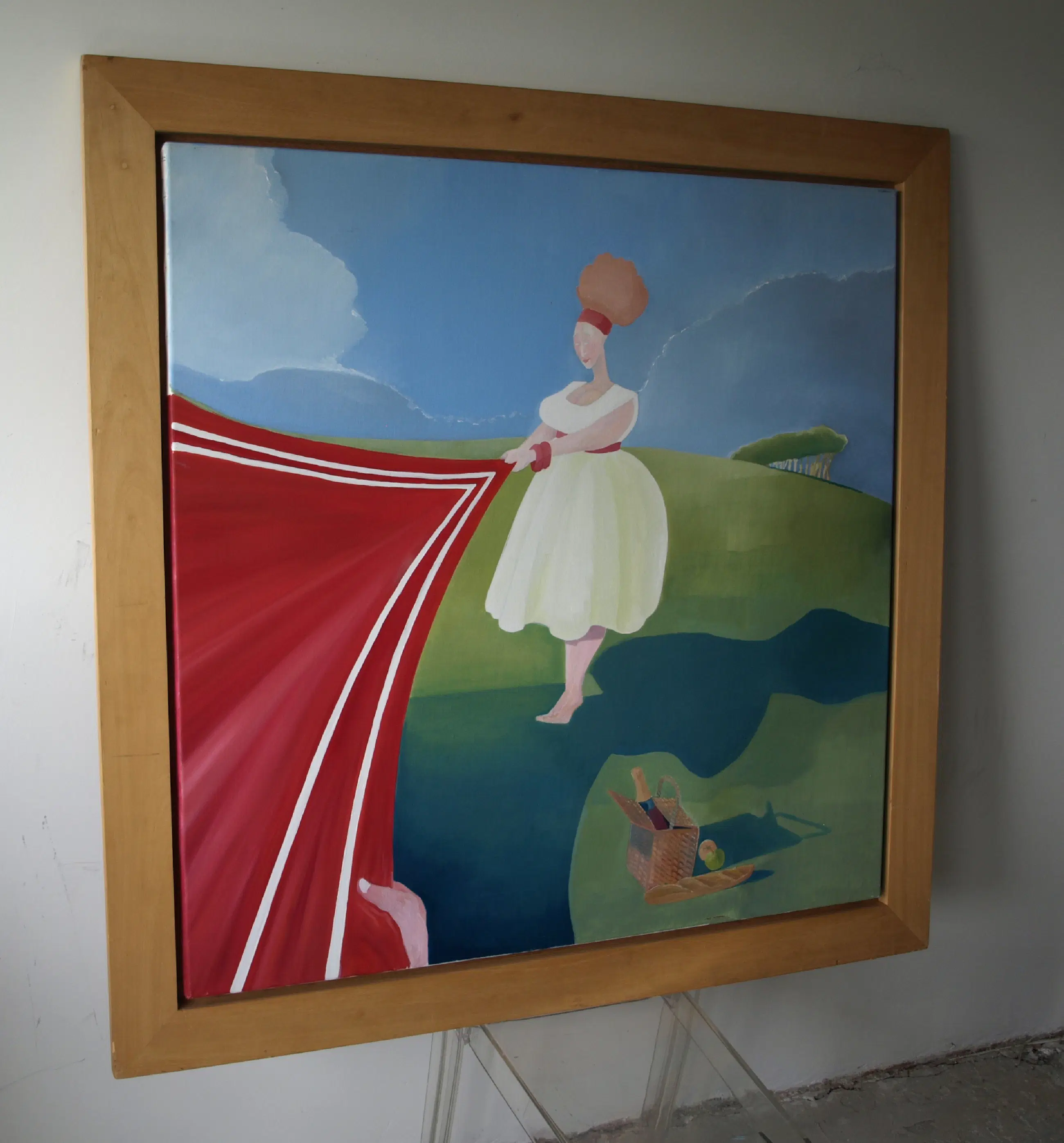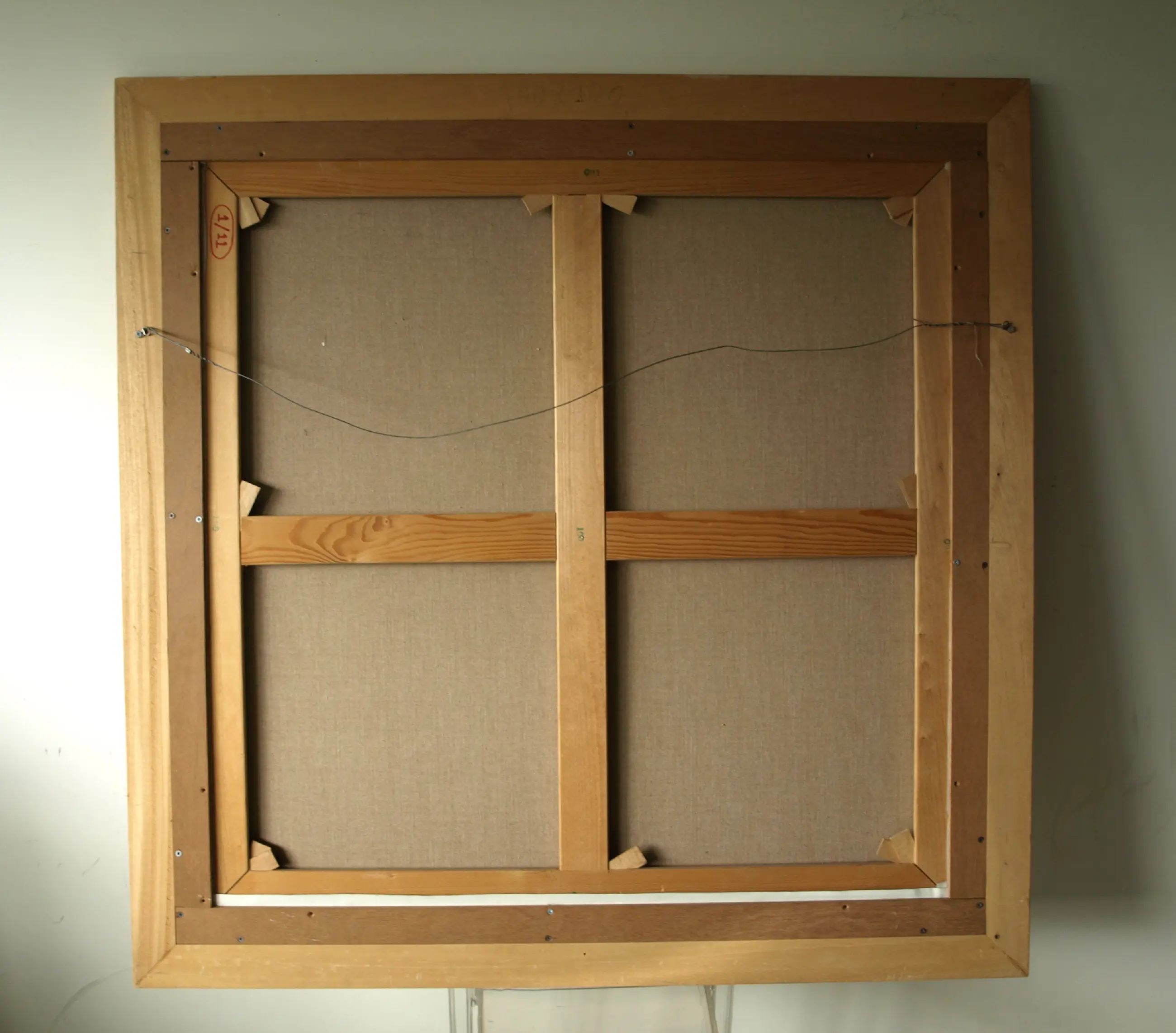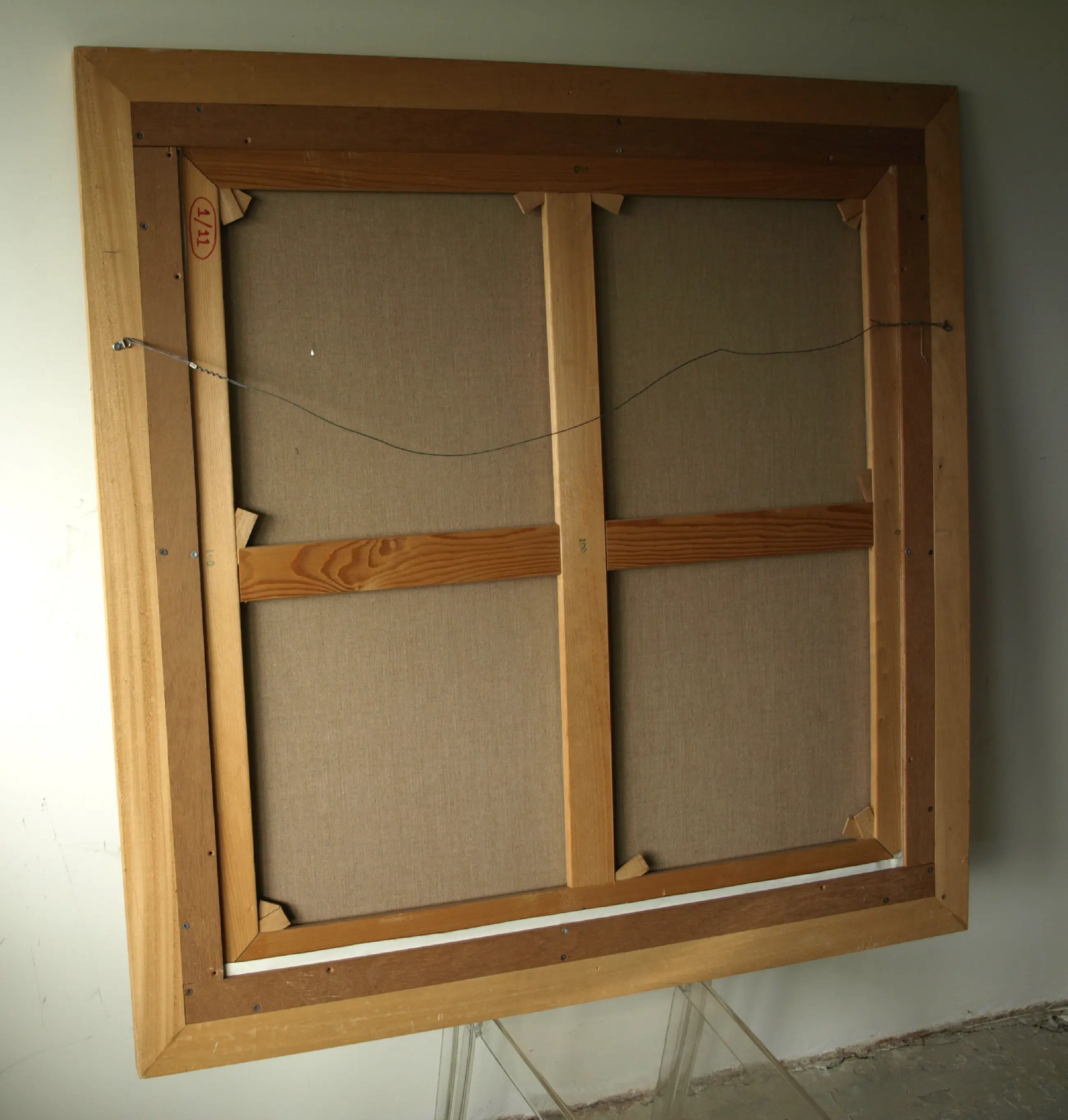 Een groot schilderij van een ons onbekende kunstenaar. -Techniek: Olieverf op doek, opgespannen op een houten spieraam. -Goed ingelijst in een houten lijst. -Afmetingen: Lijst, 118 x 118 x 3 cm. Spieraam, 100 x 100 cm. -Herkomst: Uit de privé-collectie van Jan Willem Tuytel (1947-2001), een Nederlandse kunstverzamelaar die in Italië in een kasteel woonde en overleed in mei 2001. Deze grote, moderne kunstcollectie met ca. 250 werken, werd in 2010 door de nieuwe eigenaar van het kasteel per toeval ontdekt in een verborgen kelder van het kasteel. De kelder had een geheime toegang. De kunstcollectie kwam in 2012 terug naar Nederland. -Conditie: In goede staat met een paar lichte slijtplekjes. Zie ook de foto’s voor een eigen indruk. Kan zo aan de muur.