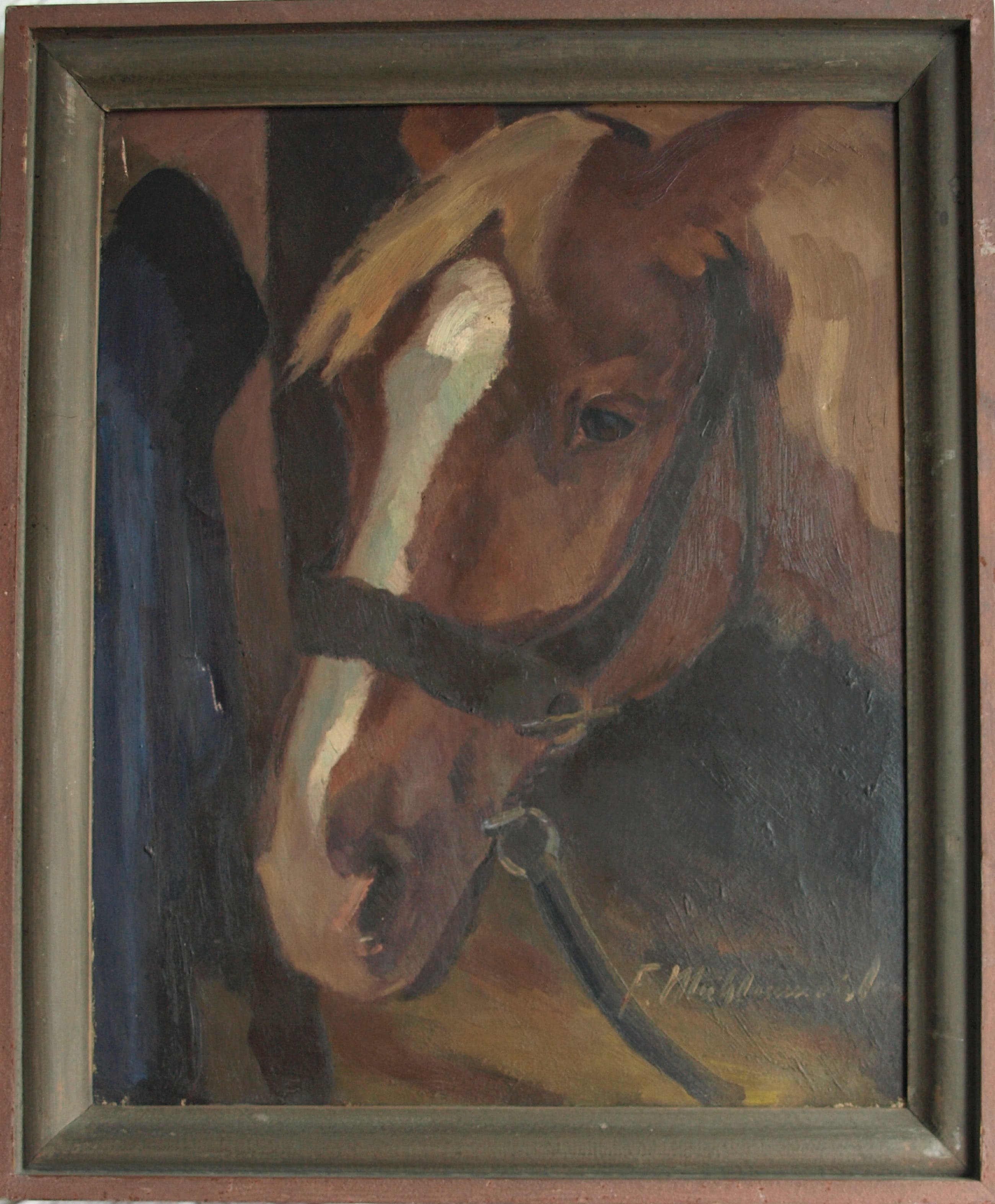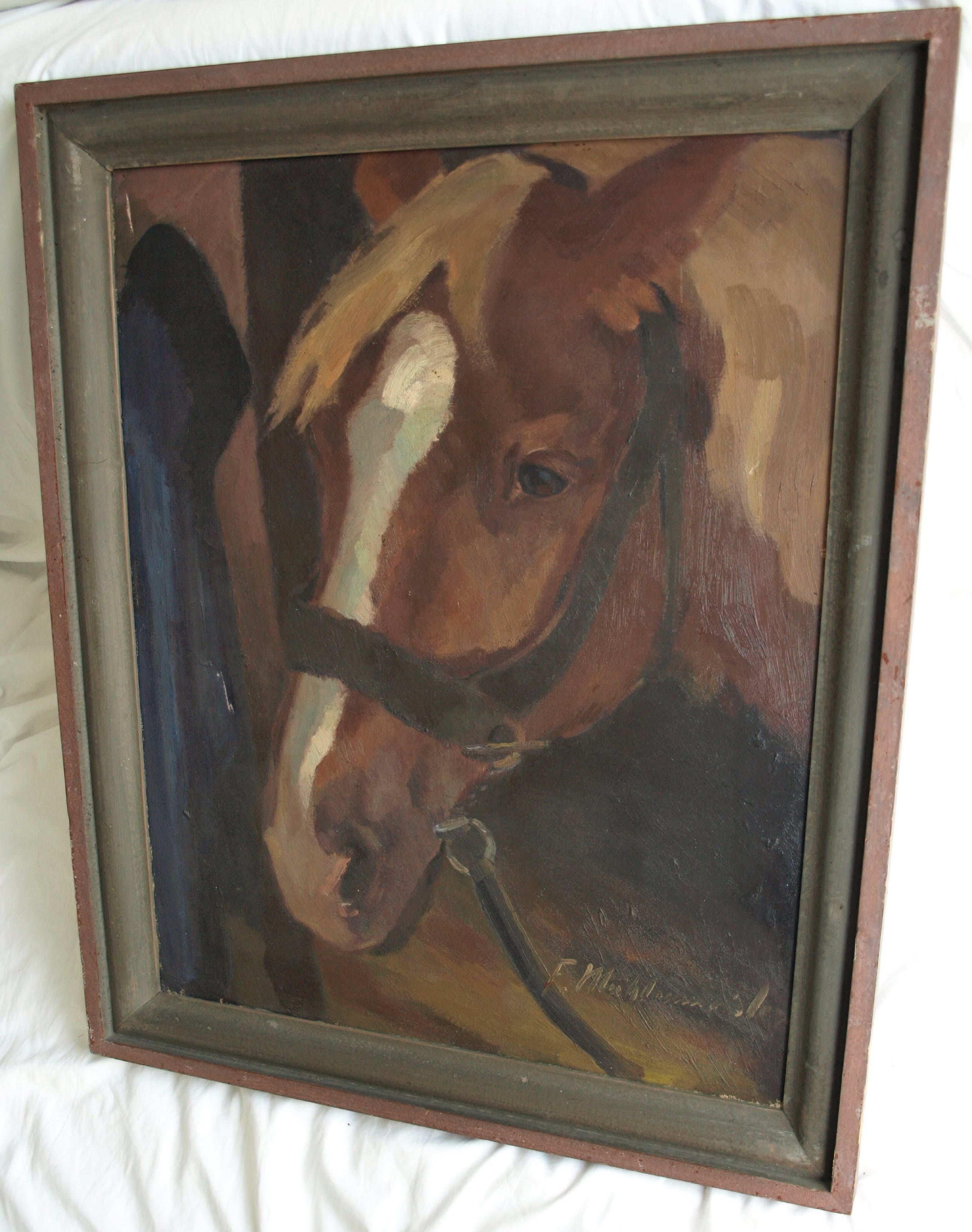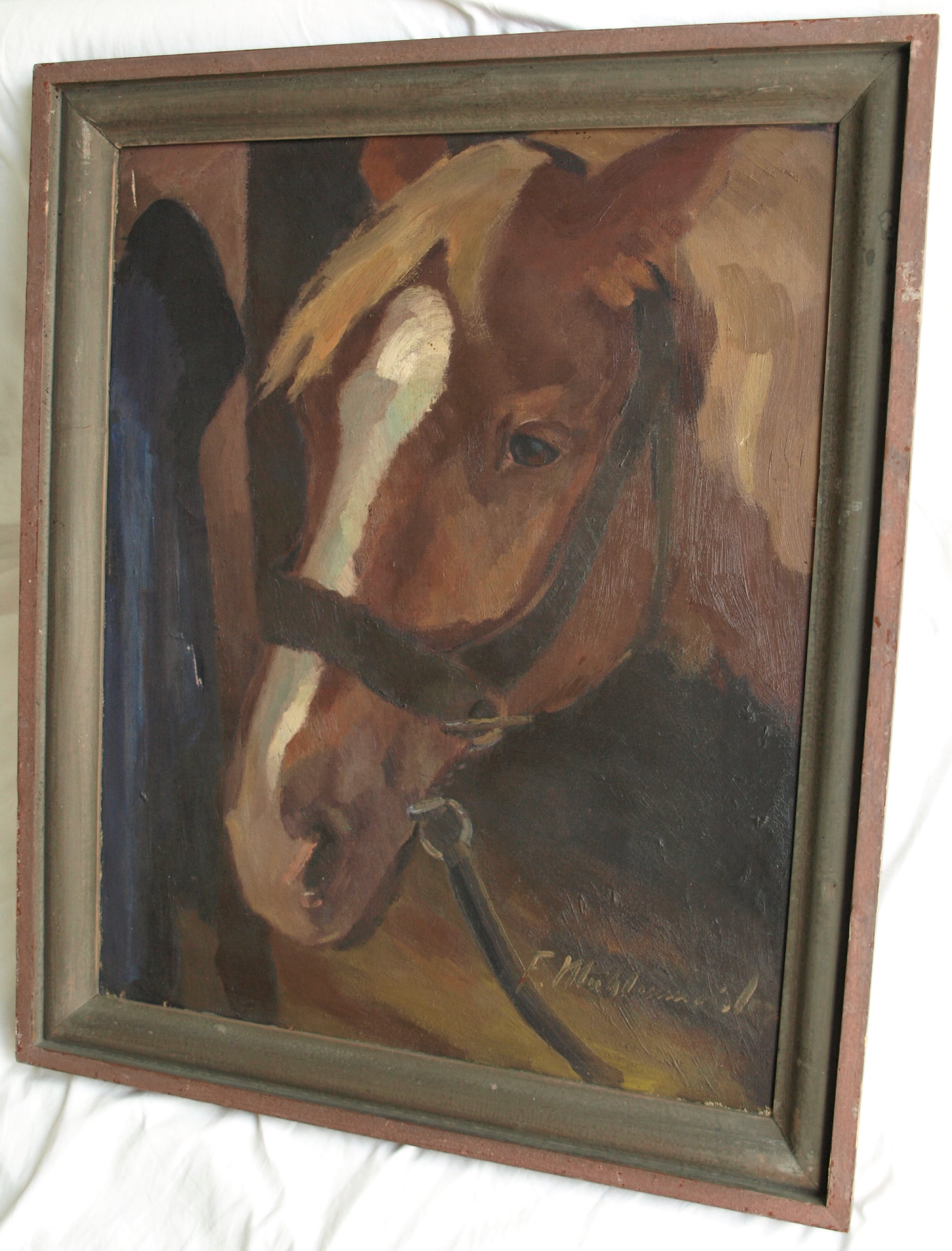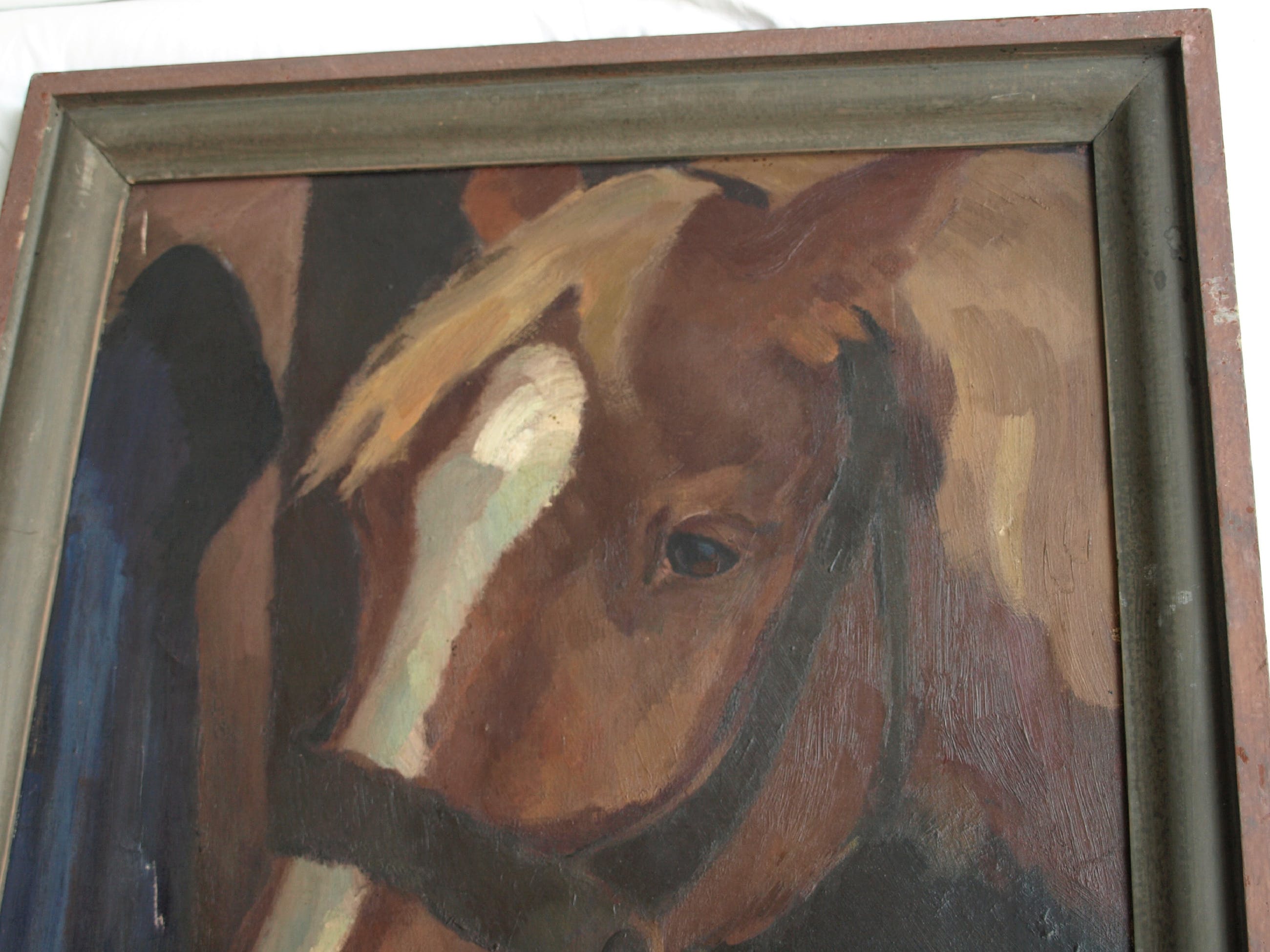 Onbekend - Olieverf op doek , “Portret Paard” – gesigneerd & ingelijst - Verkocht
