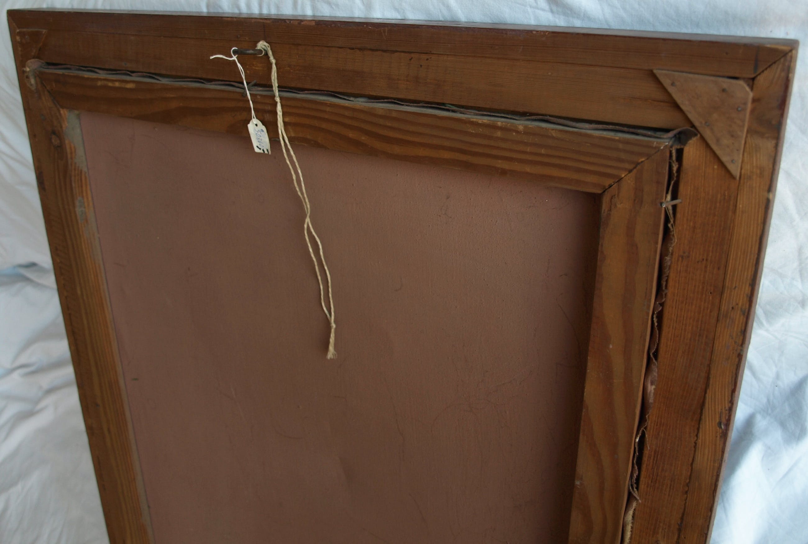 • Een groot gesigneerd oud ingelijst olieverfschilderij van een ons onbekende kunstenaar.