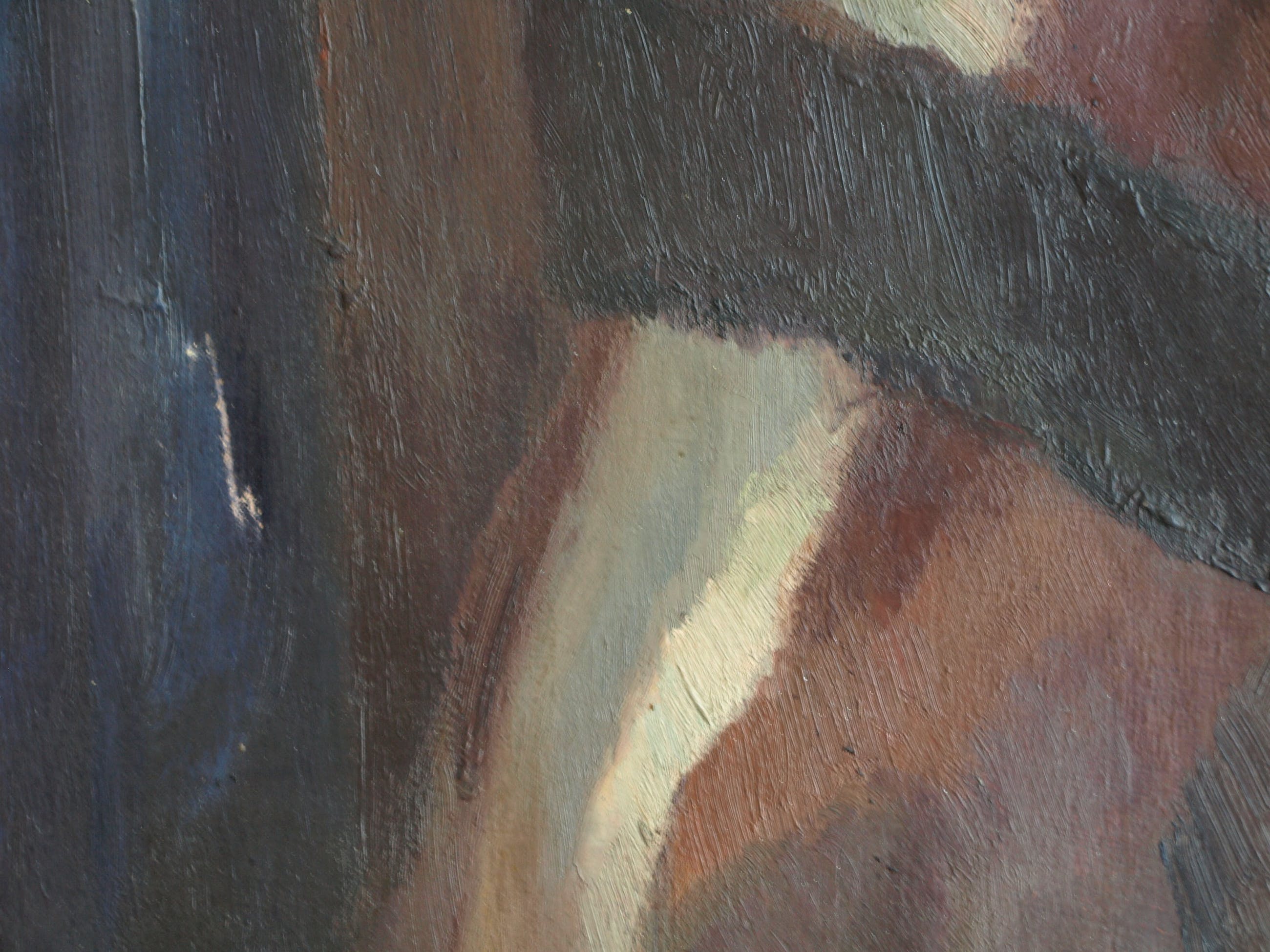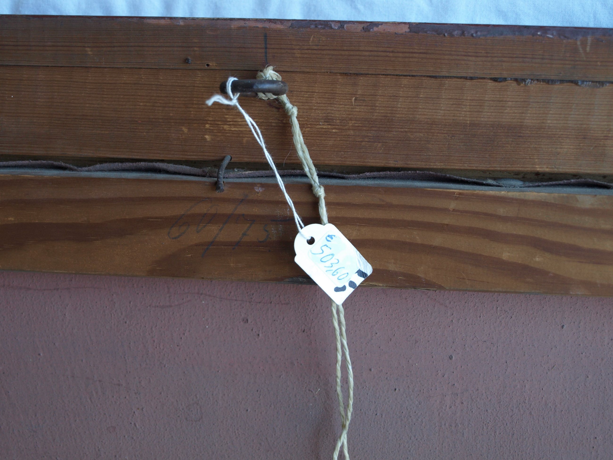 -Conditie: Het doek heeft 2 geplakte scheurtjes: linksboven en linksmidden.