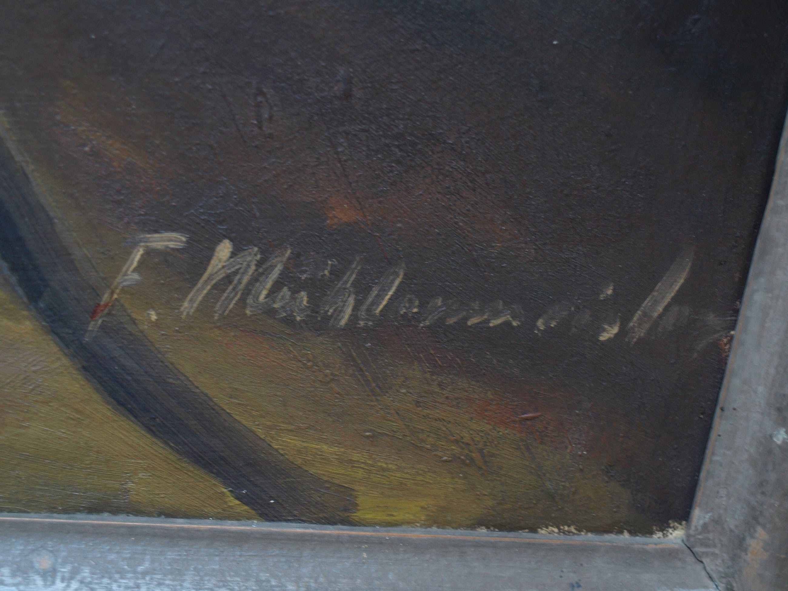 -Gesigneerd (moeilijk leesbaar) rechtsonder, ‘F. Mühlenmeister’?.