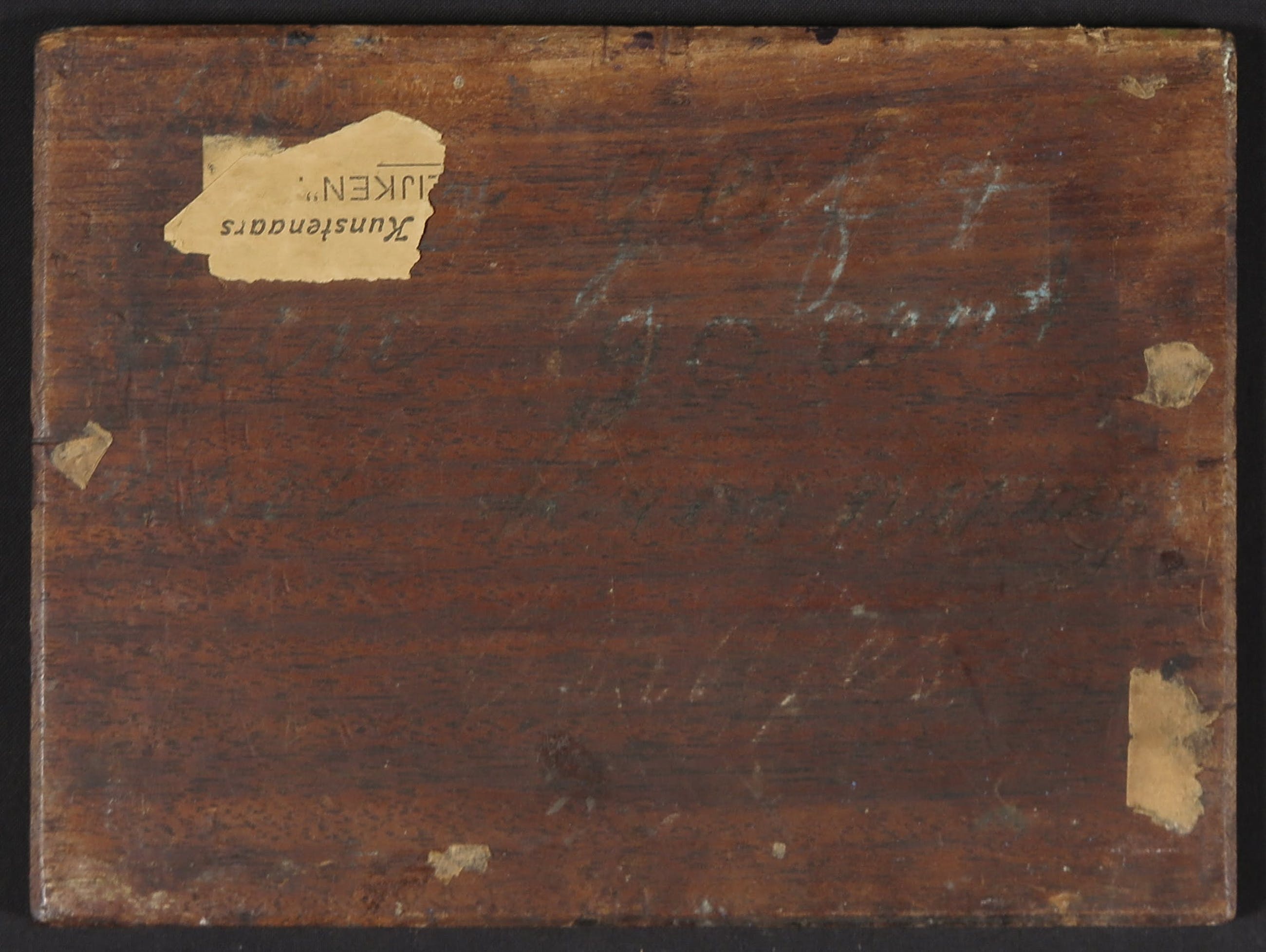 Het werk is mogelijk aan achterzijde gesigneerd, echter is dit moeilijk leesbaar.