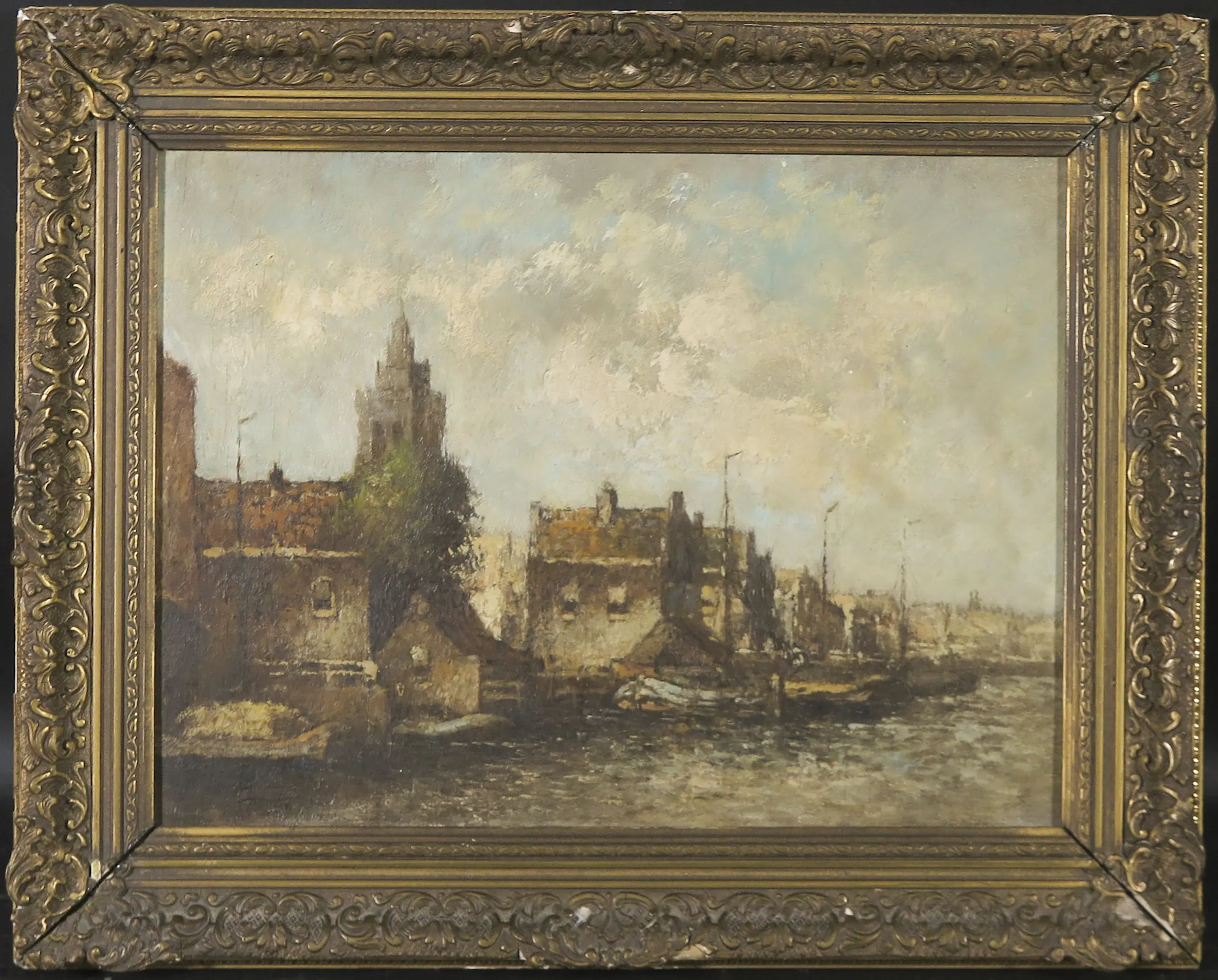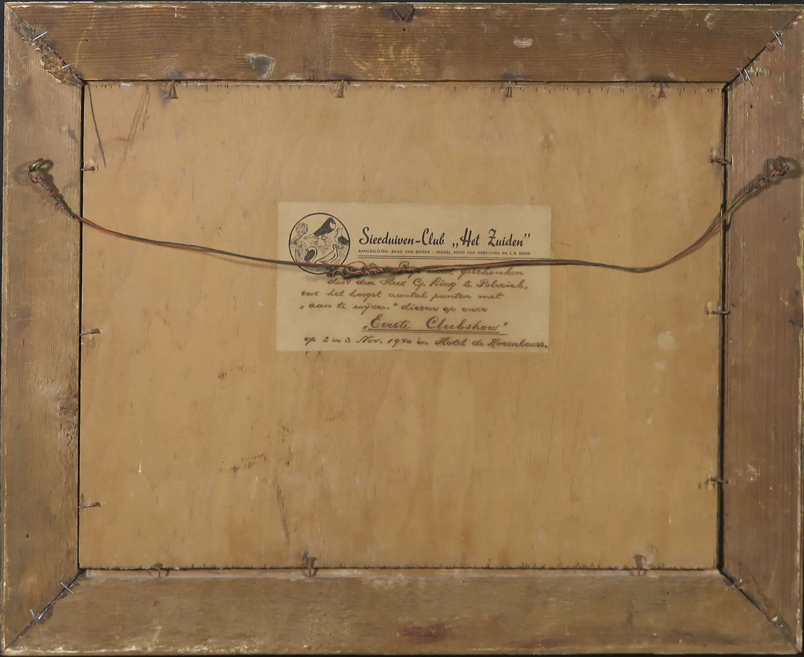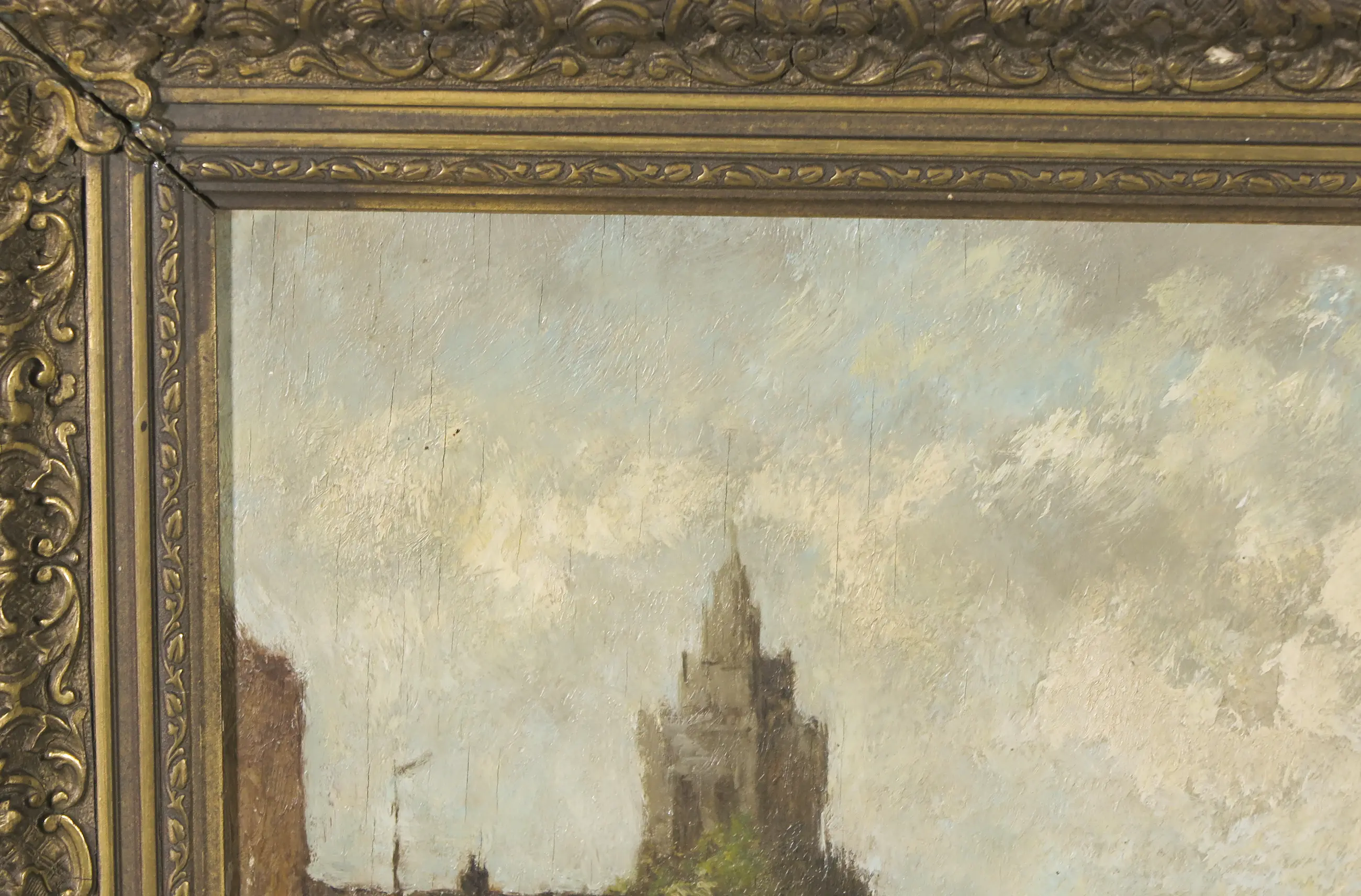| Over het gehele oppervlak wat verticale barstjes in de verflaag. Lijst heeft wat beschadigingen. | |||||||||