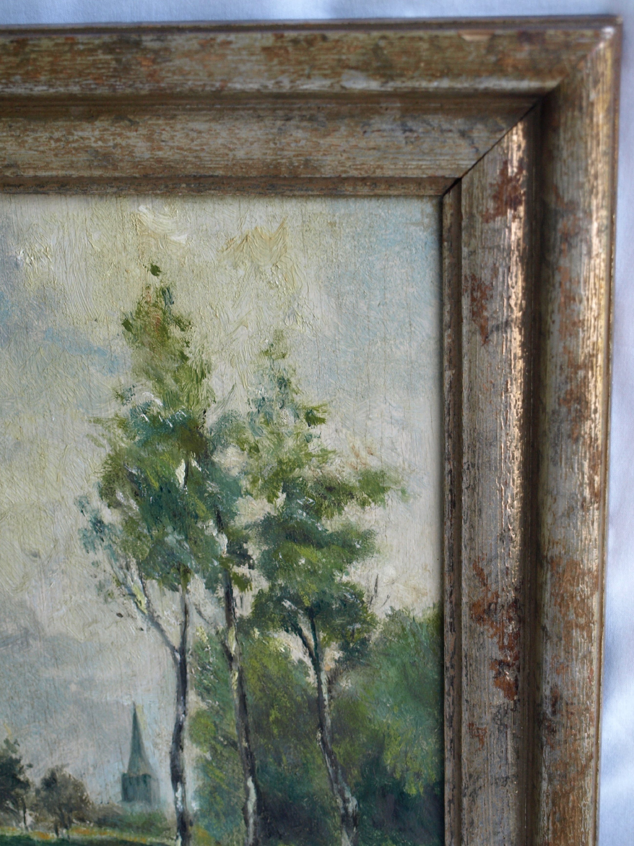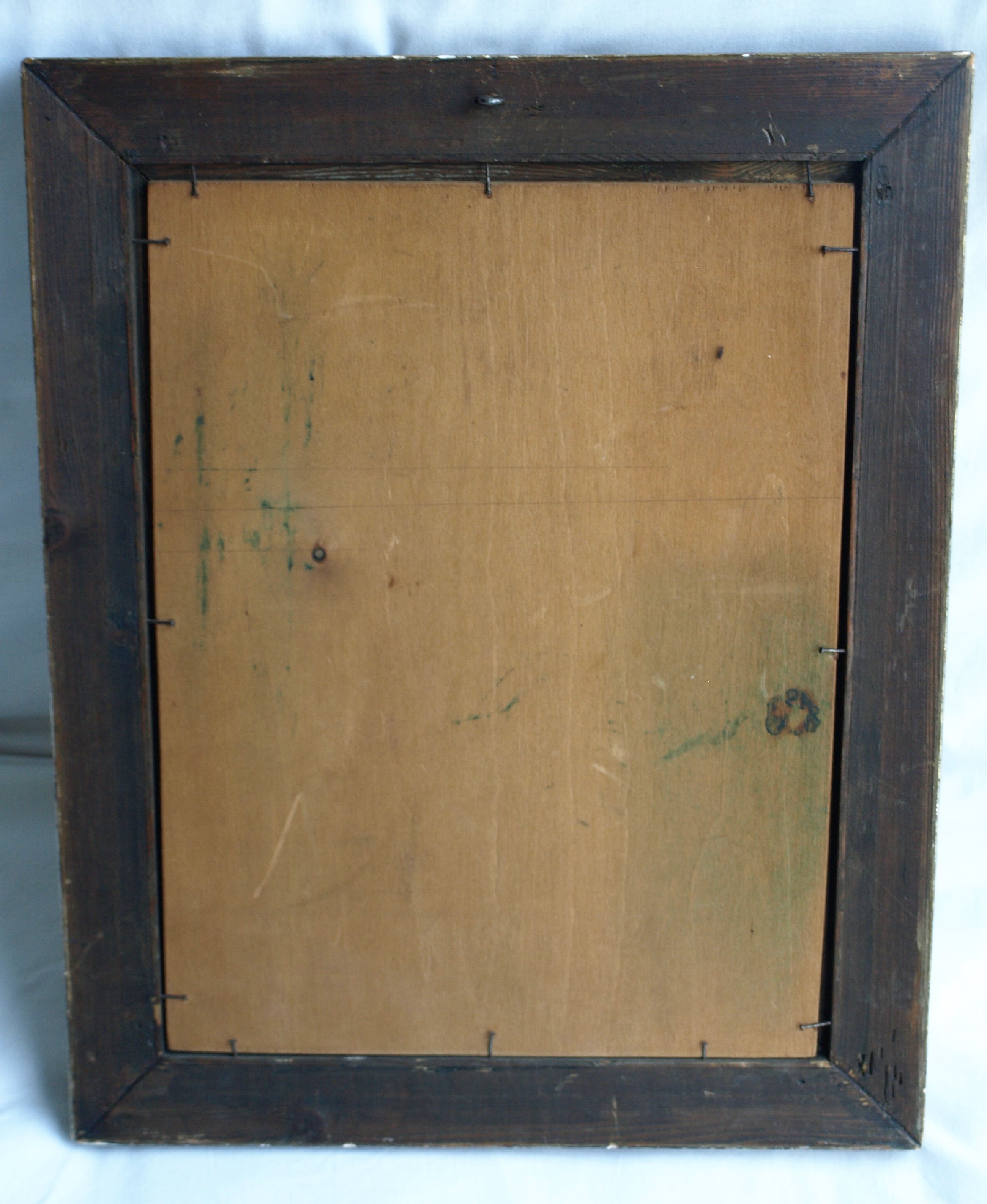 -Conditie: Het werk is in goede staat met slijtplekjes. De lijst heeft slijtplekken en heeft beschadigingen aan de randen (stukjes hout eraf).