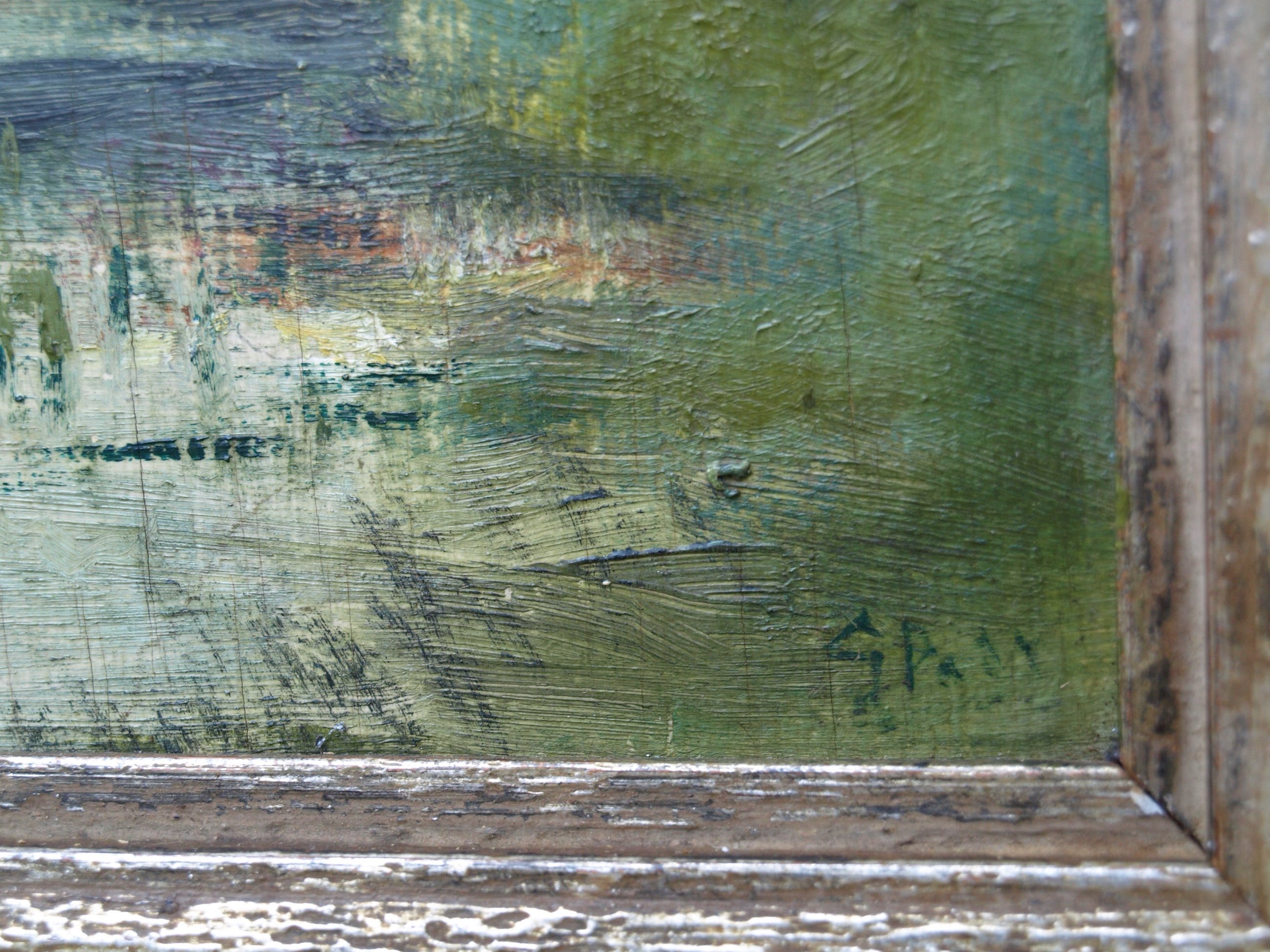 • Een schilderij van een ons onbekende kunstenaar. Gesigneerd rechtsonder, maar moeilijk leesbaar….