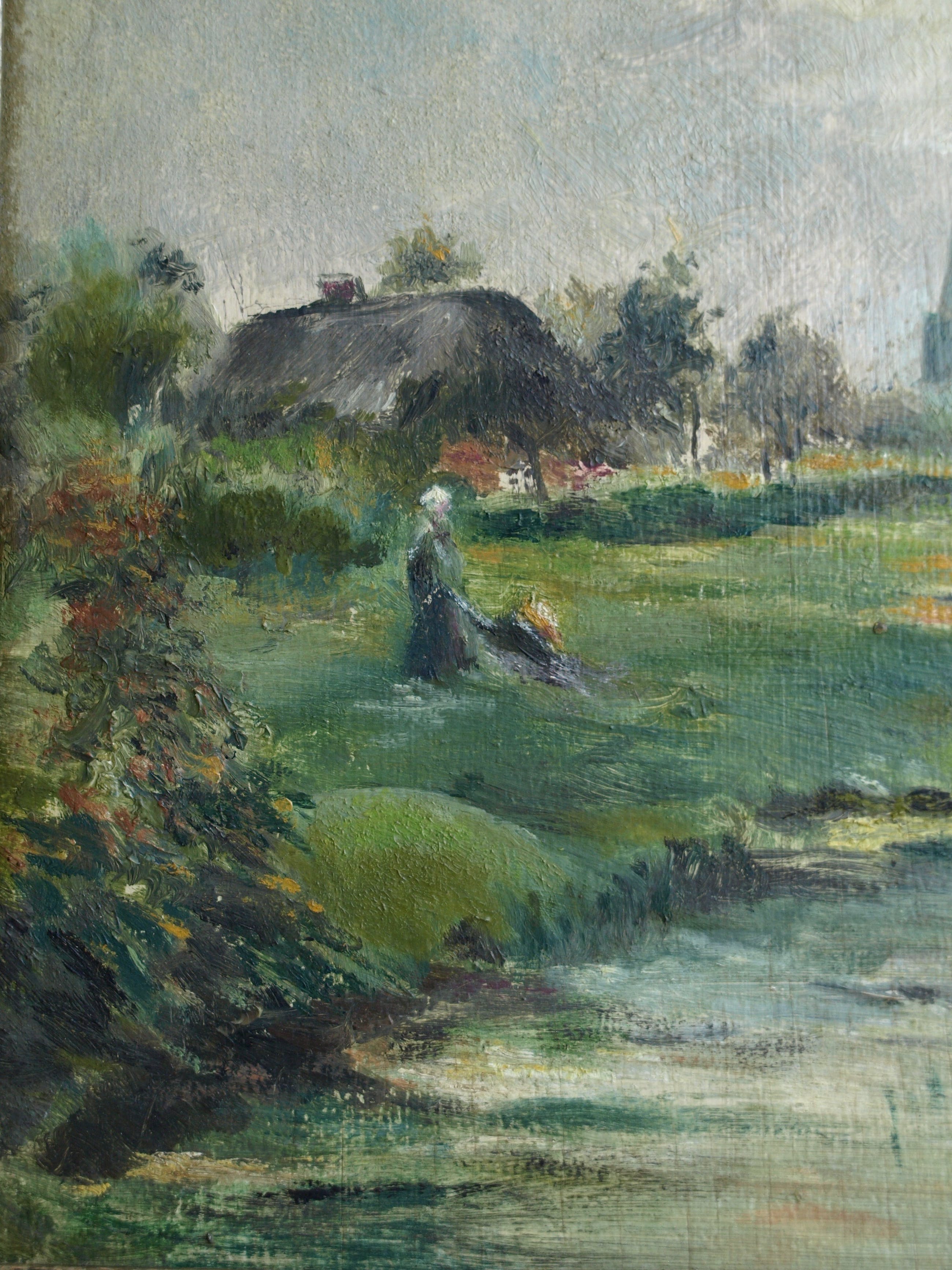 Niet of onleesbaar gesigneerd - Olieverf op paneel , Landschap met vrouw – ingelijst - oud kopen? Bied vanaf 1!