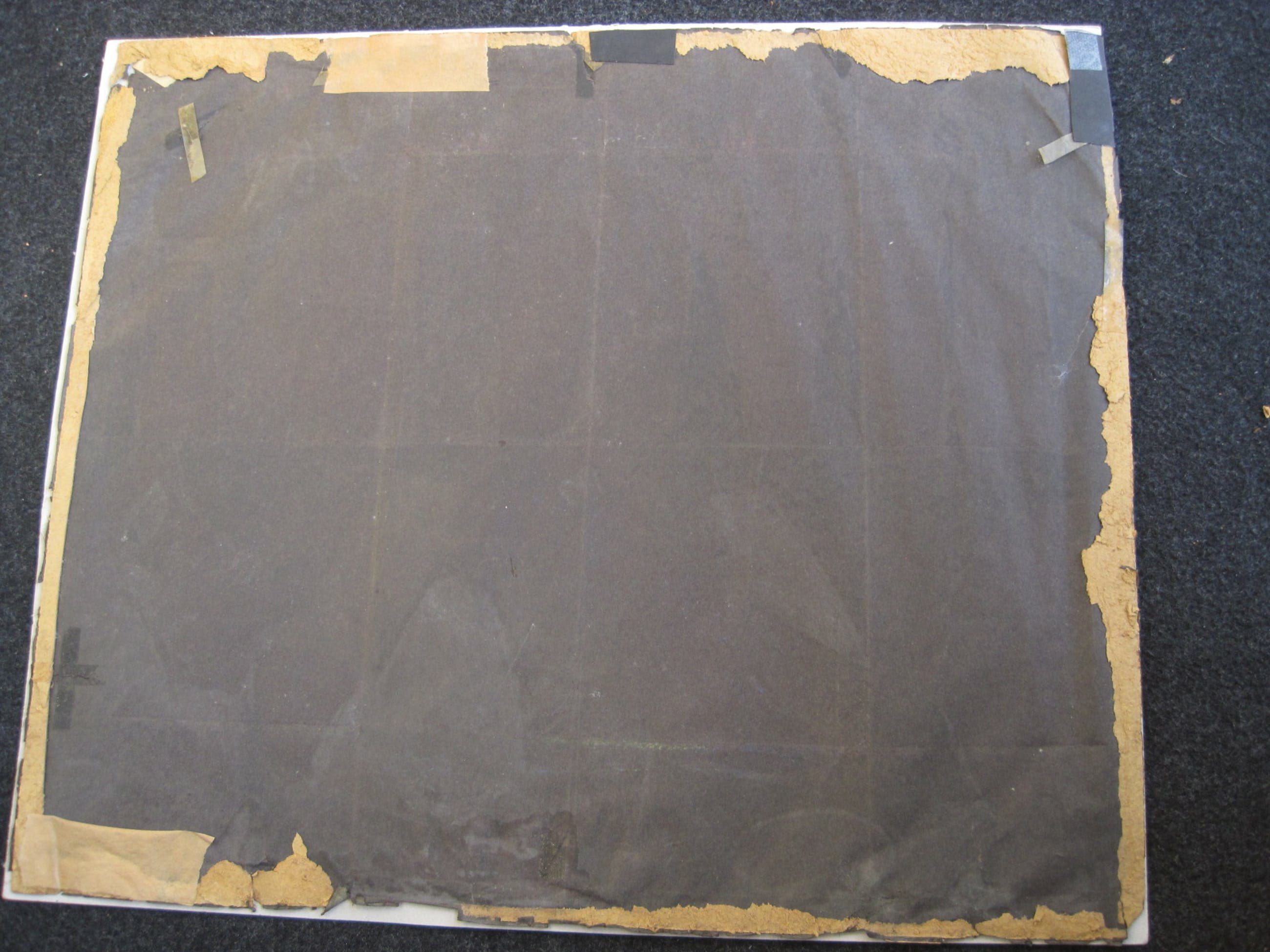 de nodige randschade en moet opnieuw op zuurvrije ondergrond worden bevestigd. Kan op verzoek door onze lijstenmaker tegen kostprijs worden verzorgd.