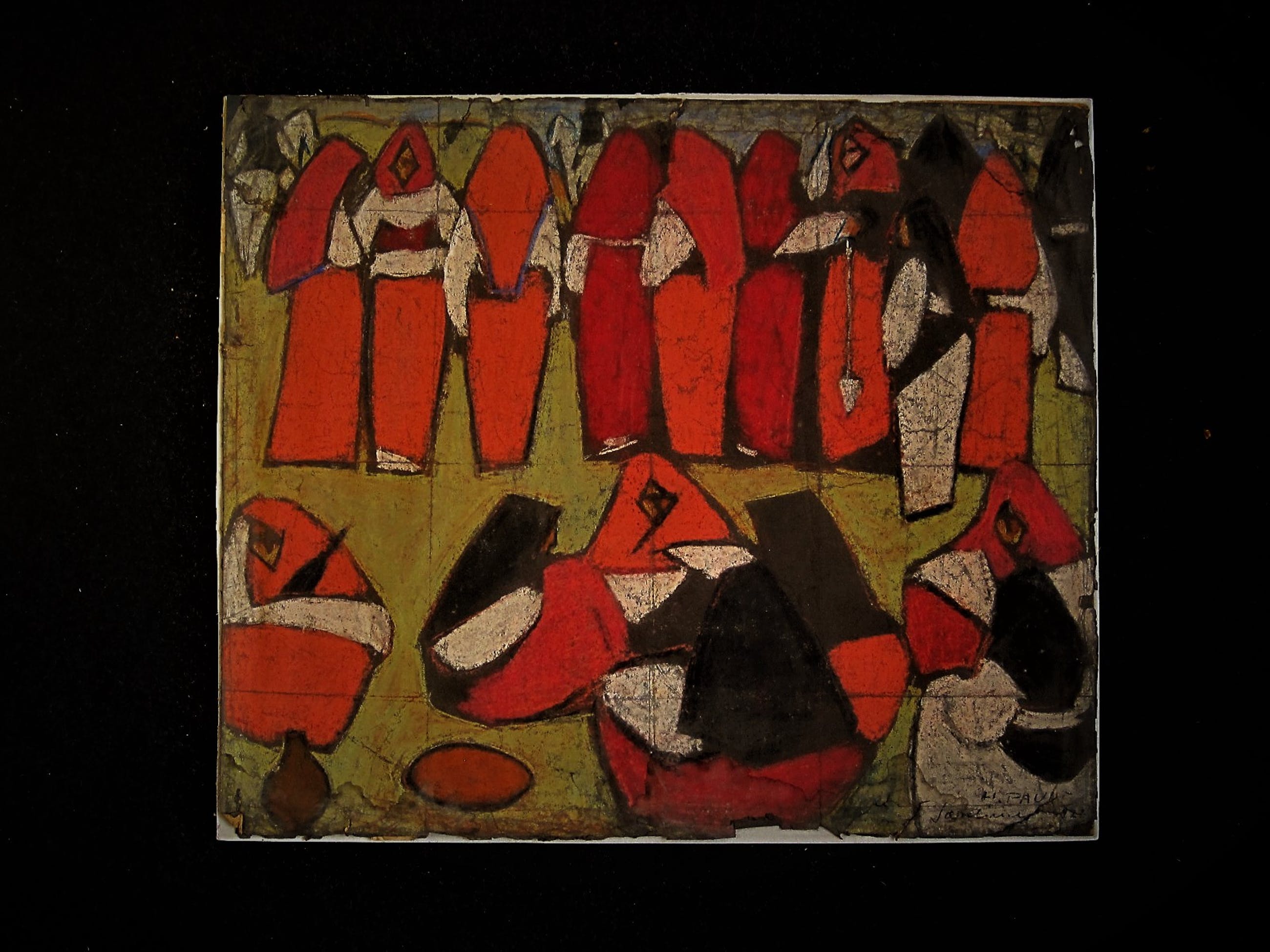 Rechtsonder gesigneerd H. Paul ... De grote Gouache vertoont de nodige randschade aan het papier, die evenwel wegvalt nadat het in passe partout wordt geplaatst.