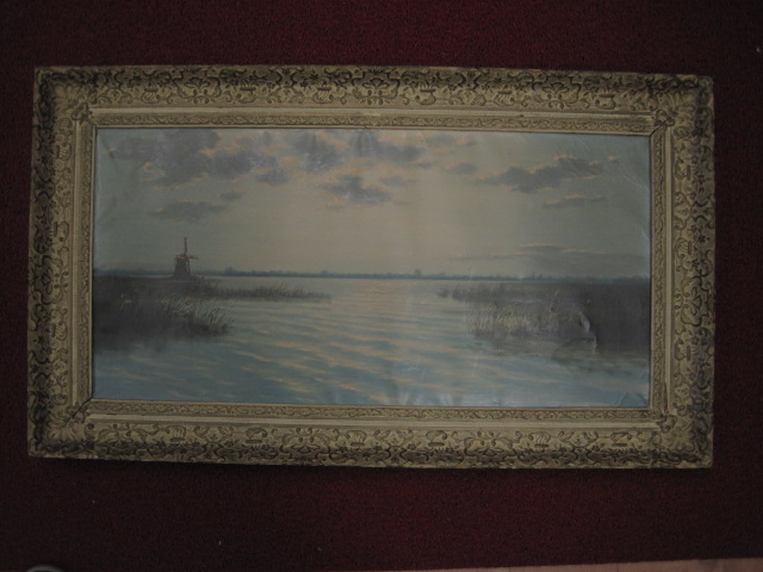 Titel/Voorstelling: "Hollands rivierlandschap bij schemering"
