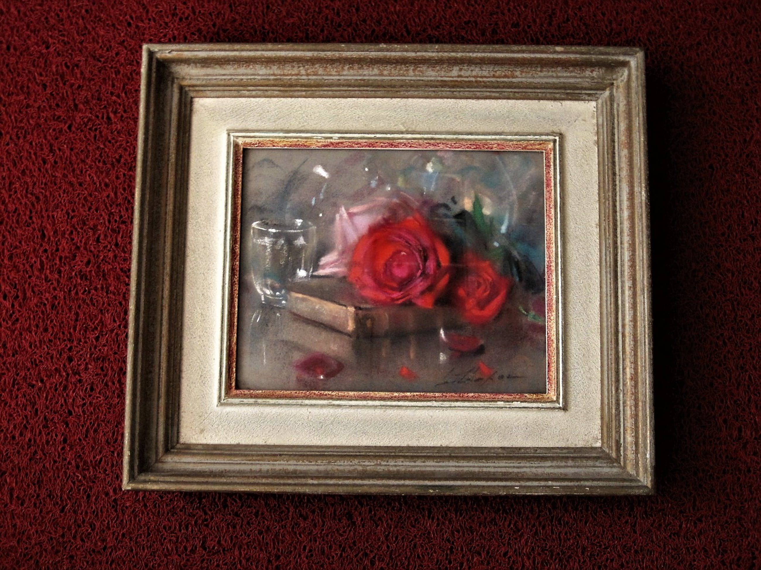 Onbekend - omstreeks 1930 - gesigneerd Pastel - Stilleven "Rozen op boek" - Verkocht