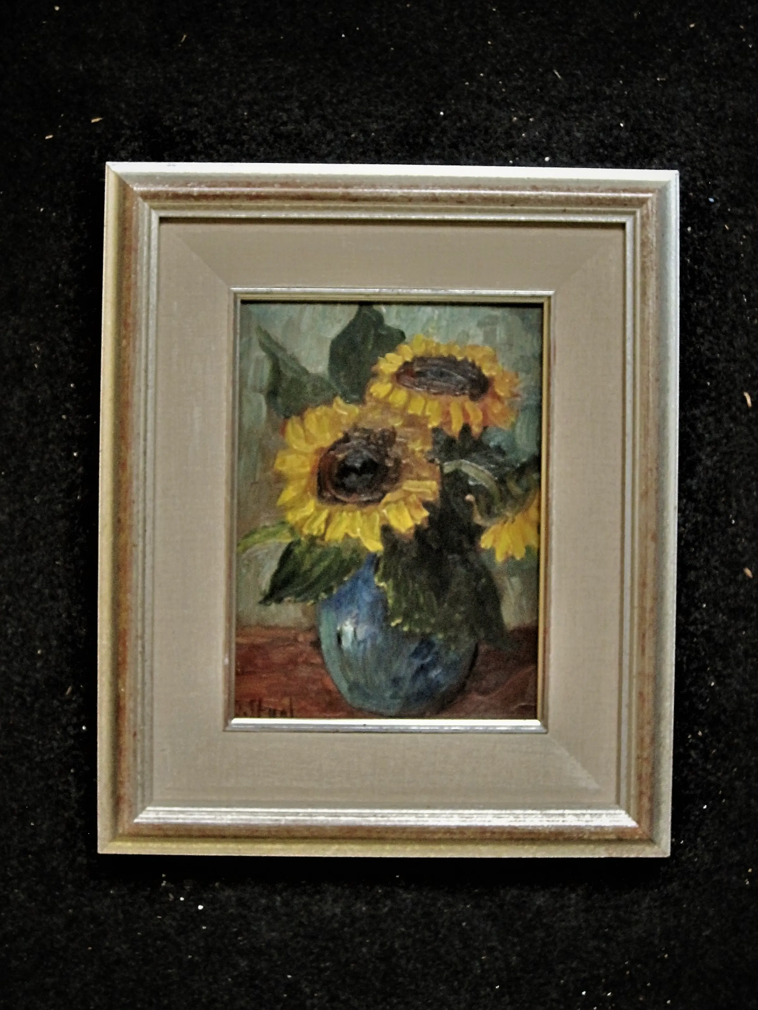 Onbekend - omstreeks 1930 - impress. olieverf op hout - Zonnebloemen - gesigneerd - Verkocht