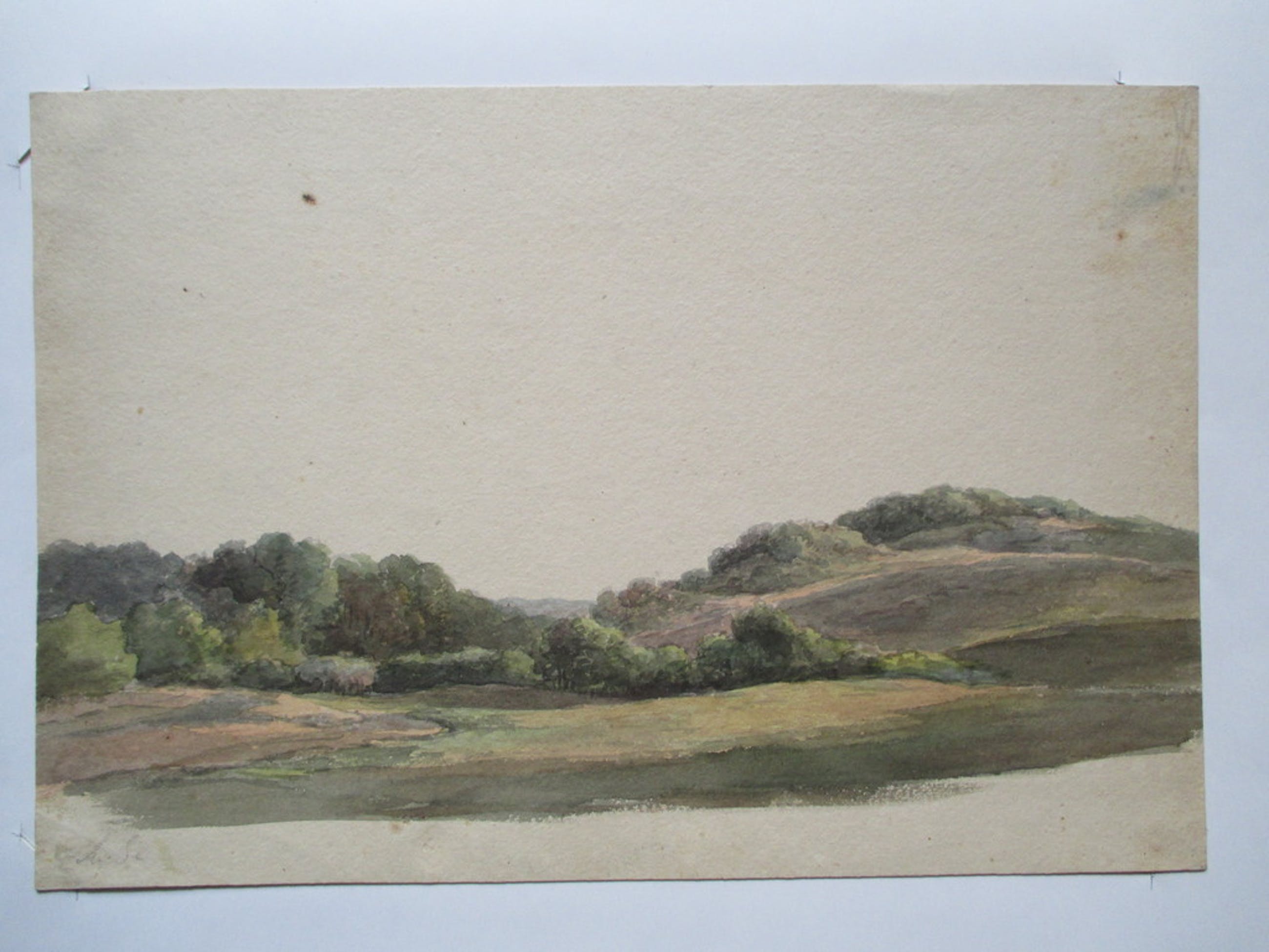 Aquarel, l.o gesigneerd met monogram, A. Sc? Afm. blad 32,5x22 cm. Het blad is los in een eenvoudig papieren passepartout geplaatst (50x32,5).